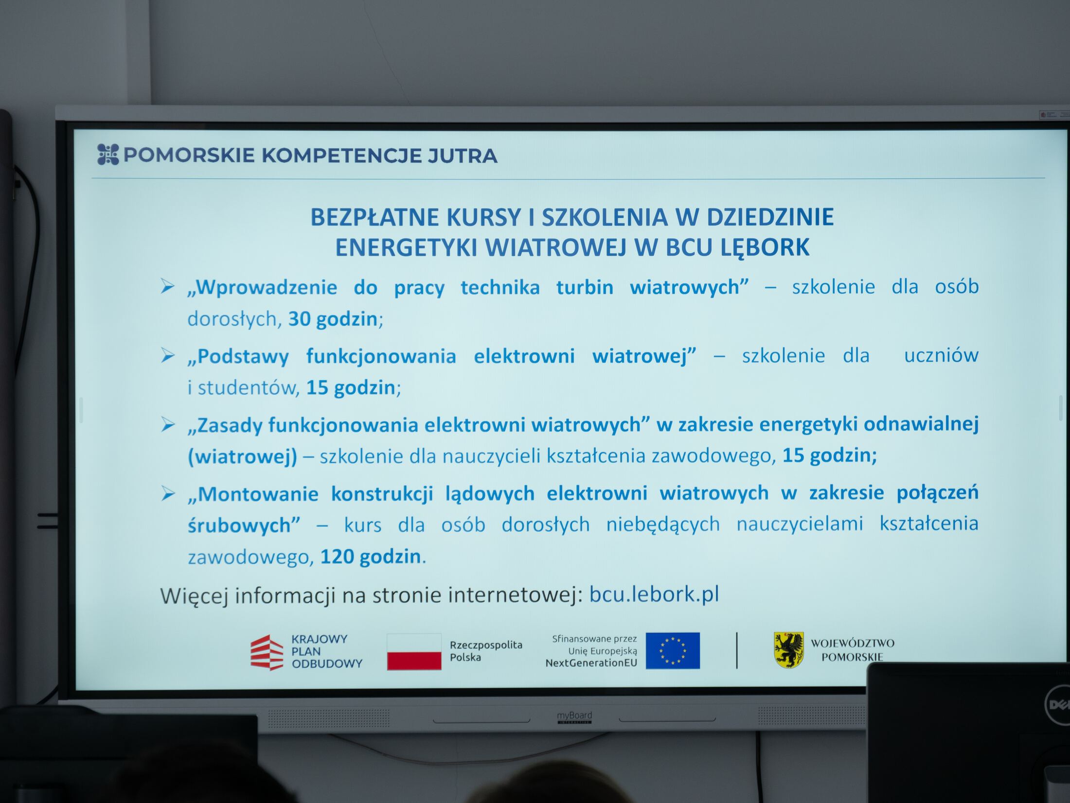 - „Wprowadzenie do pracy technika turbin wiatrowych” (30-godzinne szkolenie dla dorosłych);