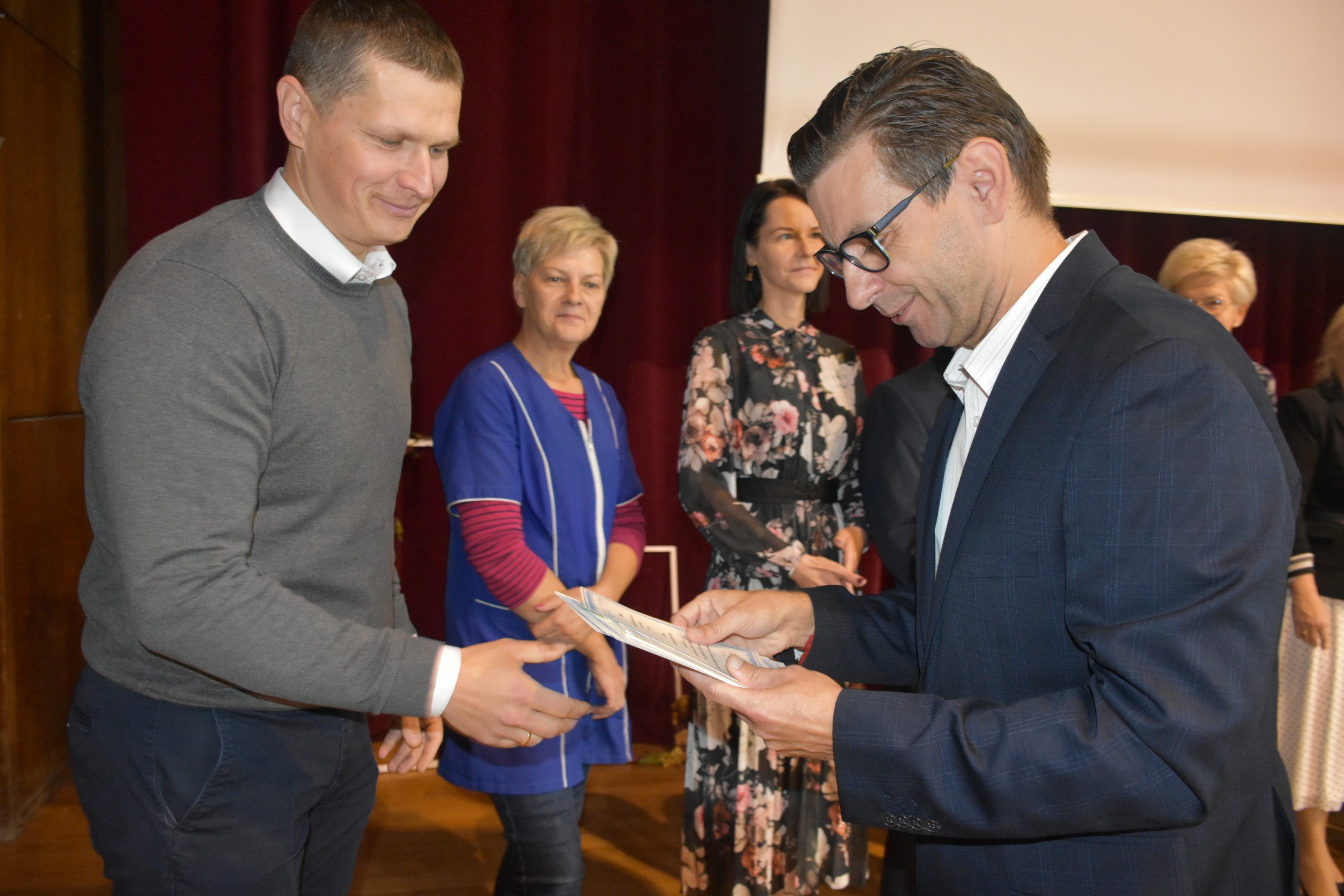 Za nami kolejne spotkanie z okazji Dnia Edukacji Narodowej. Tym razem odbyło się w II Liceum Ogólnokształcącym w Lęborku. Podczas uroczystego apelu, Wicestarosta Lęborski Edmund Głombiewski wręczył dyplomy uczniom, którzy za wybitne osiągnięcia w nauce uzyskali Stypendium Starosty Lęborskiego. Motywacja dla 17 nagrodzonych z pewnością jest o tyle duża, że przez najbliższy rok szkolny otrzymywać będą gratyfikację pieniężną. Podobnie jak w ZSMI, podczas akademii złożyli ślubowanie uczniowie klas pierwszych. Dyrektor za wyróżniające się efekty pracy, nagrodził 18 pracowników szkoły. W najbliższych dwóch dniach, wręczone zostaną kolejne stypendia, o których będziemy Państwa informować w następnych postach.