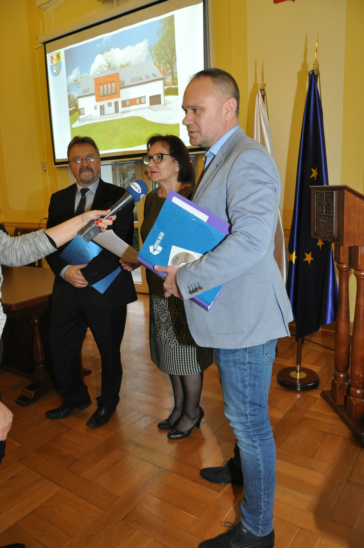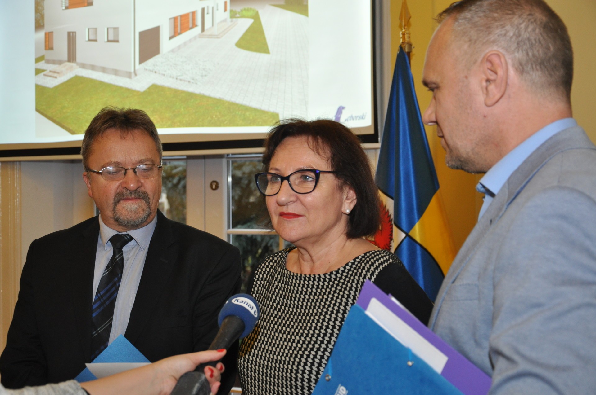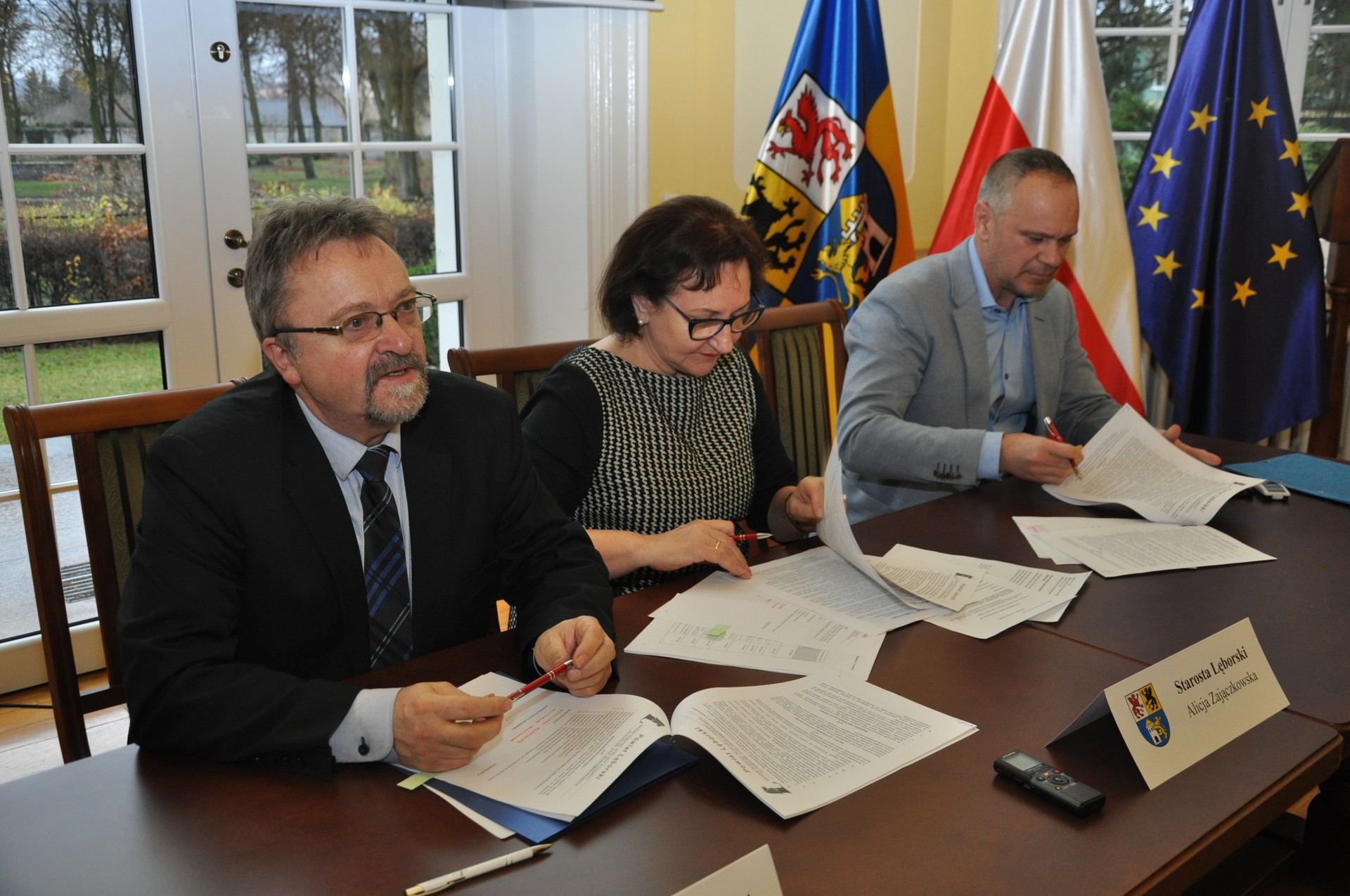 W sali obrad Rady Powiatu Lęborskiego odbyło się uroczyste podpisanie umowy na wykonanie inwestycji. Sygnowali je: Alicja Zajączkowska – Starosta Lęborski, Edmund Głombiewski – Wicestarosta Lęborski oraz Adam Hrycyk, właściciel firmy budowlanej HRYN-BUD.