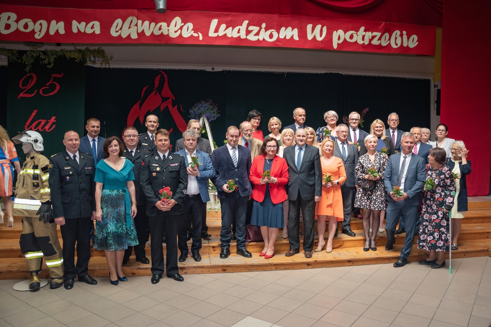 Minione 25 lat to oprócz codziennej pracy edukacyjnej również czas, w którym placówka odnotowywała wiele sukcesów swoich wychowanków. Z fotograficznym zapisem ważnych w życiu szkoły wydarzeń można było zapoznać się oglądając okolicznościową wystawę w holu placówki. Do osiągnięć i sukcesów nawiązała również obecna dyrektor szkoły – Grażyna Wójcik, podkreślając, że patron, którego ma szkoła zobowiązuje do wytężonej, a przede wszystkim systematycznej pracy, utrzymywania odpowiedniego wysokiego poziomu i poszanowania zasad. Tak jak strażacy są służbą najwyższego zaufania społecznego, niezawodną i skuteczną, tak szkolna społeczność dąży do utrzymywania wysokich standardów. – Jesteśmy dumni z naszego patrona i wierzę, że strażacy mogą być dumni z naszej młodzieży i jej osiągnięć – mówiła dyr. G. Wójcik.