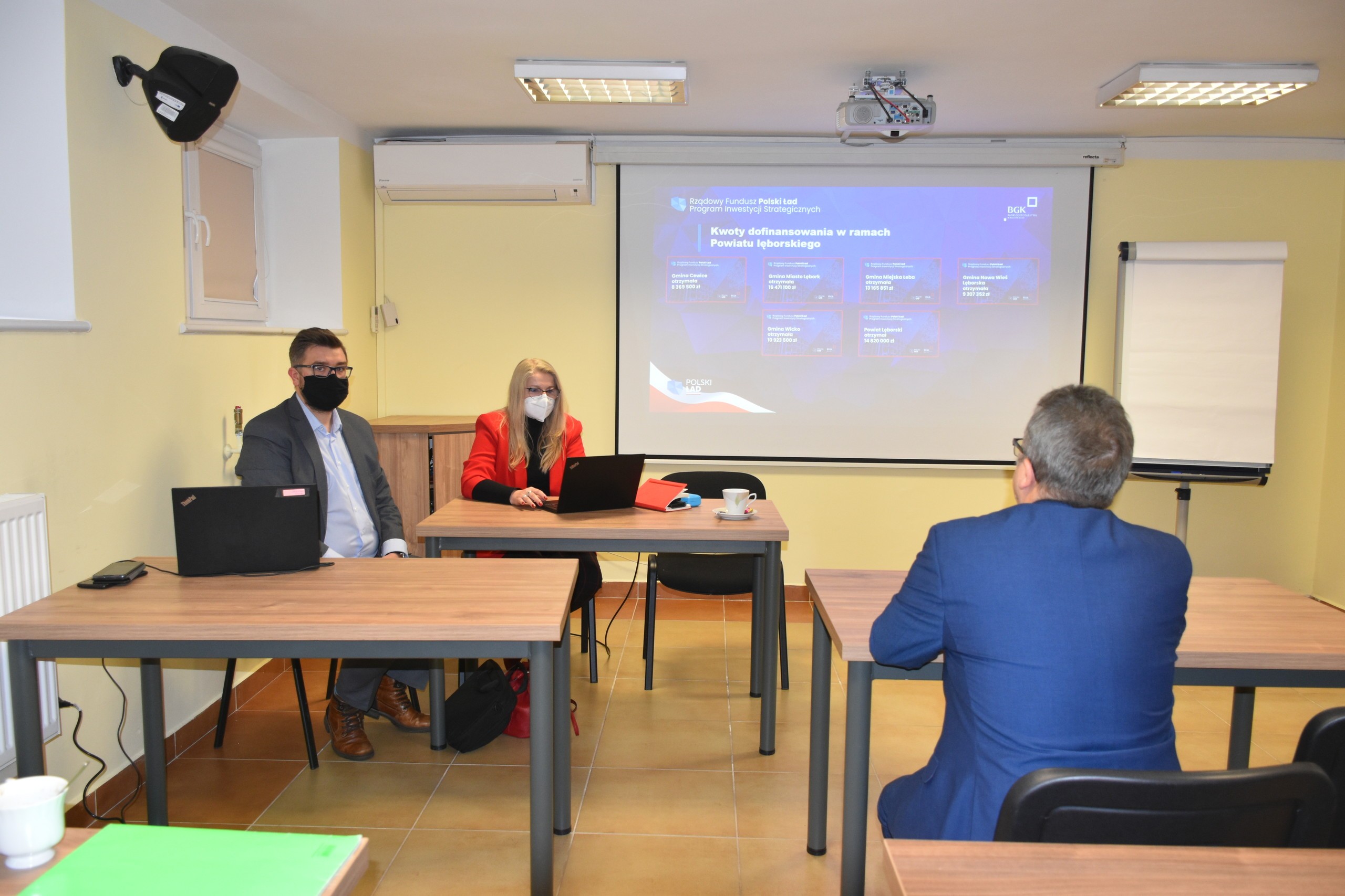 W związku z realizacją przez Bank Gospodarstwa Krajowego, Programu Inwestycji Strategicznych określonego uchwałą Rady Ministrów nr 84/2021 z dnia 1 lipca 2021 r. w sprawie ustanowienia Rządowego Funduszu Polski Ład: Programu Inwestycji Strategicznych i w związku z przyznaniem wsparcia finansowego dla wskazanych JST tj. dla Powiatu Lęborskiego, Gminy Cewice, Gminy Miasta Lębork, Gminy Miejskiej Łeby, Gminy Nowa Wieś Lęborska, Gminy Wicko, w dniu 22 grudnia br. w lęborskim starostwie odbyło się spotkanie, z Włodarzami (Wicestarostą Lęborskim - Edmundem Głombiewskim) i osobami wskazanymi przez poszczególne urzędy. Na spotkanie przybył również Marcin Brodalski - Dyrektor biura poselskiego w Lęborku Posła na Sejm RP Piotra Müllera.