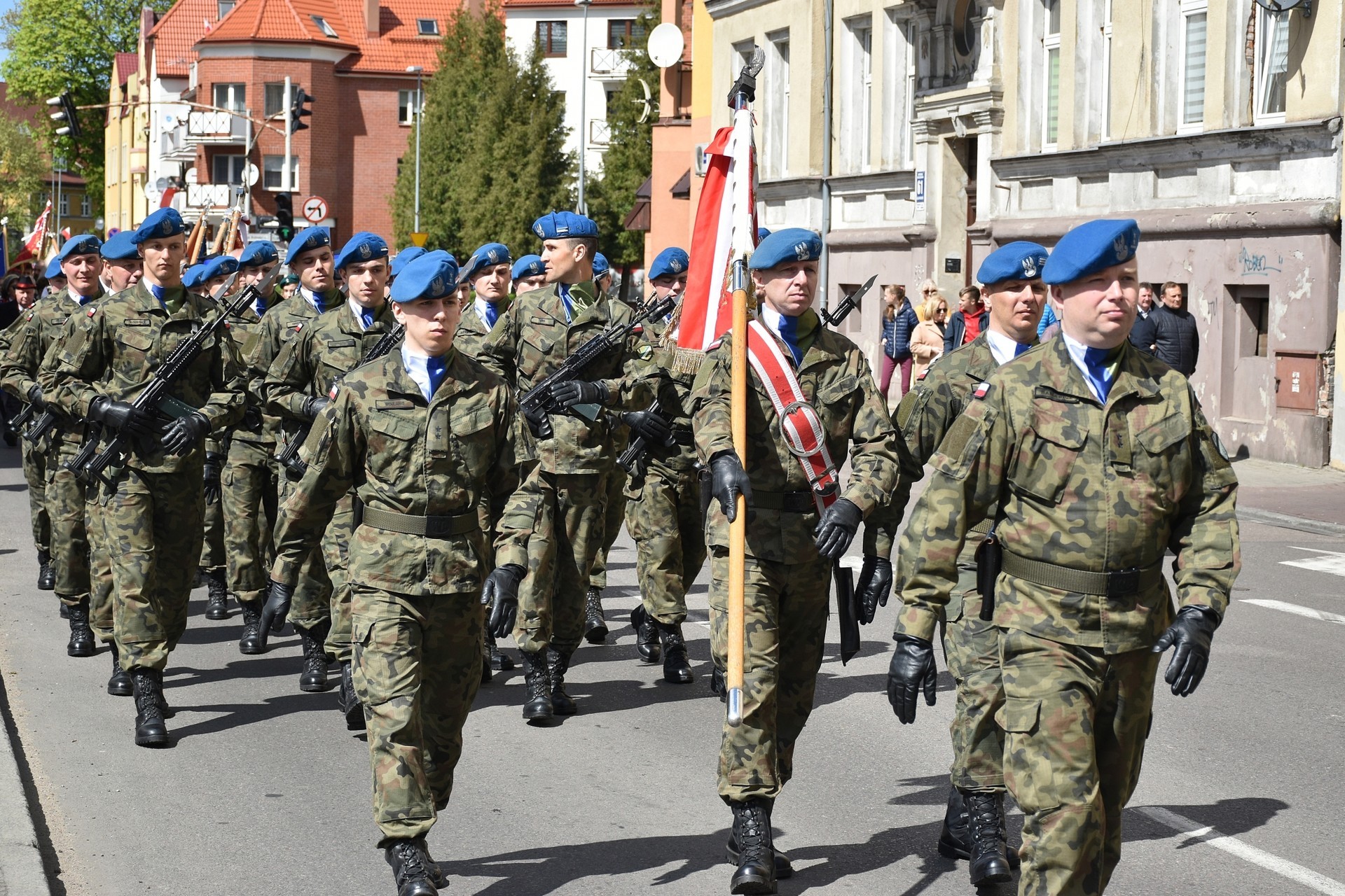 Tradycyjnie już uroczystości miały charakter patriotyczno-religijny. Rozpoczęły się w samo południe odpustową mszą św. w kościele pw. NMP Królowej Polski, którą odprawił Biskup Pomocniczy Diecezji Pelplińskiej, Ryszard Okroj w asyście księży Dekanatu Lęborskiego. Następnie kolorowy pochód prowadzony przez mażoretki i Orkiestrę Dętą Ziemia Lęborska, przemaszerował pod Obelisk Niepodległości przy Skwerze Orła Białego. W asyście kompanii honorowej wystawionej przez I Batalion Zmechanizowany w Lęborku, o tradycji związanej z Konstytucją 3 Maja, jej nowatorskich, jak na ówczesne czasy regulacjach, mówił burmistrz Lęborka Witold Namyślak. To szczególna rocznica, ponieważ w tym roku mija 15 lat od kiedy Polska została przyjęta do Unii Europejskiej oraz 20-rocznica funkcjonowania polskiej armii w NATO.
