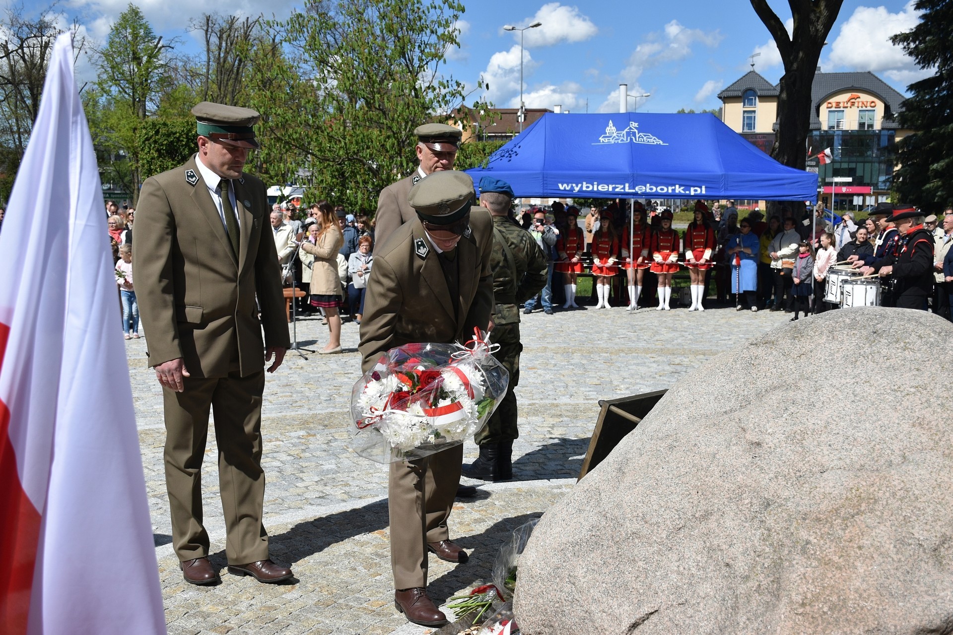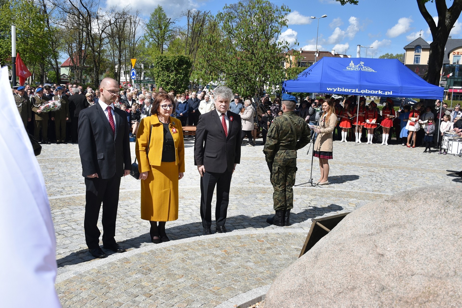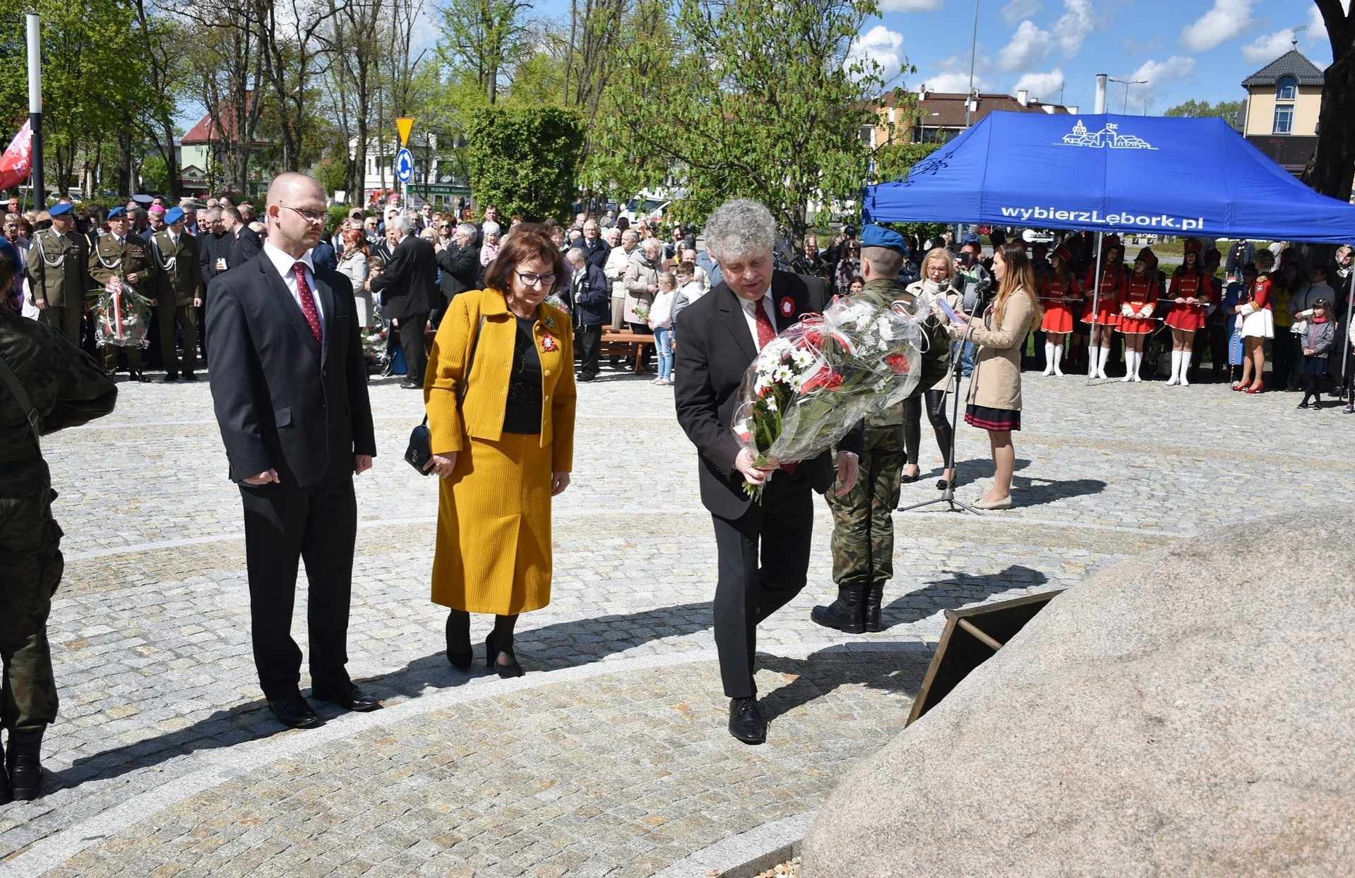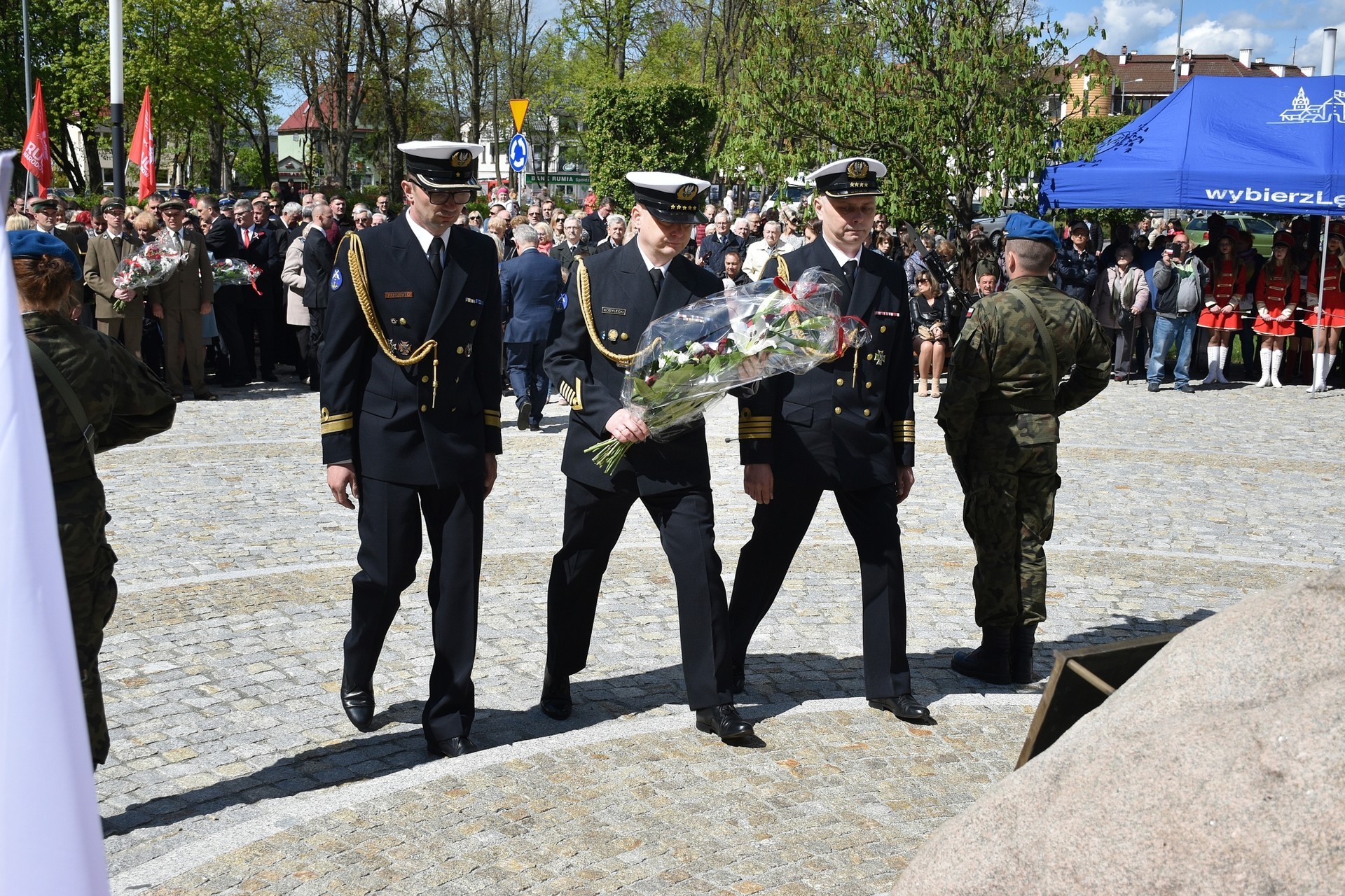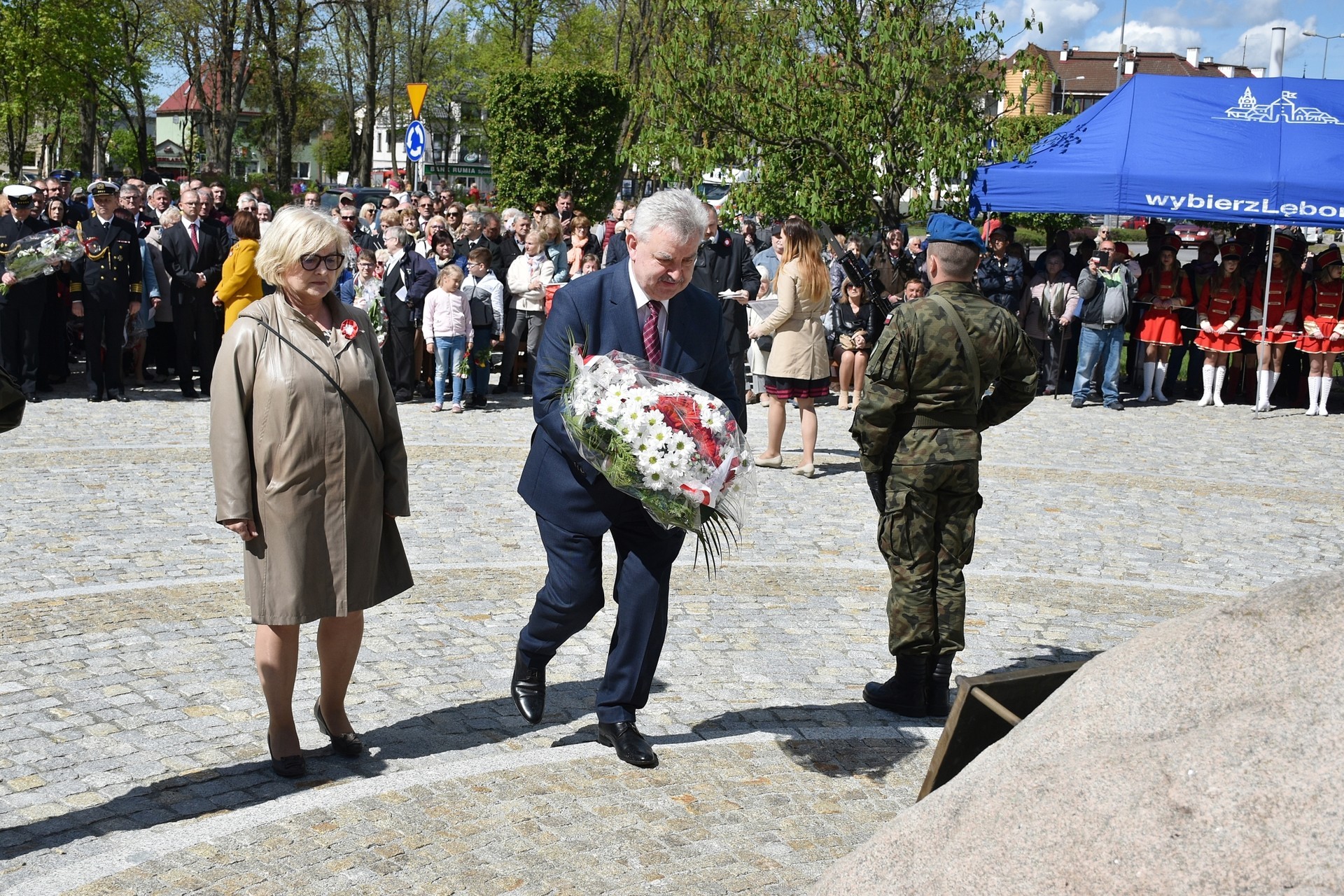 Wiązanki kwiatów złożyli: Senator RP Kazimierz Kleina, władze samorządowe powiatu z Alicją Zajączkowską, Starostą Lęborskim, miasta z burmistrzem Witoldem Namyślakiem oraz radnymi Sejmiku Województwa Pomorskiego: Iwoną Mielewczyk i Mirosławą Kaczyńską, przedstawiciele samorządów miasta i powiatu, organizacji społecznych, politycznych i kombatanckich.