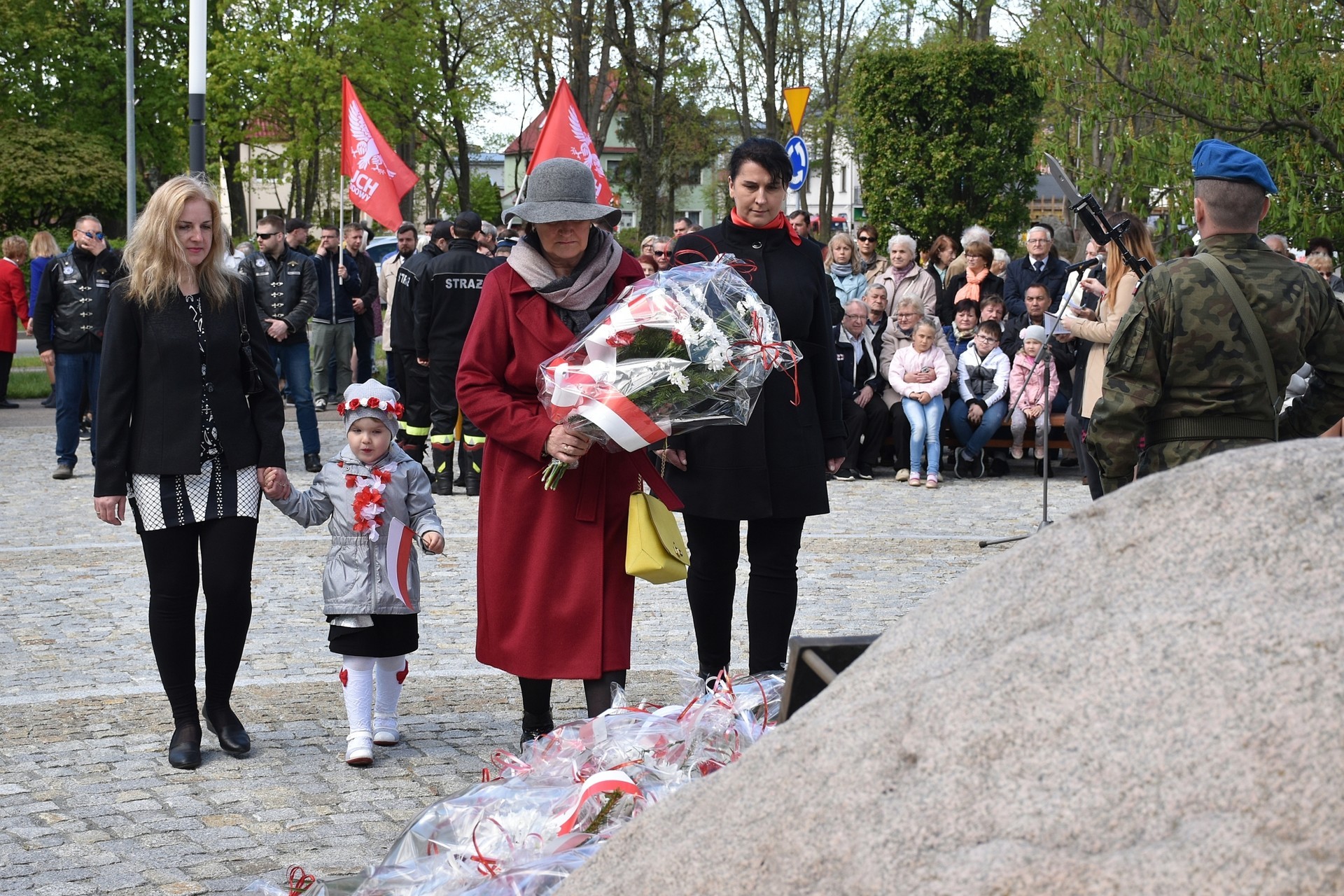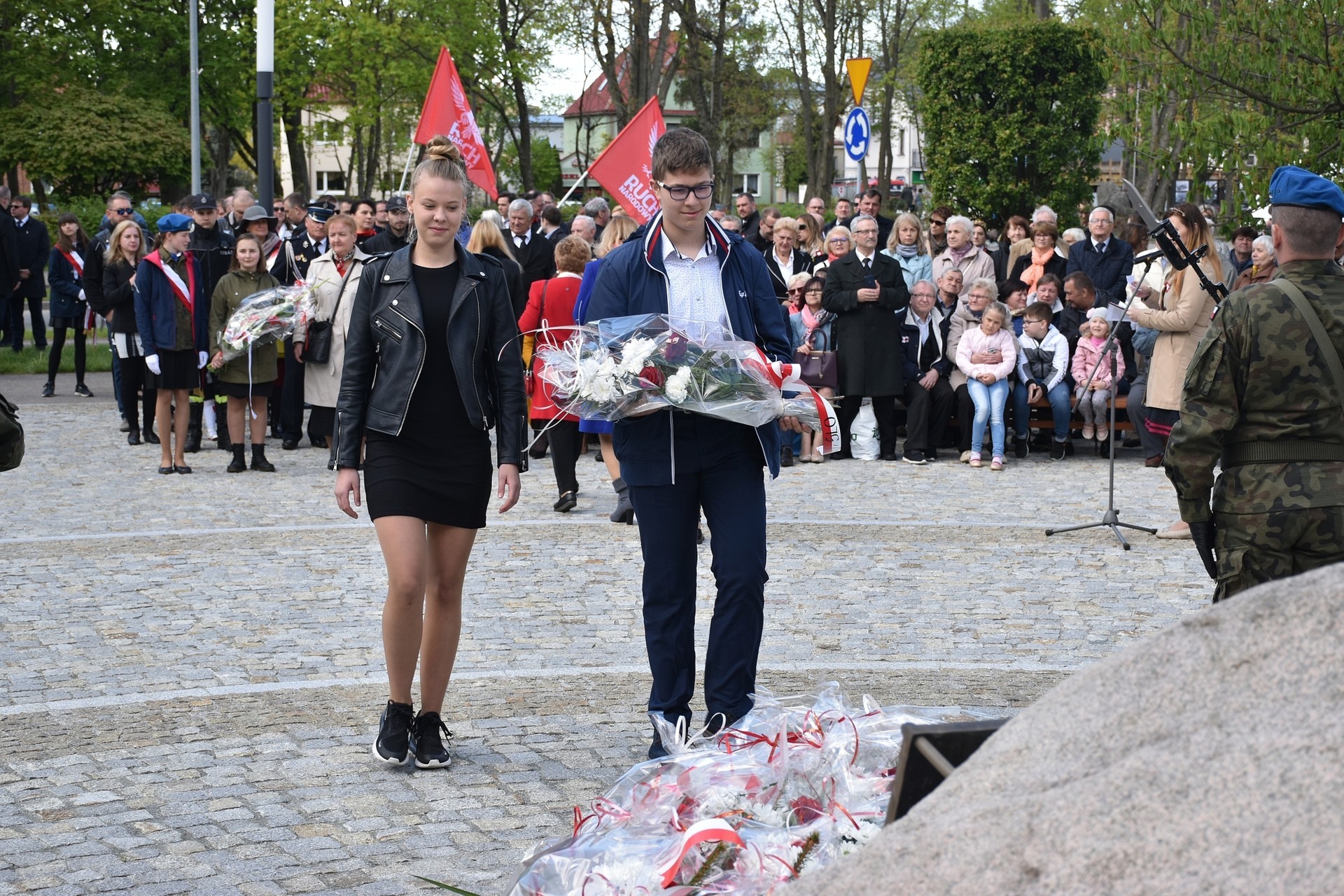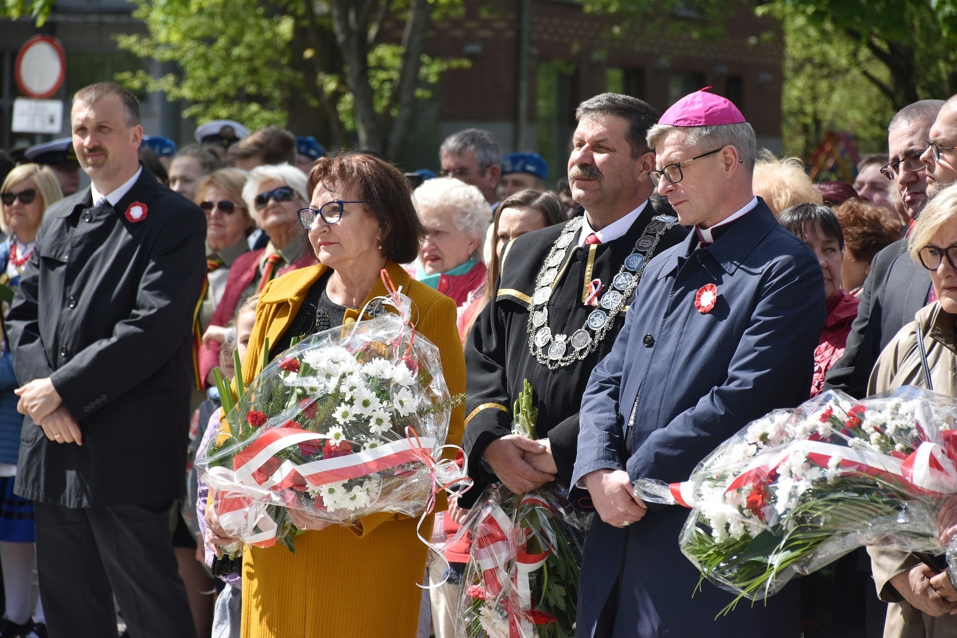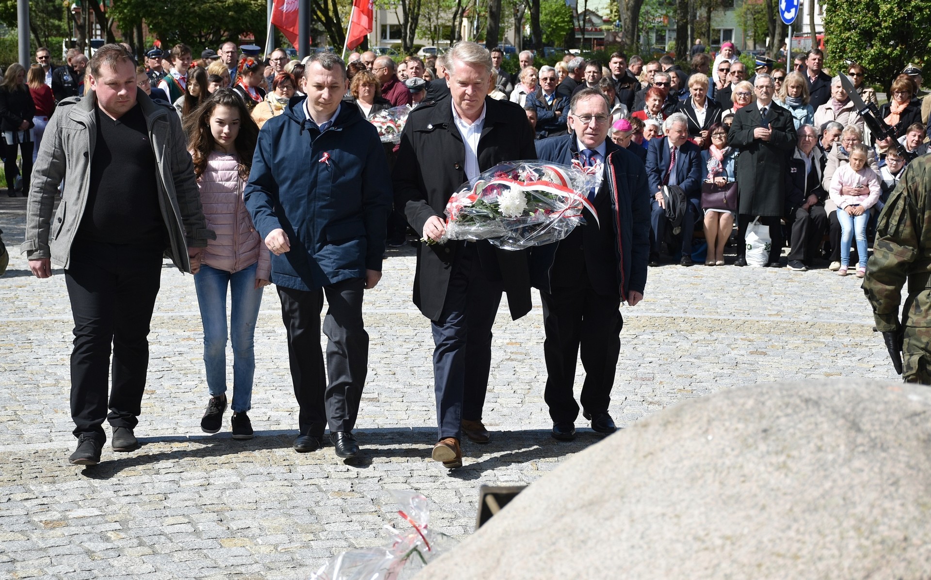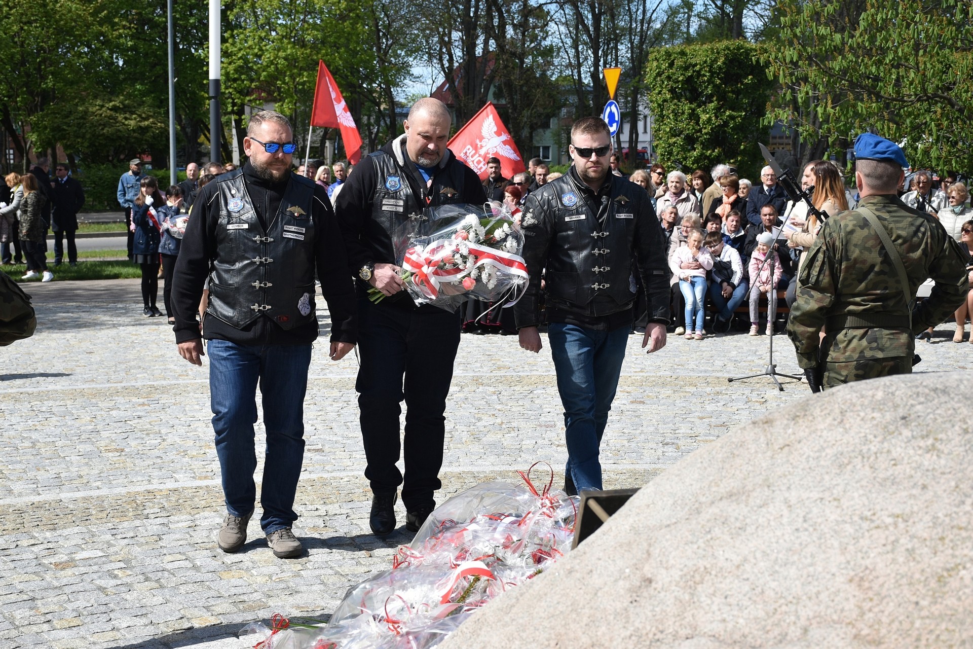 Wiązanki kwiatów złożyli: Senator RP Kazimierz Kleina, władze samorządowe powiatu z Alicją Zajączkowską, Starostą Lęborskim, miasta z burmistrzem Witoldem Namyślakiem oraz radnymi Sejmiku Województwa Pomorskiego: Iwoną Mielewczyk i Mirosławą Kaczyńską, przedstawiciele samorządów miasta i powiatu, organizacji społecznych, politycznych i kombatanckich.