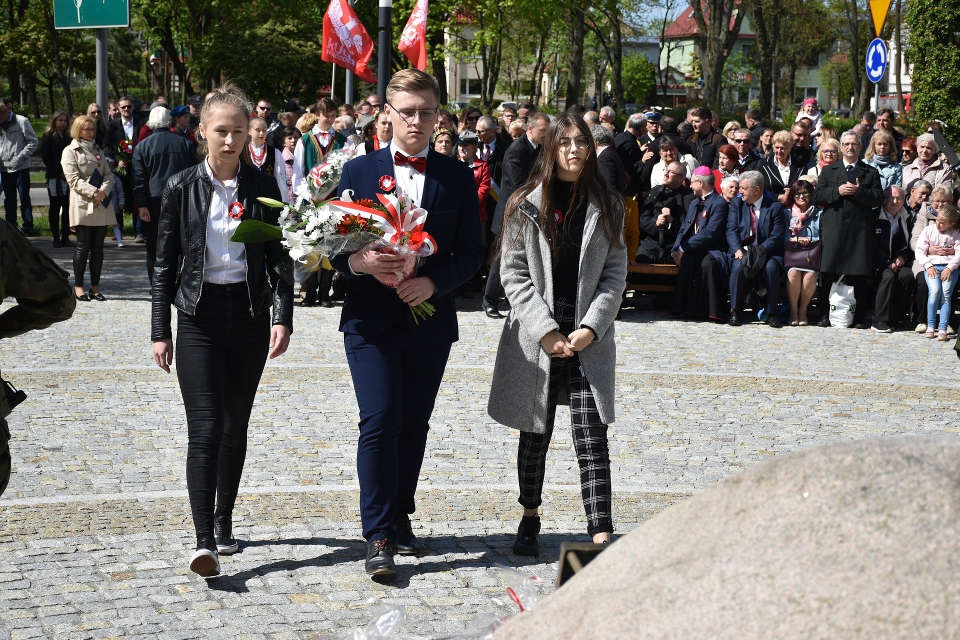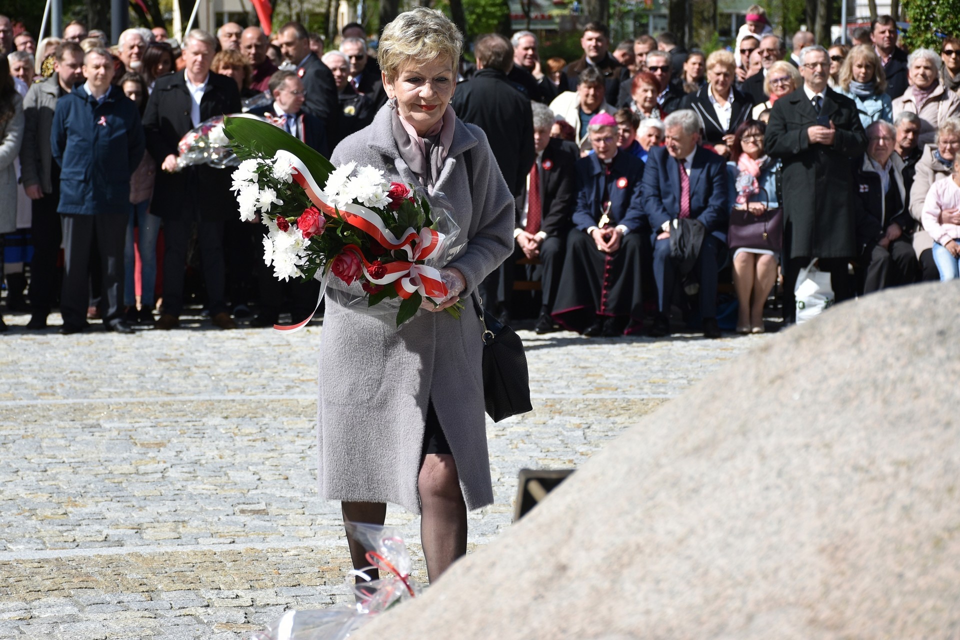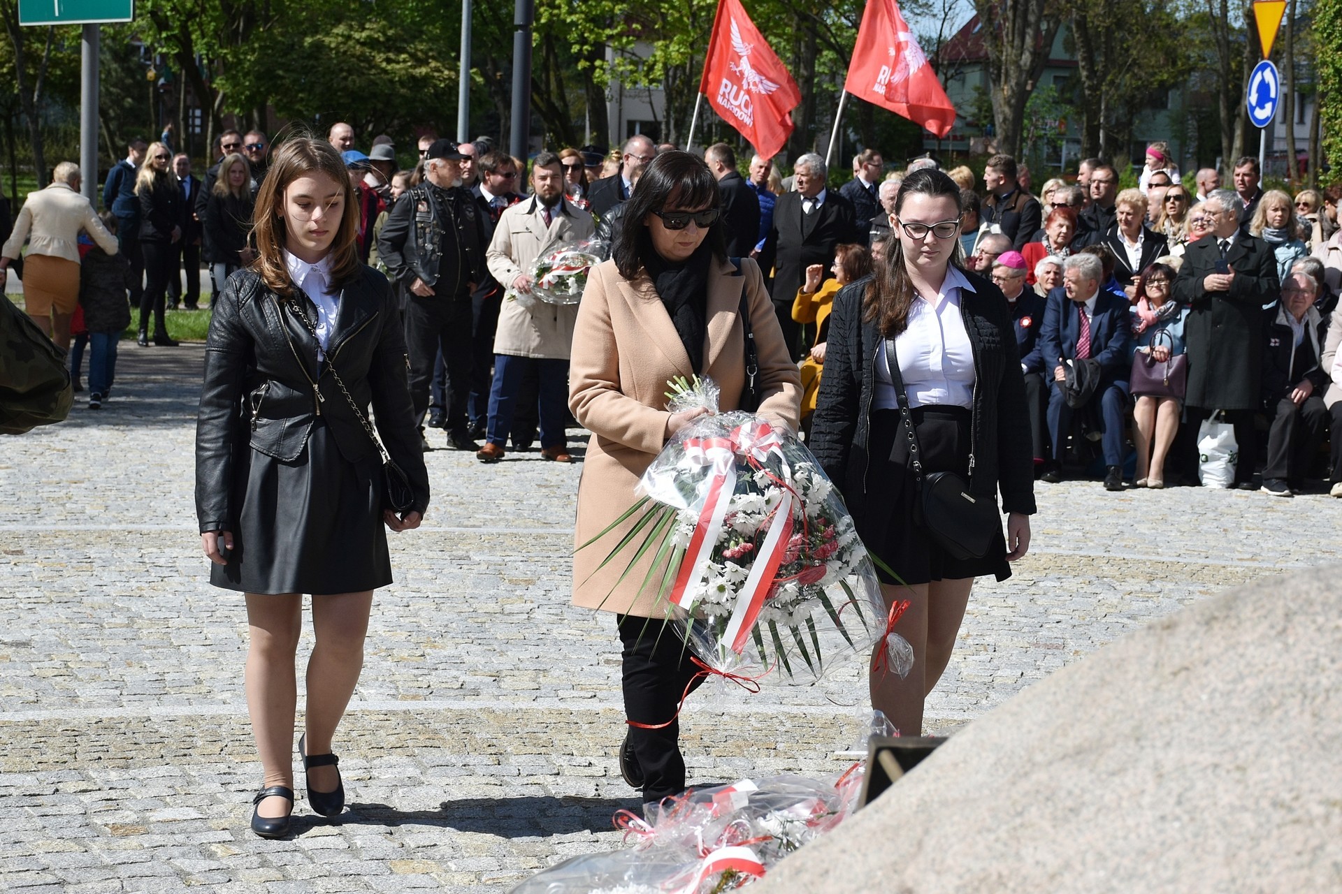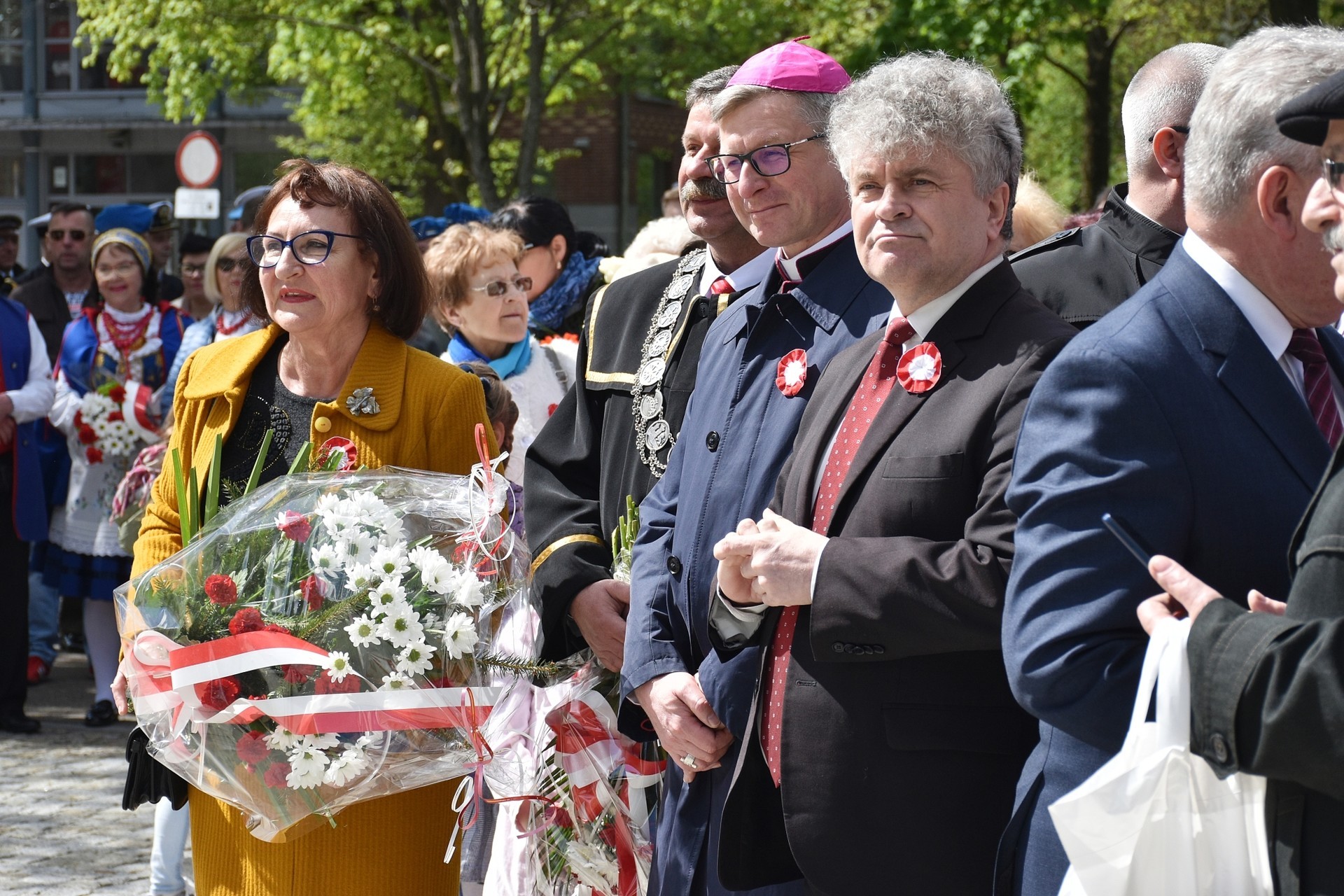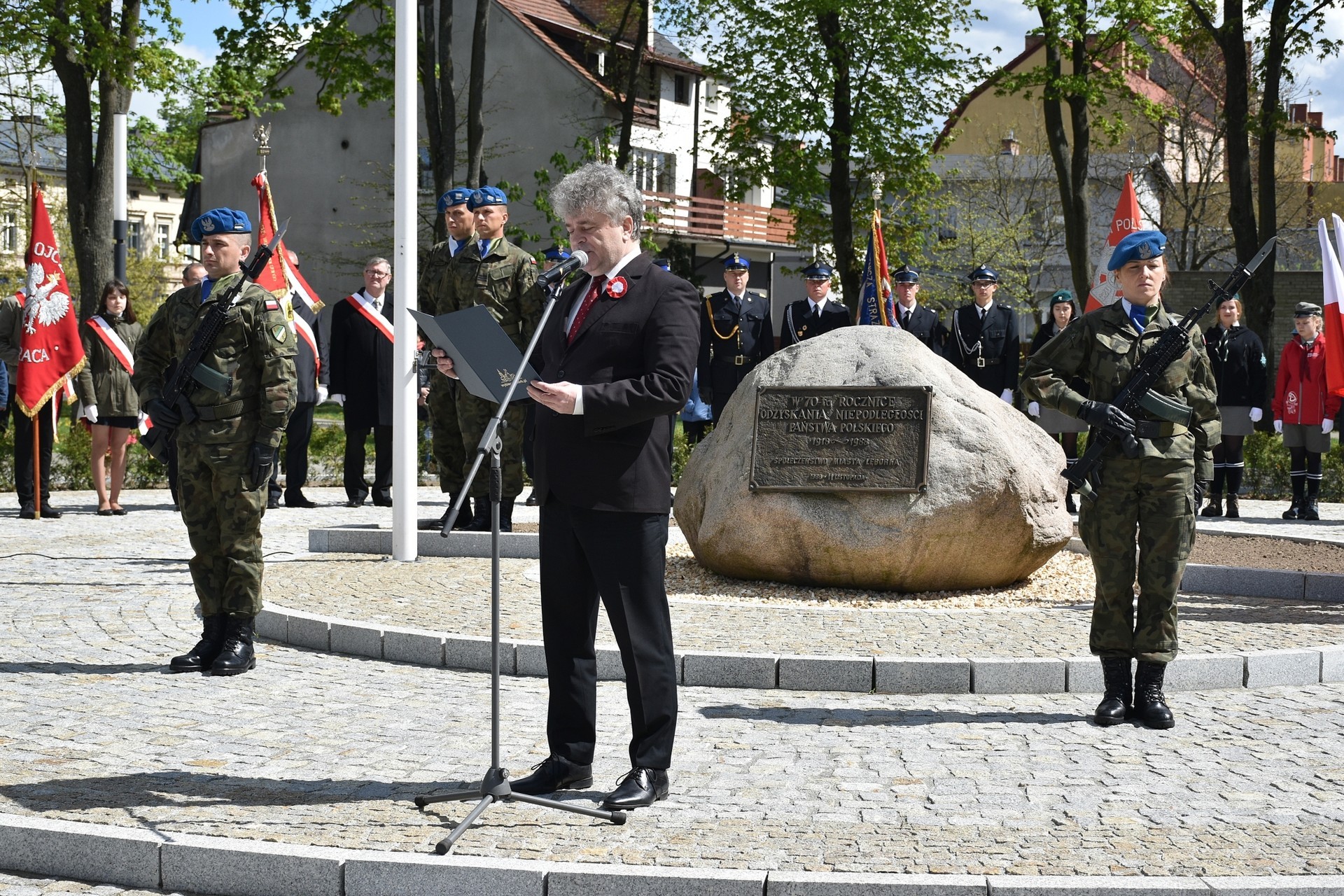 Wiązanki kwiatów złożyli: Senator RP Kazimierz Kleina, władze samorządowe powiatu z Alicją Zajączkowską, Starostą Lęborskim, miasta z burmistrzem Witoldem Namyślakiem oraz radnymi Sejmiku Województwa Pomorskiego: Iwoną Mielewczyk i Mirosławą Kaczyńską, przedstawiciele samorządów miasta i powiatu, organizacji społecznych, politycznych i kombatanckich.
