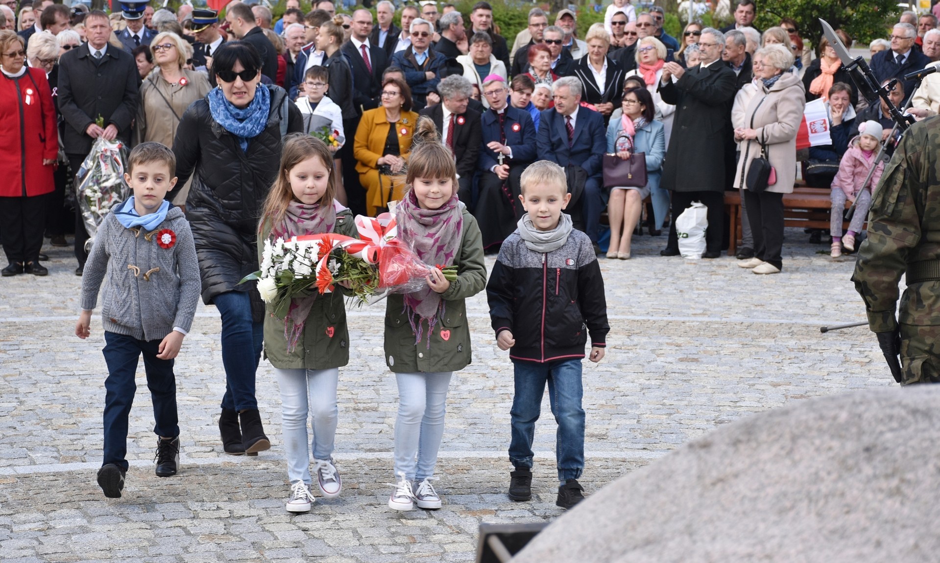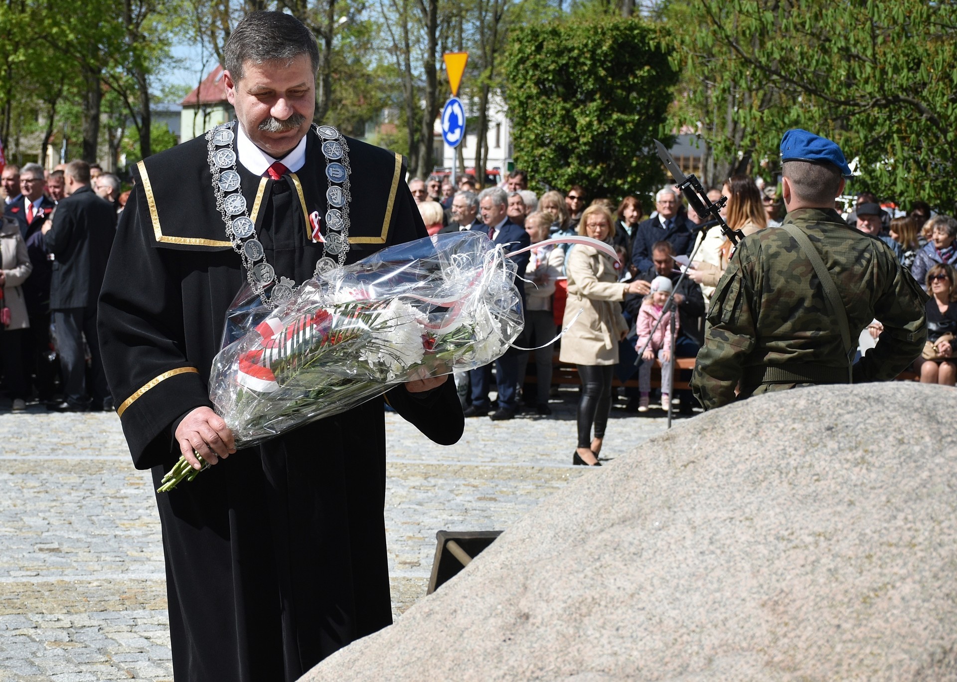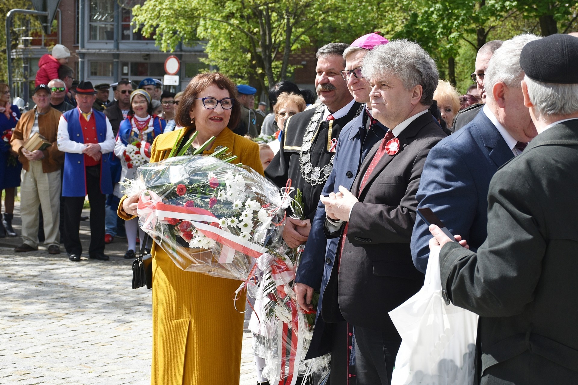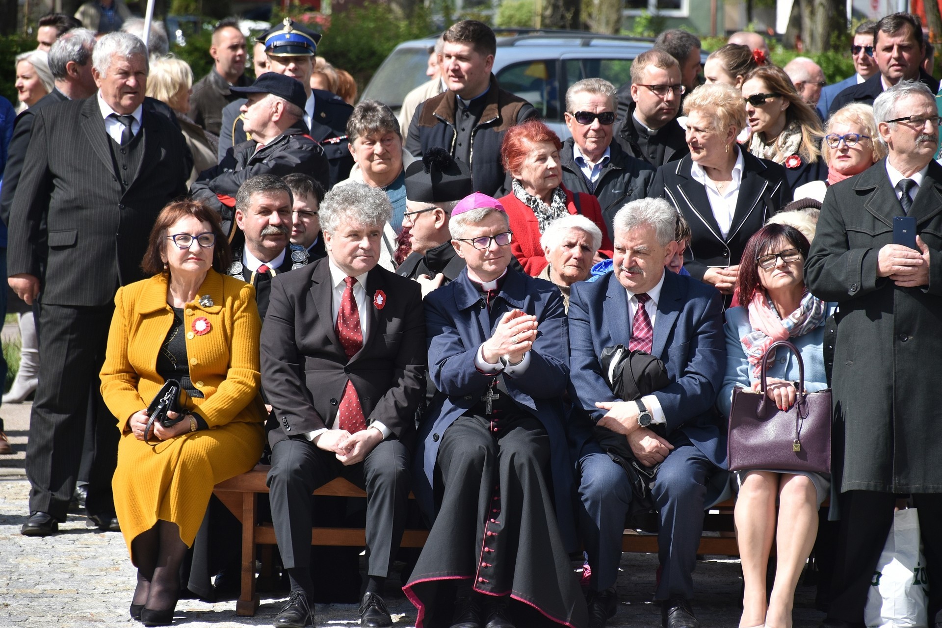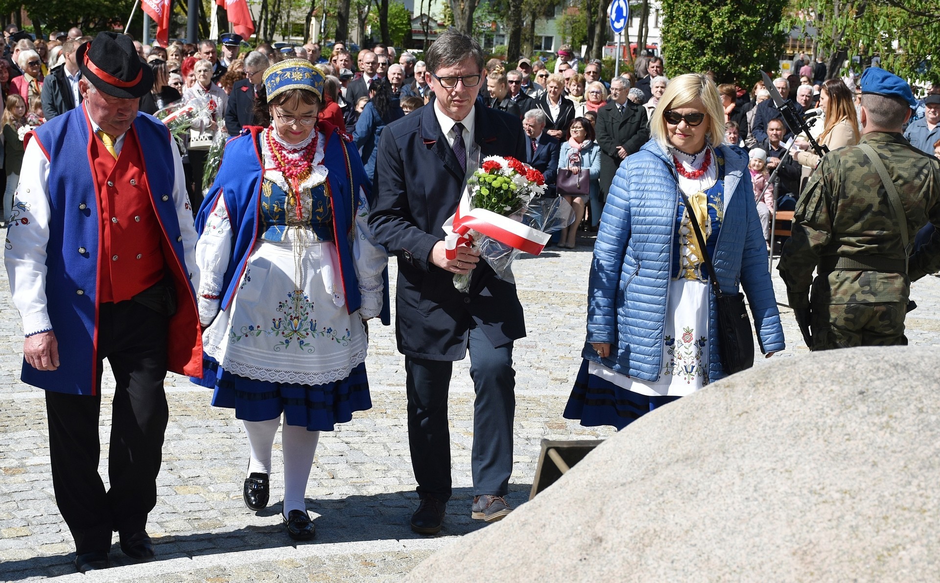 Wiązanki kwiatów złożyli: Senator RP Kazimierz Kleina, władze samorządowe powiatu z Alicją Zajączkowską, Starostą Lęborskim, miasta z burmistrzem Witoldem Namyślakiem oraz radnymi Sejmiku Województwa Pomorskiego: Iwoną Mielewczyk i Mirosławą Kaczyńską, przedstawiciele samorządów miasta i powiatu, organizacji społecznych, politycznych i kombatanckich.