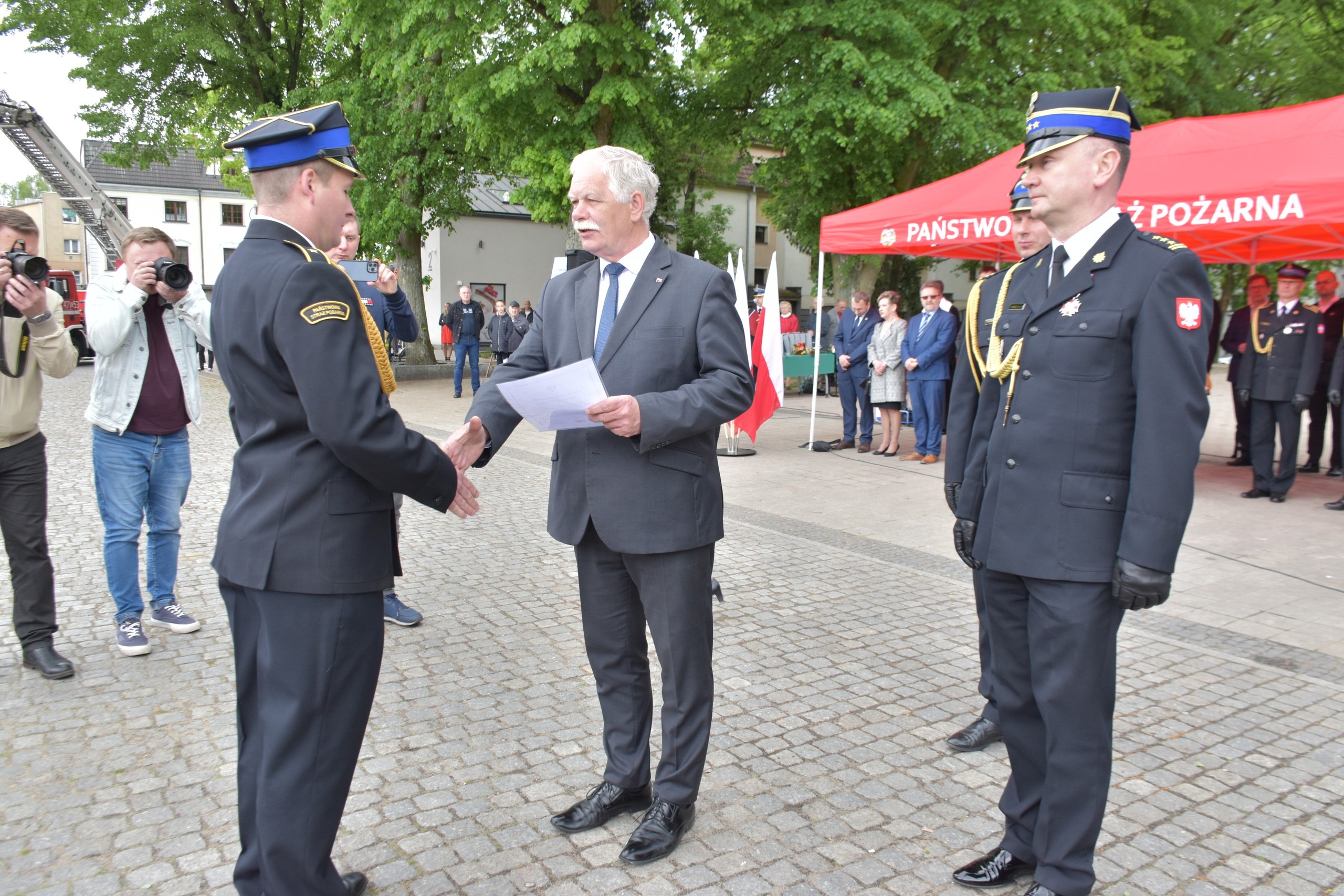 Podczas uroczystości Wicewojewoda Pomorski, wraz z Komendantem Wojewódzkim wręczyli Zastępcy Wójta Gminy Cewice, akt włączenia Ochotniczej Straży Pożarnej w Łebuni do Krajowego Systemu Ratowniczo-Gaśniczego.