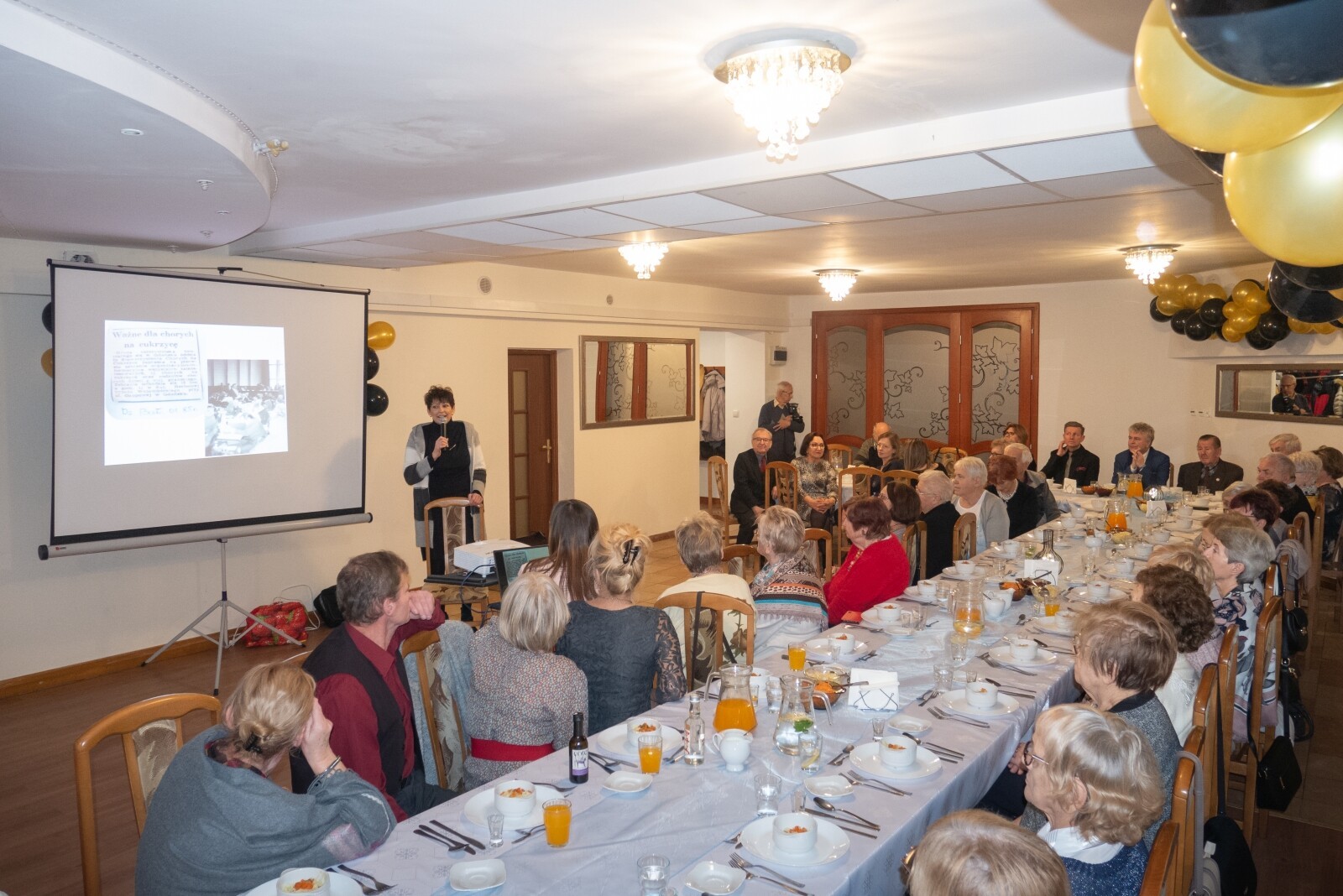 Życzenia zebranym i gratulacje wyróżnionym złożył też burmistrz Lęborka Witold Namyślak. Wśród reprezentujących władze samorządowe i instytucje byli też: Marian Kurzydło – sekretarz miasta, Bogusława Lis-Zielińska – kierownik Powiatowego Centrum Pomocy Rodzinie i Elżbieta Michalska – kierownik Miejskiego Ośrodka Pomocy Społecznej w Lęborku. Zarząd Wojewódzki PSD, wspólnie z prezes Ewą Dygaszewicz, reprezentowała sekretarz – Krystyna Kiedrowicz, która poprowadziła część szkoleniową spotkania. Rok temu tematyka dotyczyła cukrzycy w wymiarze „ABC”, czyli kompendium niezbędnej wiedzy o tej chorobie. W tym roku mowa była o tym „Jak osoba z cukrzycą może wspierać odporność”, a więc wzmacniać organizm, co jest ważne w życiu każdego człowieka, ale w przypadku choroby przewlekłej – szczególnie istotne. W trakcie prelekcji zaprezentowane zostały dane „IDF Diabets Atlas”, zgodnie z którymi cukrzyca jest jednym z najszybciej na świecie rozwijających się stanów zagrożenia zdrowia XXI w., co potwierdzają tendencje statystyczne, zakładające, że w 2045 r. aż 12,2 proc. populacji będzie dotyczył problem z cukrzycą, podczas gdy w 2021 r. na cukrzycę chorowało 10,5 proc. populacji. Nie leczona, pozbawiona kontroli może prowadzić do wielu powikłań, w tym utraty wzroku, schorzeń nerek, uszkodzeń nerwów, a nawet amputacji kończyn dolnych. Dlatego tak ważne jest popularyzowanie wiedzy jak ograniczyć ryzyko cukrzycy i jak postępować, jeśli ona wystąpi. Temu m.in. służy działalność Polskiego Stowarzyszenia Diabetyków, które liczy obecnie 350 oddziałów i kół, zrzeszając prawie 60 tys. pacjentów i prowadząc różnego rodzaju profilaktyczne kampanie informacyjne.