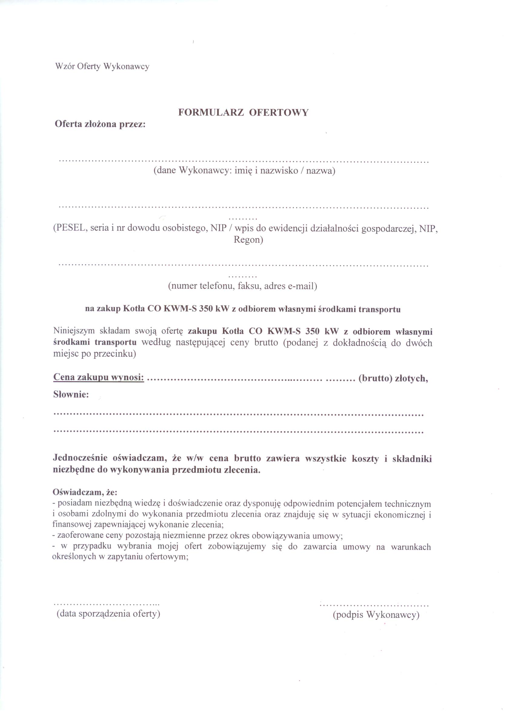 - Oferta na zakup kotła CO KWM-S 350 kW