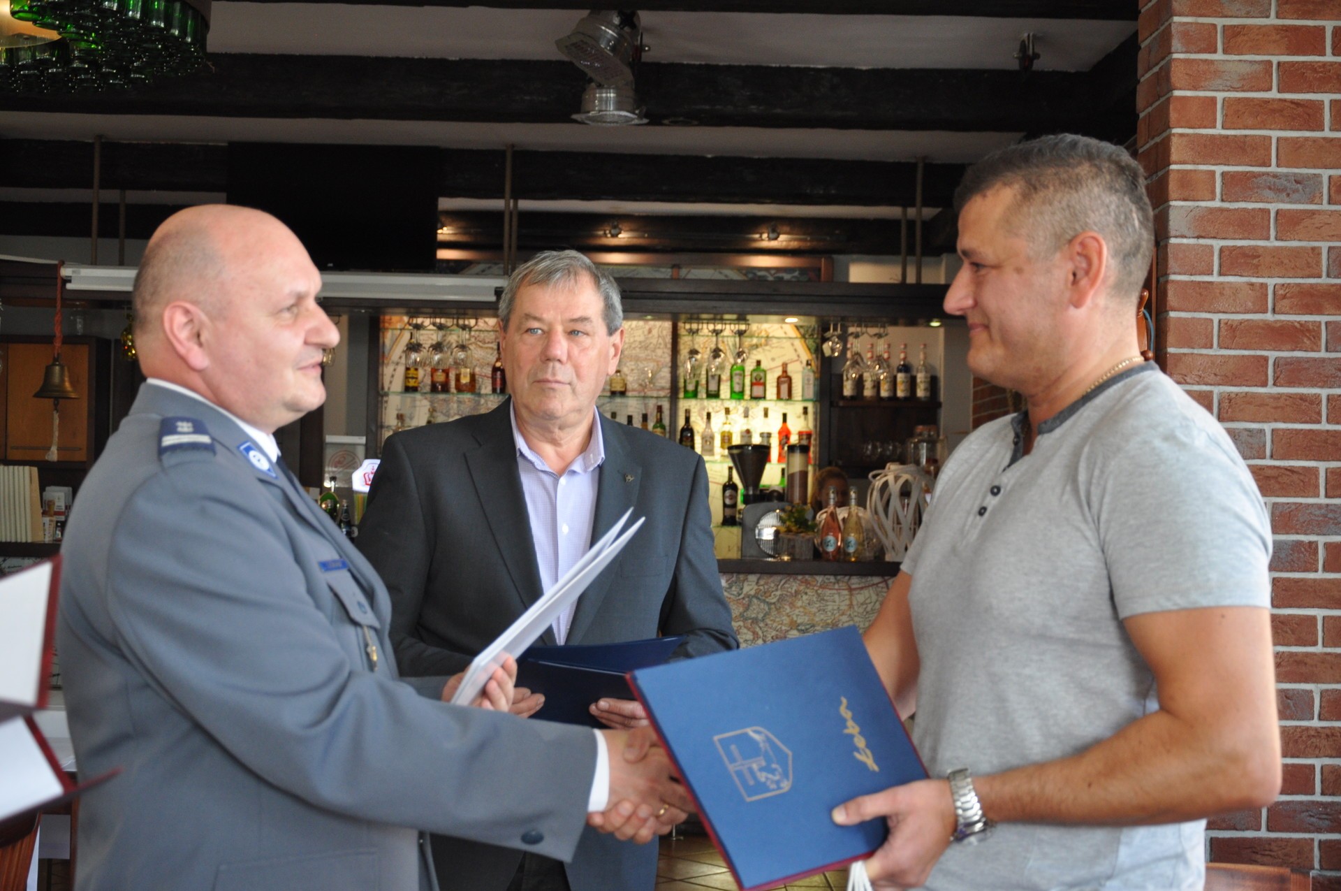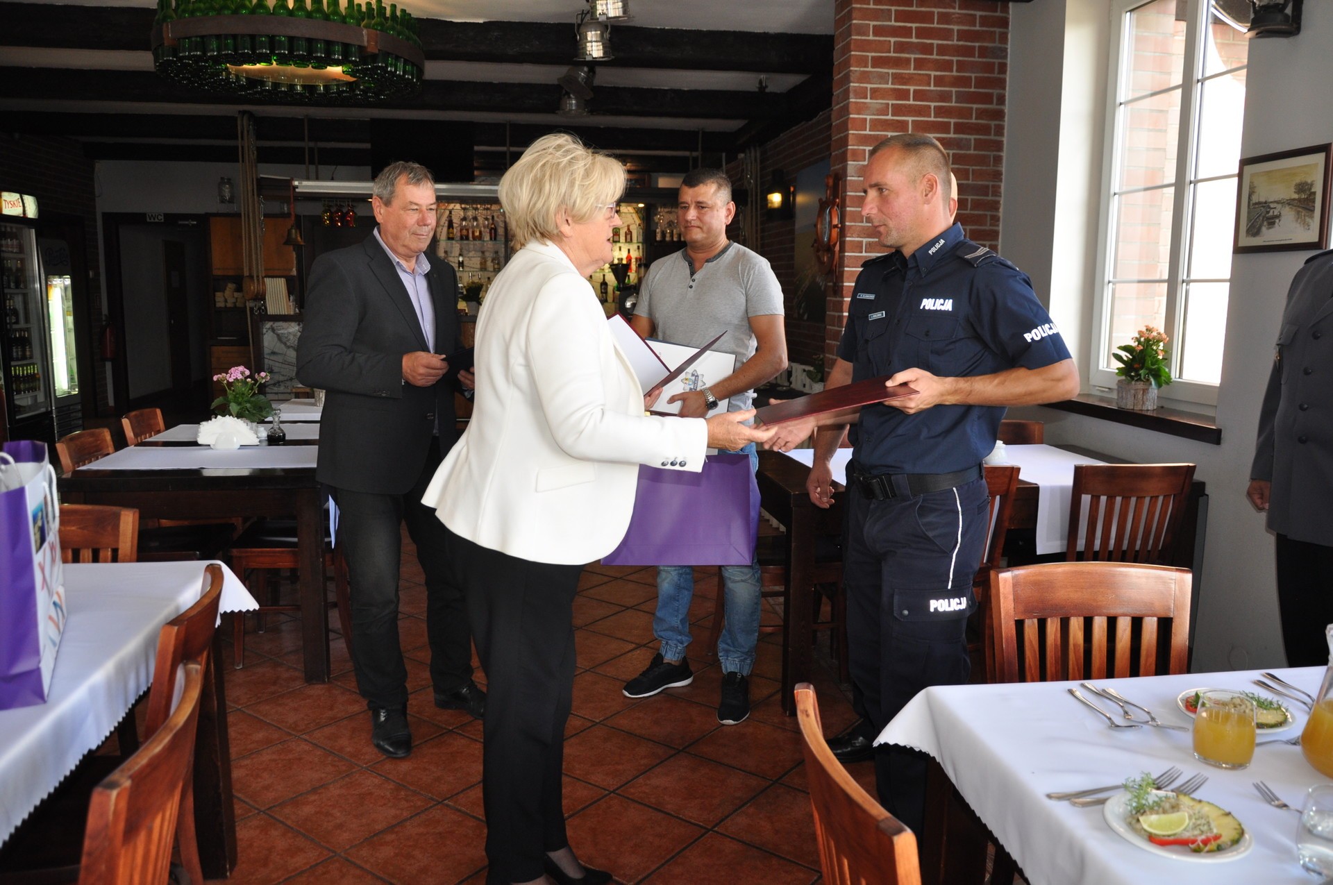 Policjantom i Panu Jerzemu gratulacje złożył również Burmistrz Miasta Łeby Andrzej Strzechmiński i zastępca komendanta powiatowego w Lęborku, mł.insp. Ireneusz Szmurło. Wśród wyrażających uznanie nie zabrakło również komendanta posterunku policji w Łebie, kom. Bartosza Budkowskiego.