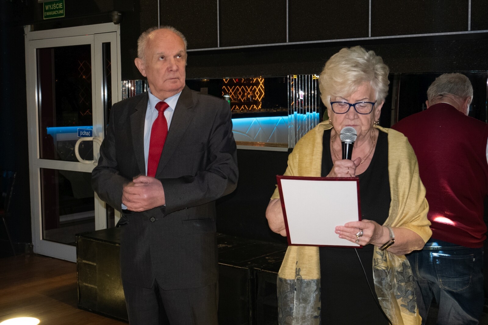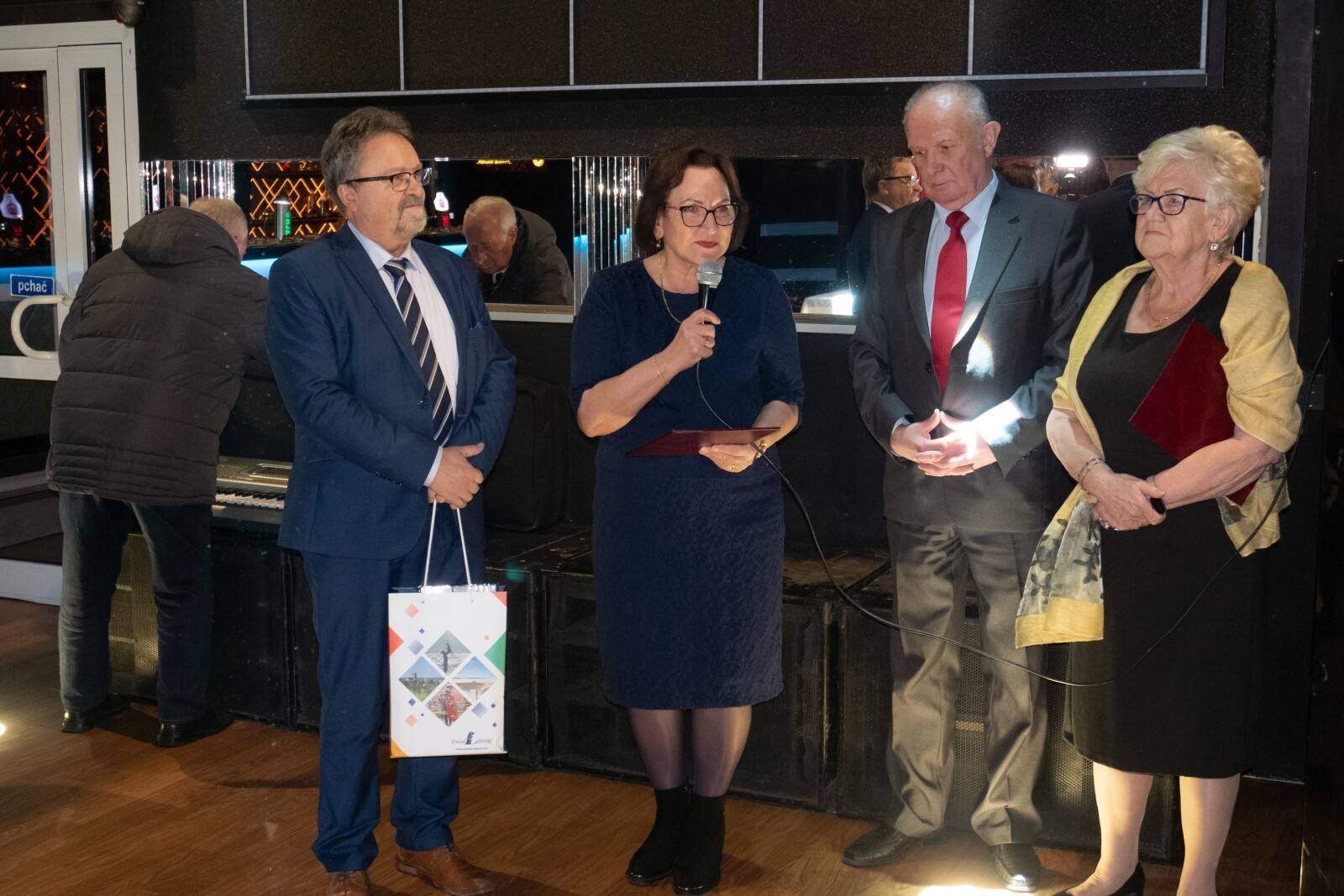Spotkanie otworzył Andrzej Kaczorowski, prezes SERiON wspólnie z Beatą Gołojuch – sekretarzem Zarządu stowarzyszenia. W klimat oficjalnej części zebranych wprowadził występ zespołu „Radość Życia”, który oprócz tradycyjnego Hymnu Seniora, zaprezentował wiązankę dobrze znanych i lubianych utworów, zapraszając publiczność do wspólnego śpiewania. Co roku Dni Seniora obchodzone są w wymiarze światowym, europejskim i ogólnopolskim. Lęborskie obchody dotyczyły obchodów krajowych, które przypadają 14 listopada. Oprócz lęborskich reprezentantów stowarzyszenia na spotkaniu pojawili się również przedstawiciele Łeby, Wicka i Mostów. Minutą ciszy uczczono pamięć zmarłych członków stowarzyszenia. Dzień seniora to z jednej strony okazja do składania życzeń, a z drugiej do pewnej refleksji i zastanowienia się nad potrzebami i możliwościami osób starszych, ich udziałem w życiu publicznym i potrzebą wspierania inicjatyw zgłaszanych przez środowiska senioralne. Zwrócono również uwagę na wartość życiowego doświadczenia seniorów – bezcennej skarbnicy wiedzy, z której młodsi powinni jak najwięcej czerpać. Życzeń zdrowia, pogody ducha i satysfakcji z podejmowanych działań tego dnia nie zabrakło. W imieniu Zarządu Powiatu życzenia seniorom złożyli: Starosta Lęborski Alicja Zajączkowska i wicestarosta Edmund Głombiewski, dołączając do nich zestaw upominków przydatnych do wyposażenia biura stowarzyszenia. W powiecie lęborskim i samym mieście funkcjonowanie prężnie działającej organizacji praktycznie od momentu jej powstania zyskała przychylność władz samorządowych. Stąd też częsta obecność podczas spotkań przedstawicieli powiatu, miasta i instytucji działających na rzecz seniorów i osób niepełnosprawnych, które podczas tego spotkania reprezentowali: starostowie, burmistrz Witold Namyślak, sekretarz miasta Marian Kurzydło oraz reprezentująca Miejski Ośrodek Pomocy Społecznej kierownik tej placówki – Elżbieta Michalska.
