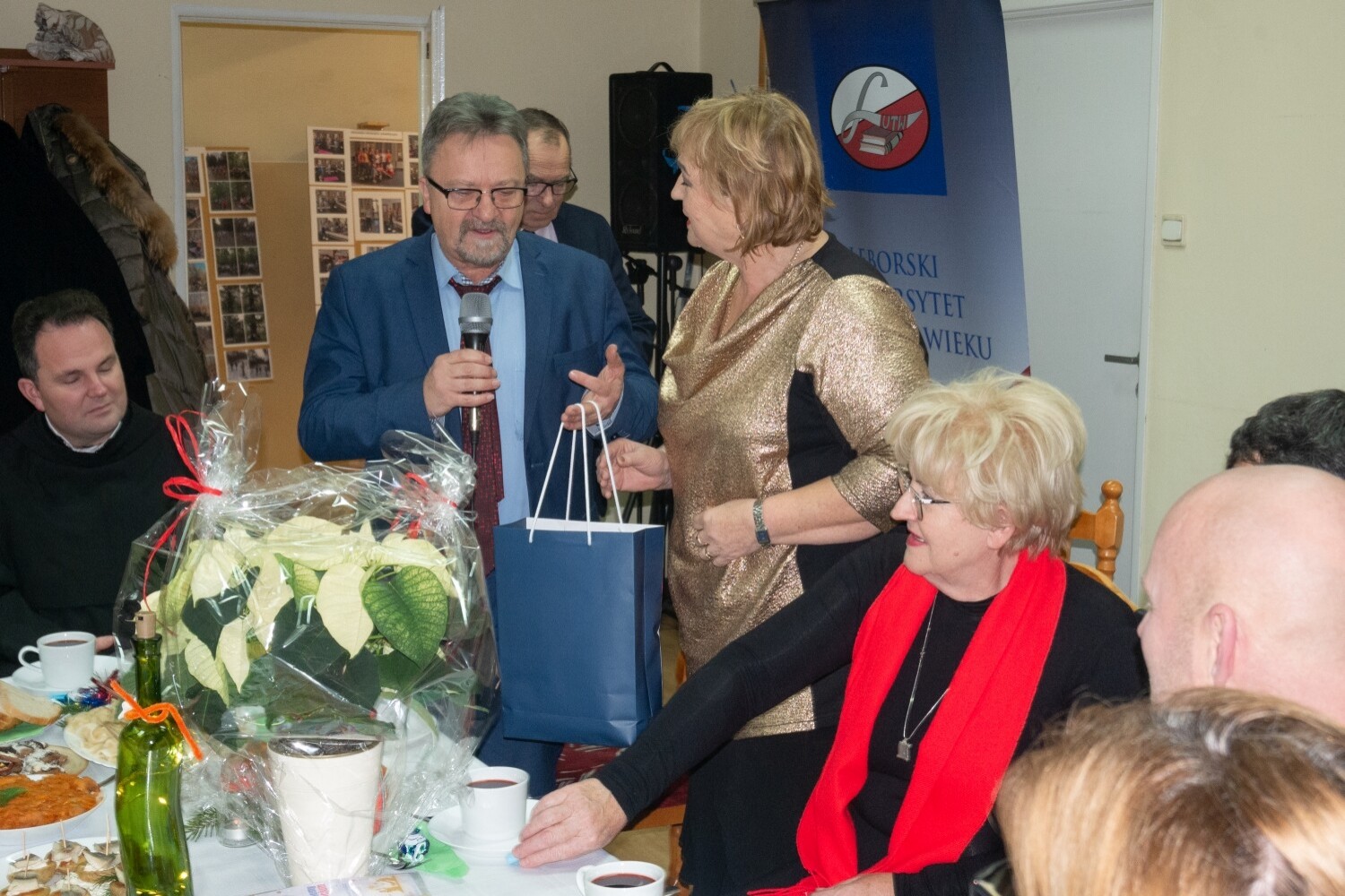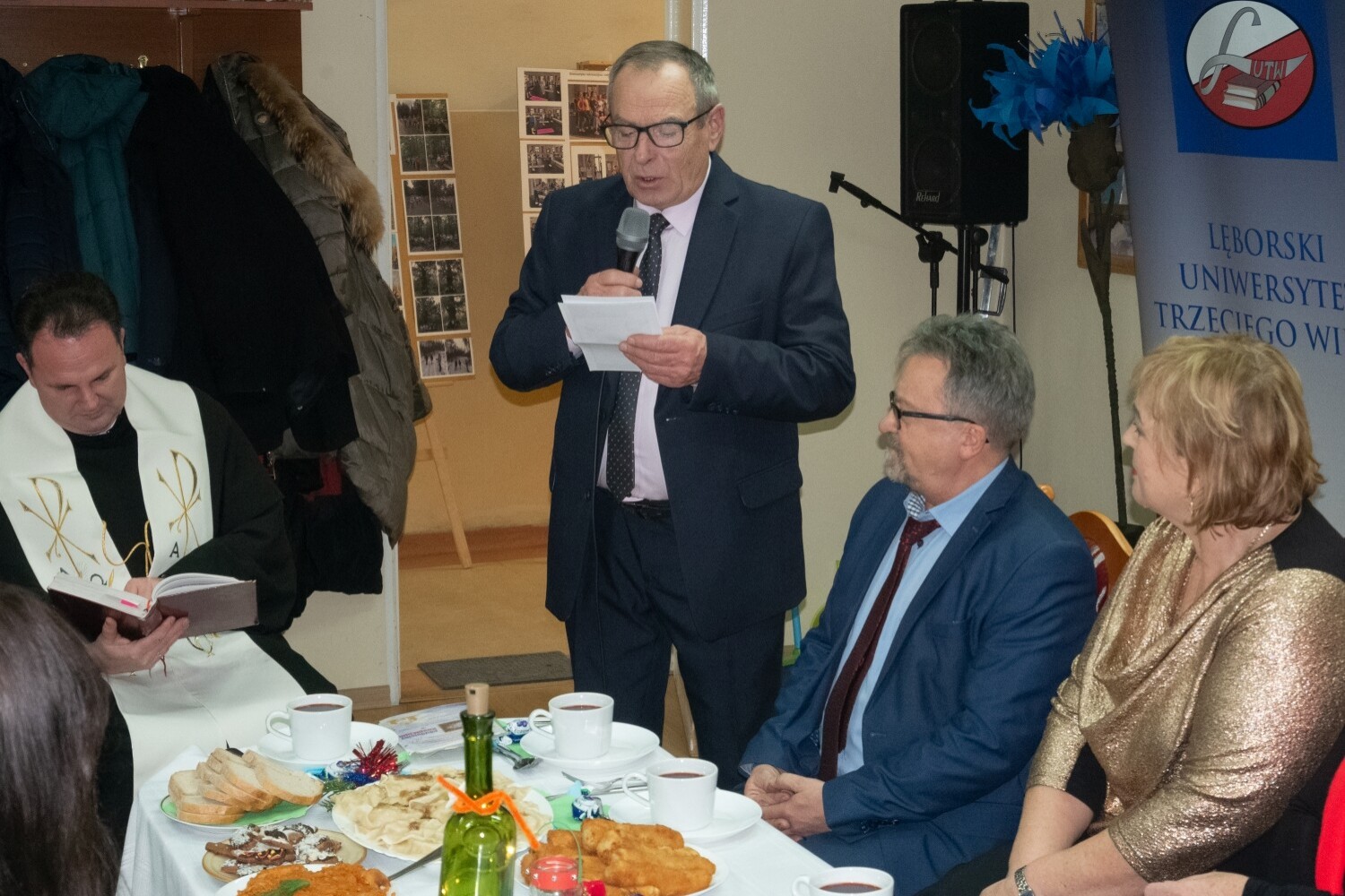 Spotkanie opłatkowe zorganizowała grupa aktywnych seniorów z Lęborskiego Uniwersytetu Trzeciego Wieku. Przy suto, aczkolwiek wigilijnie zastawionych stołach zasiedli oprócz słuchaczy LUTW, samorządowcy i przyjaciele Uniwersytetu.