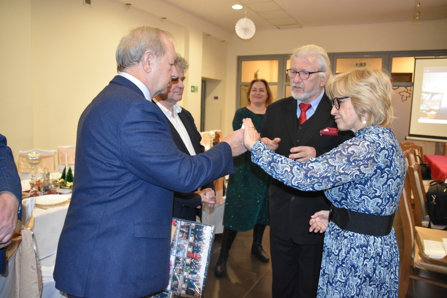W sali bankietowej „Arkady” spotkali się w poniedziałkowy wieczór (19.12) członkowie Lęborskiego Klubu Przedsiębiorców. Z życzeniami przedstawicieli biznesu odwiedziła starosta Alicja Zajączkowska i burmistrz Lęborka Witold Namyślak. Spotkanie poprowadził Jerzy Tyrakowski, prezes LKP. W świątecznym nastroju wspominano m.in. obchodzony niedawno jubileusz działalności Lęborskiego Klubu Przedsiębiorców. Okolicznościowe podziękowania w formie grawertonów i kolaży ze zdjęć otrzymali ci, którzy z różnych przyczyn nie mogli uczestniczyć w XXV-leciu LKP. Uczestnicy spotkania połączyli się również zdalnie z mieszkającym poza powiatem Lęborskim, wieloletnim członkiem LKP – Zbigniewem Kotlarkiem. Świąteczną atmosferę wsparł modlitwą ks. Wojciech John – proboszcz parafii pw. św. Maksymiliana Marii Kolbego i Wszystkich Świętych.