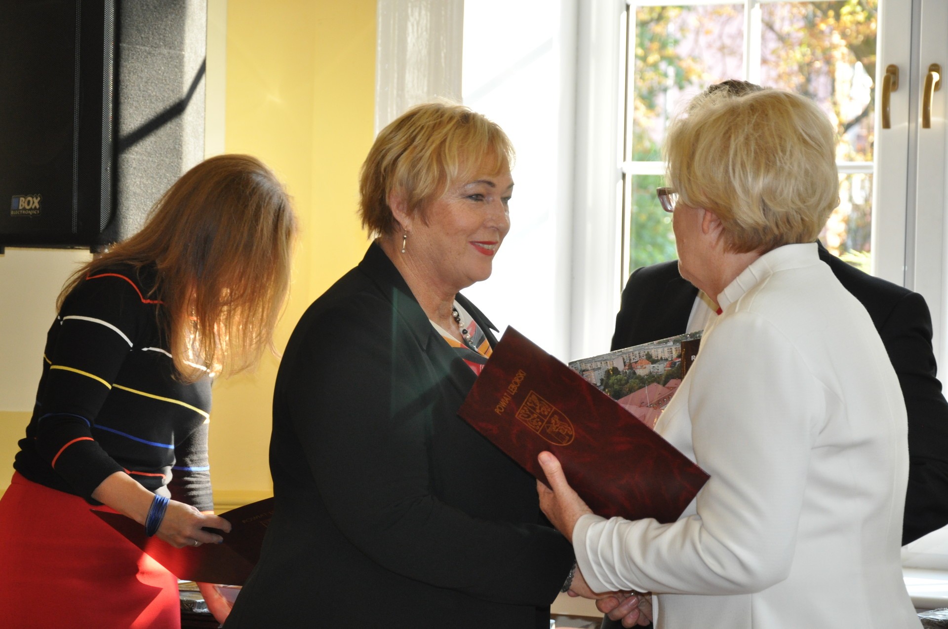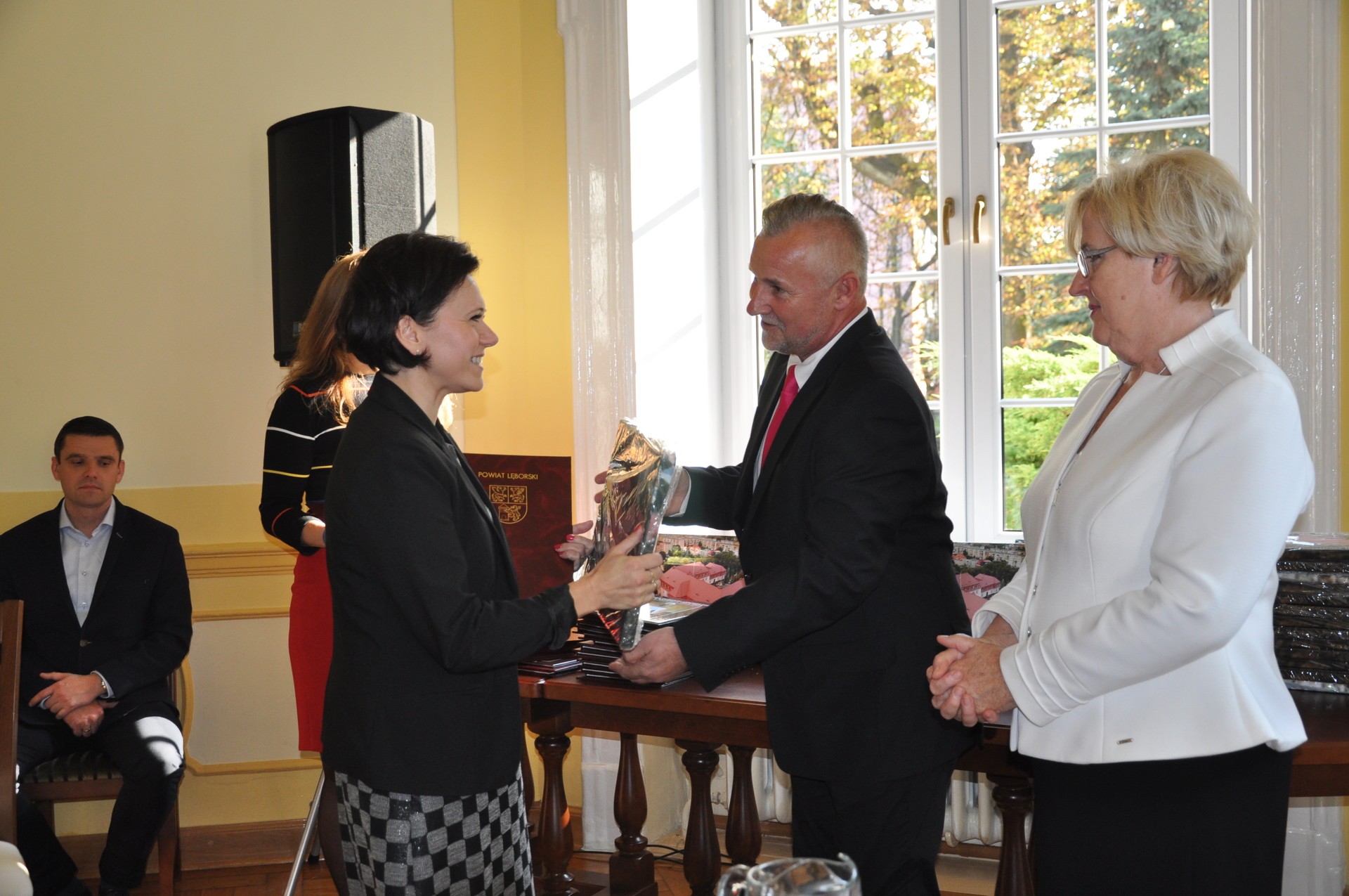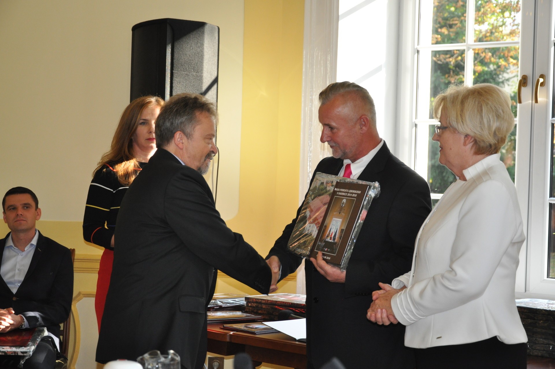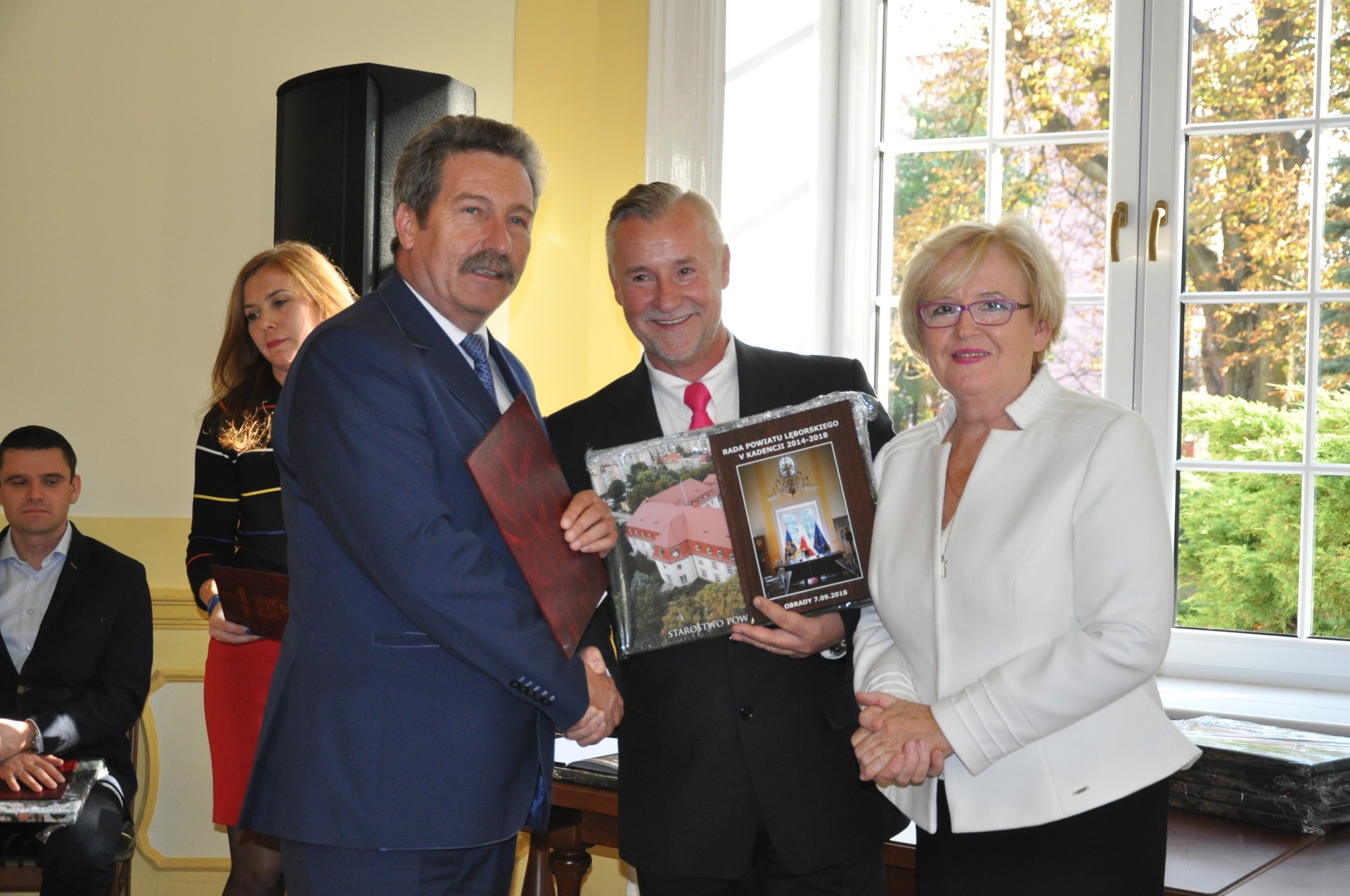 Radni oraz osoby kierujące wydziałami i referatami w Starostwie Powiatowym, a także kierownicy jednostek, dla których organem prowadzącym jest Powiat Lęborski otrzymali okolicznościowe podziękowania wraz z pamiątkowym obrazie. Radnym wręczone zostały dodatkowo fotoksiążki, obrazujące najważniejsze dokonania Powiatu w obecnej kadencji.