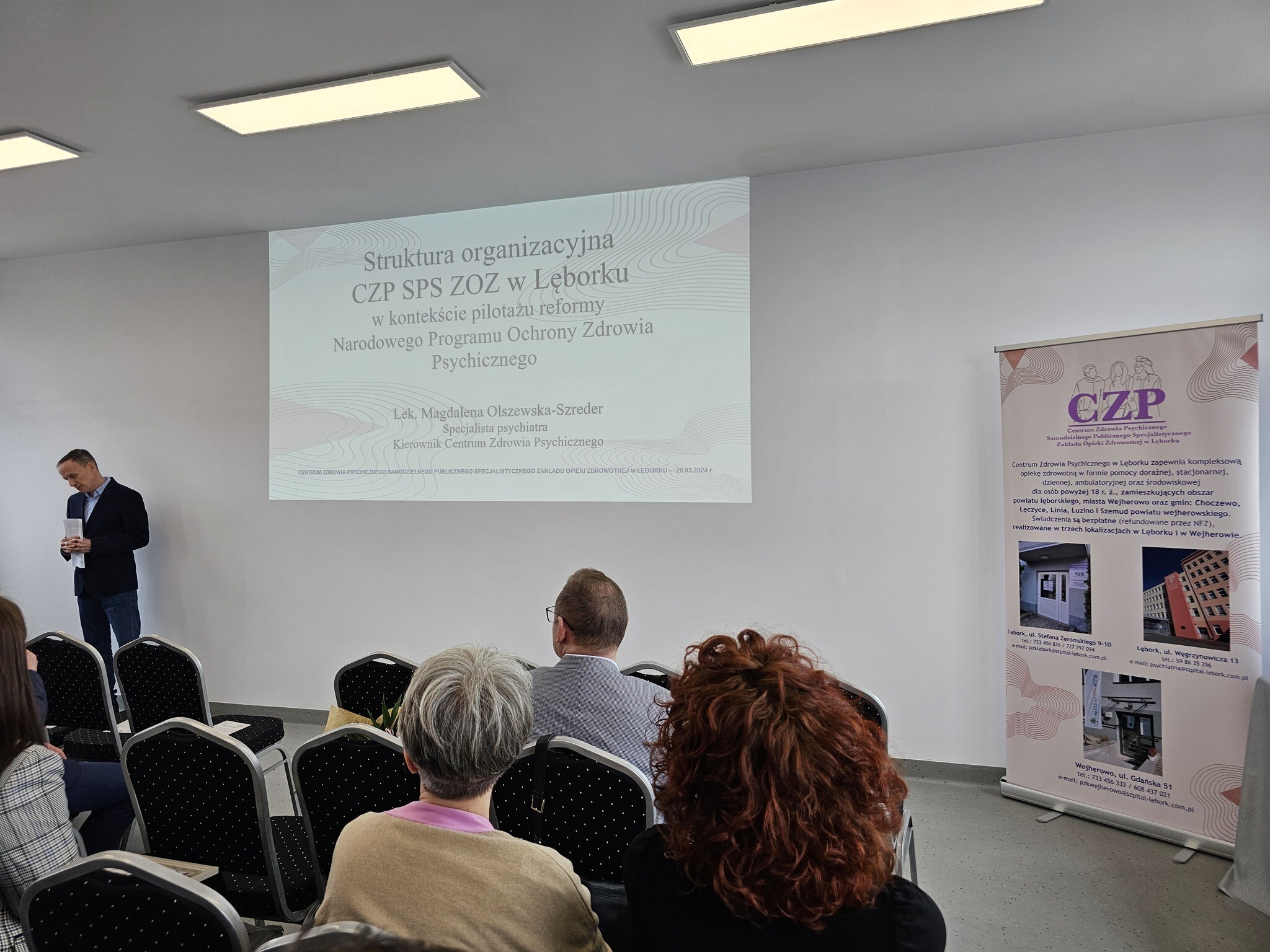 Spotkanie było okazją do zaprezentowania działalności Centrum w tej nowej lokalizacji. dr Magdalena Olszewska-Szreder wygłosiła wykład pt. „Struktura organizacyjna CZP SPS ZOZ w Lęborku w kontekście pilotażu reformy Narodowego Programu Ochrony Zdrowia Psychicznego”, następnie prof. dr hab. Mariola Bidzan - specjalista w dziedzinie psychologii klinicznej, zaprezentowała prelekcję pt. „Mądre pomaganie. Wielowymiarowe podejście do procesu pomagania pacjentom nie tylko w Centrach Zdrowia Psychicznego”, a na zakończenie Zuzanna Urbanik - lekarz w trakcie specjalizacji w dziedzinie psychiatrii, zreferowała trzy przypadki pacjentów poddanych leczeniu w CZP w kontekście koordynacji opieki psychiatrycznej w Centrum Zdrowia Psychicznego jako jednego z kluczowych zagadnień reformy, prezentując wykład pn. „Psychiatryczna Opieka Koordynowana – studium przypadku klinicznego”.