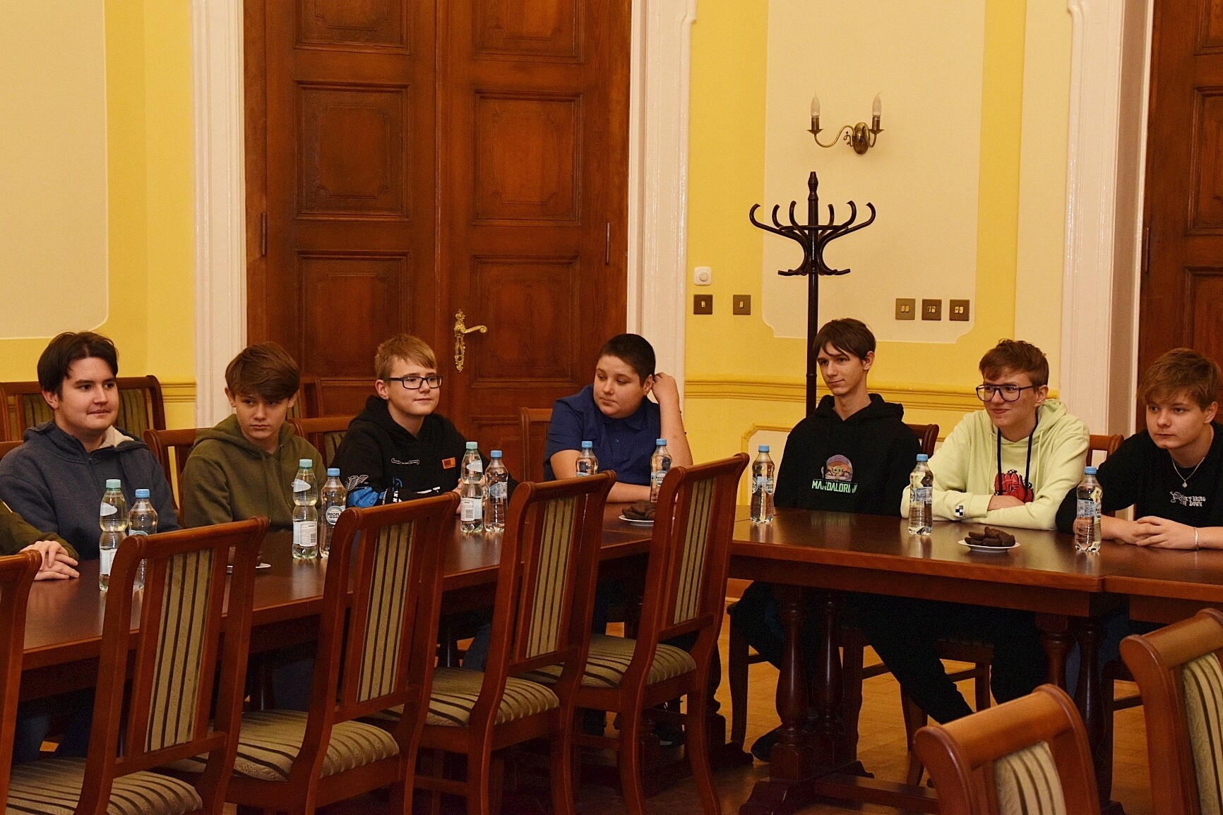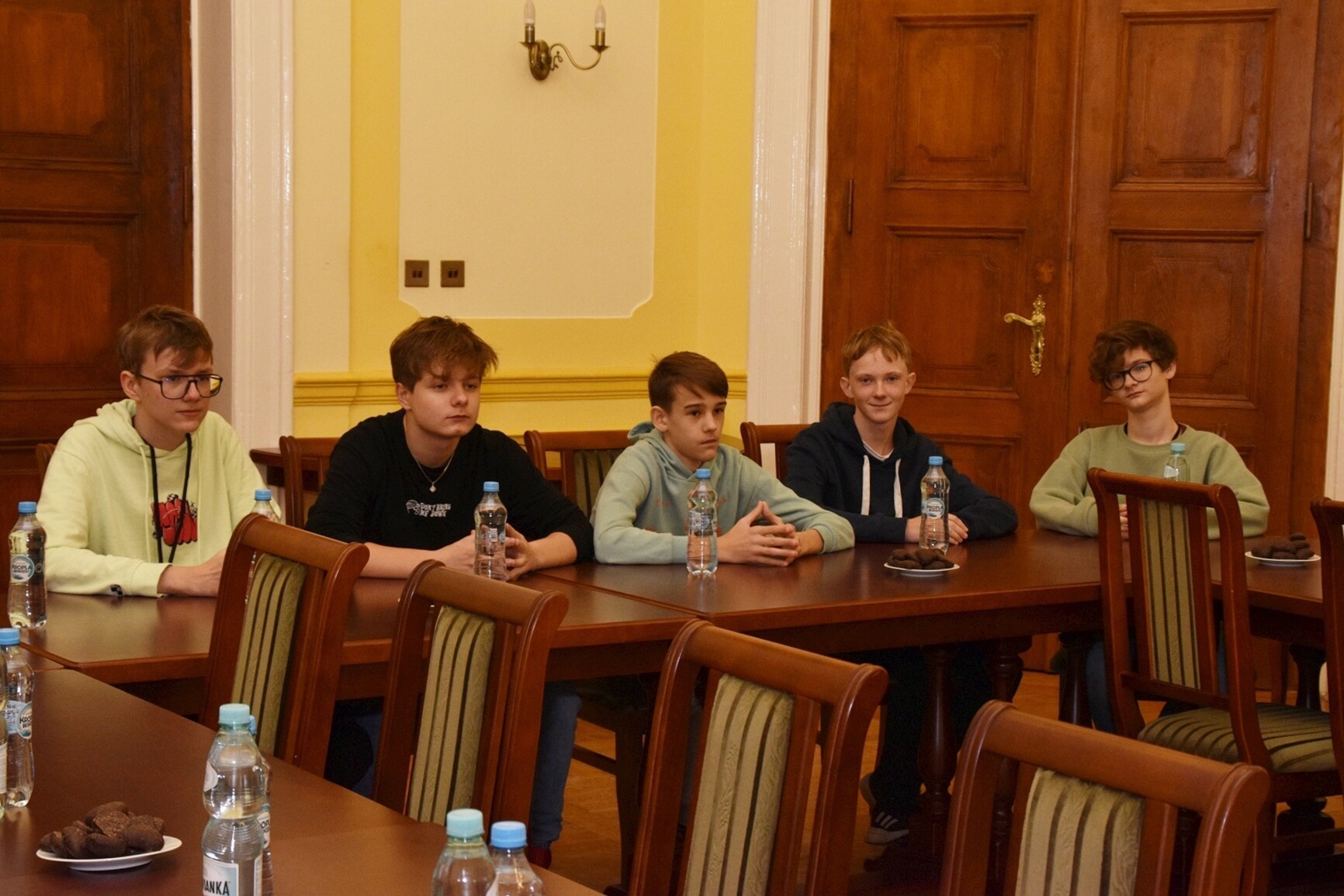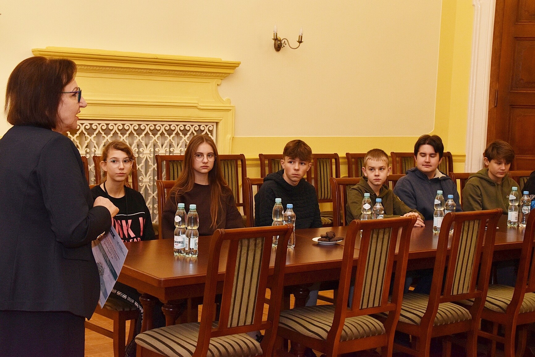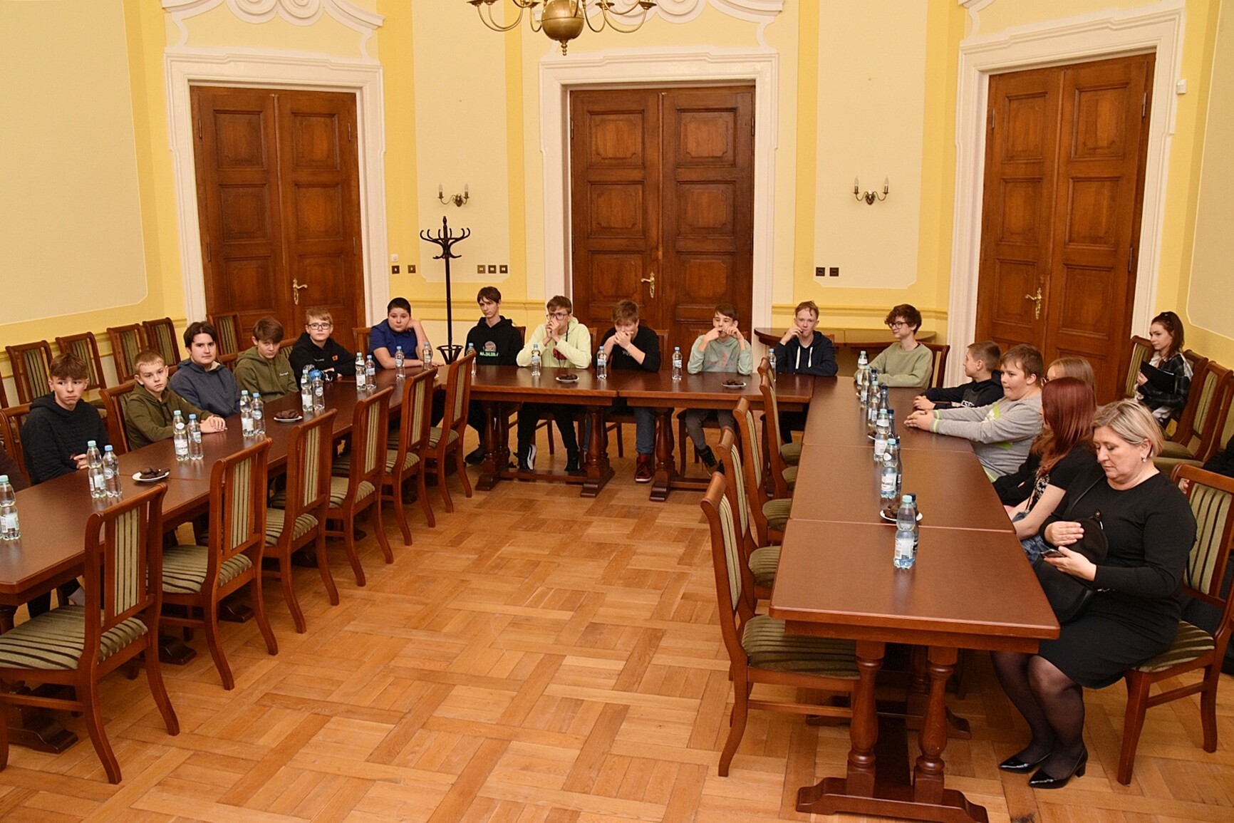 Starosta Alicja Zajączkowska opowiedziała młodzieży o zadaniach realizowanych przez urząd, zasadach sprawowania mandatu przez radnych, a także o predyspozycjach i przygotowaniu sprzyjających sprawowaniu w przyszłości funkcji publicznych. – Być może ktoś z was kiedyś zasiądzie za tym stołem w charakterze radnej, czy radnego Powiatu Lęborskiego – mówiła starosta, zachęcając młodzież do „zmierzenia się” z mównicą w Sali obrad Rady Powiatu i wygłoszenia kilku słów.