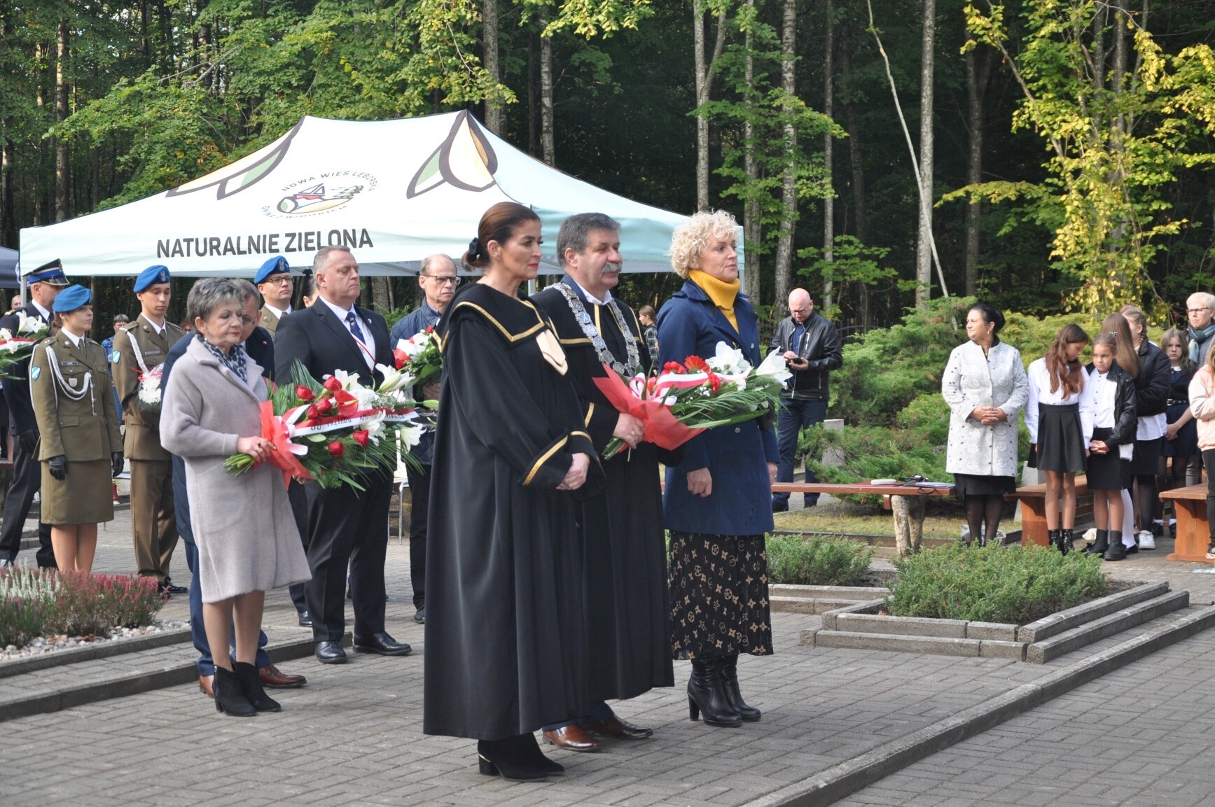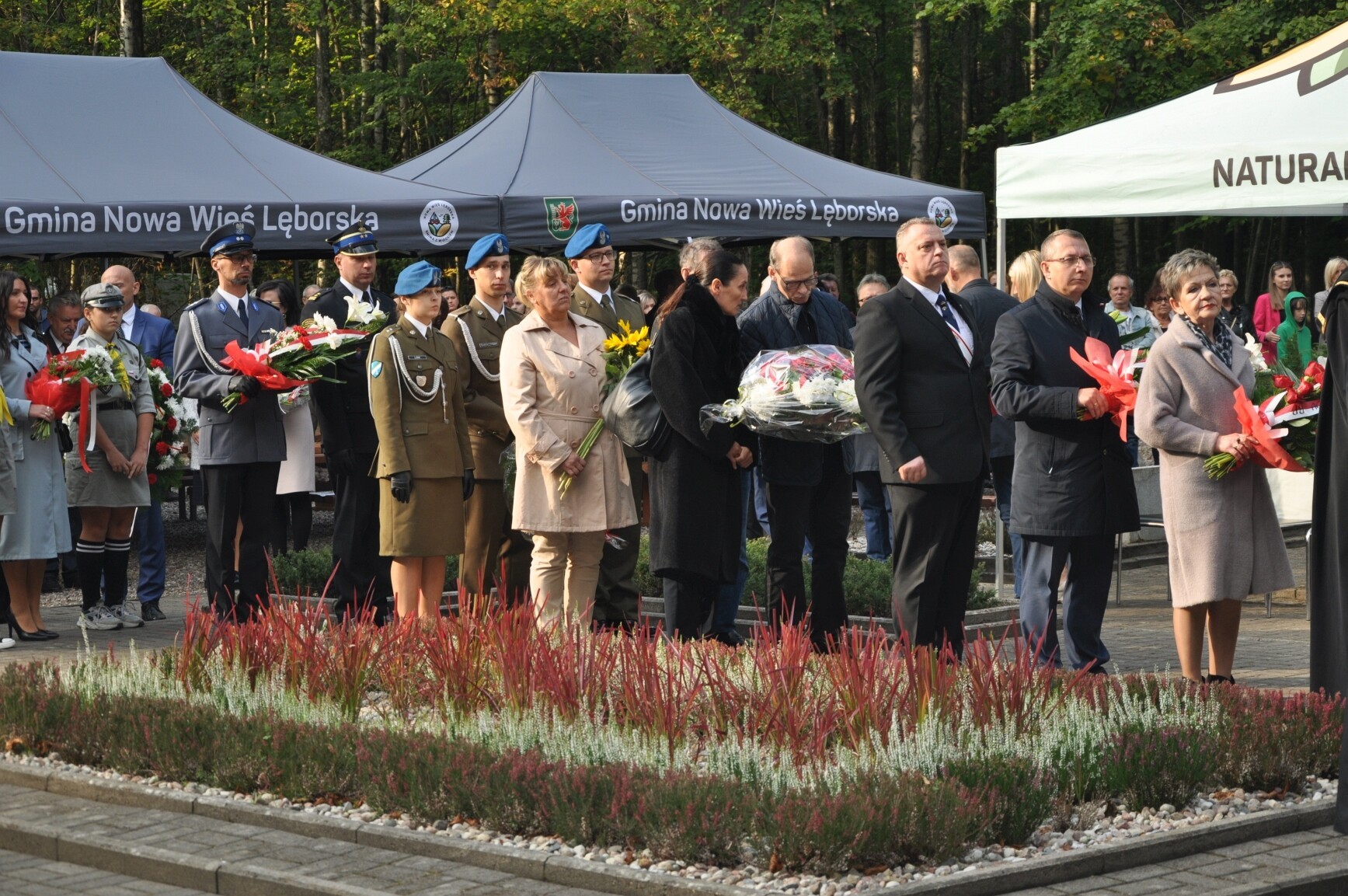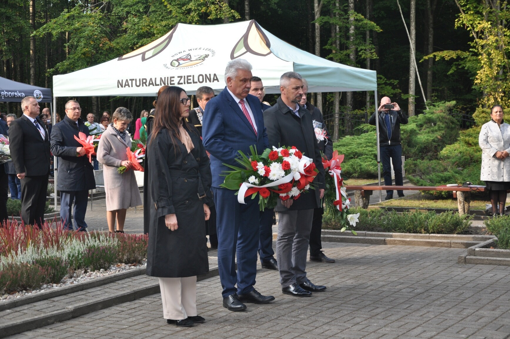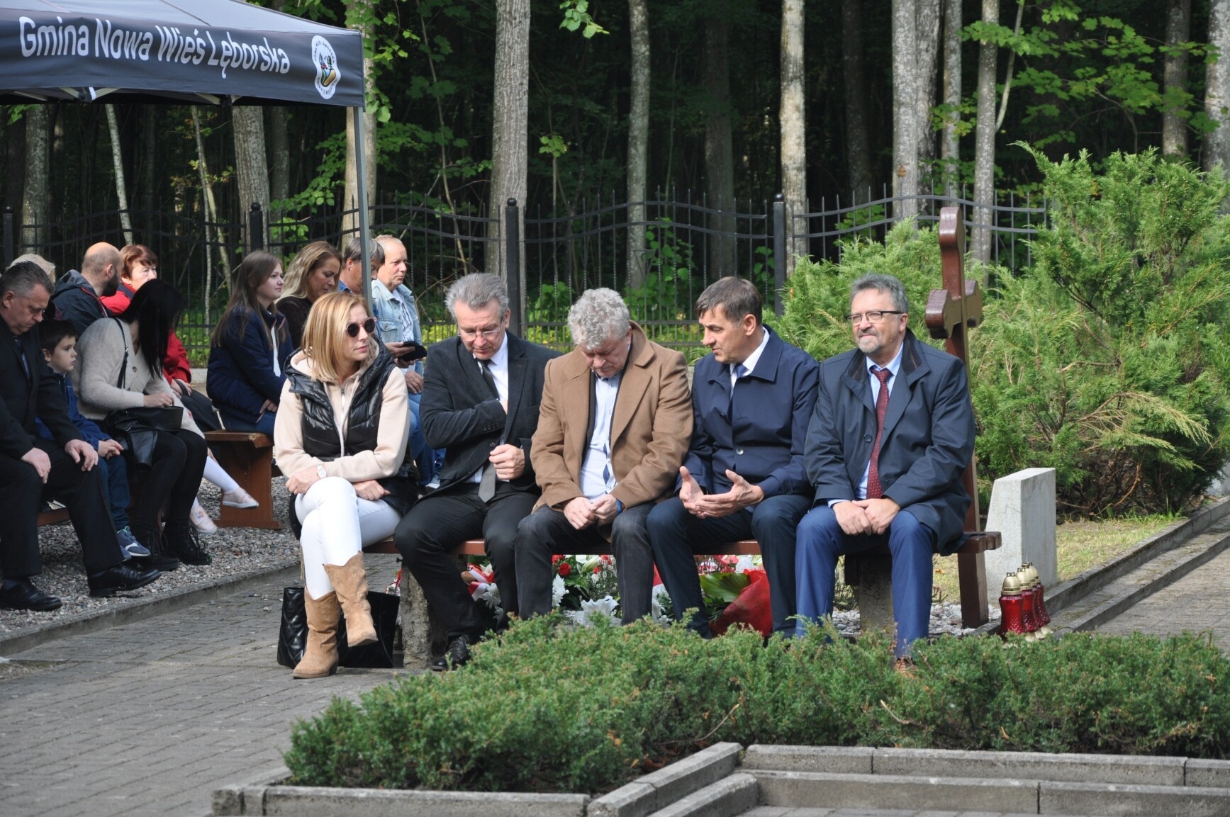 W tegorocznych uroczystościach rocznicowych uczestniczyli m.in.: senator RP Kazimierz Kleina, radne pomorskiego Sejmiku Wojewódzkiego Mirosława Kaczyńska i Iwona Mielewczyk, Wicestarosta Lęborski Edmund Głombiewski, burmistrz Lęborka Witold Namyślak, zastępca burmistrza Łeby Krzysztof Król, wójt gminy Nowa Wieś Lęborska Zdzisław Chojnacki i jego zastępca Monika Włusek, wójt gminy Cewice Jerzy Bańka, wójt gminy Wicko Dariusz Waleśkiewicz, przewodniczący Rady Powiatu Lęborskiego Mirosław Tandek, wiceprzewodniczący Rady Powiatu Witold Krużycki, członek Zarządu Powiatu Ryszard Wenta, przewodniczący Rady Gminy Cewice Wiesław Keller i wiceprzewodnicząca Rady Gminy Cewice Marzena Reclaf, przedstawiciele służb mundurowych, dyrektorzy szkół podstawowych z Garczegorza, Nowej Wsi Lęborskiej, Redkowic, Leśnic, Łebienia oraz SP5 Lębork. Posła na Sejm RP Piotra Müllera reprezentowała Mirosława Kaczyńska.