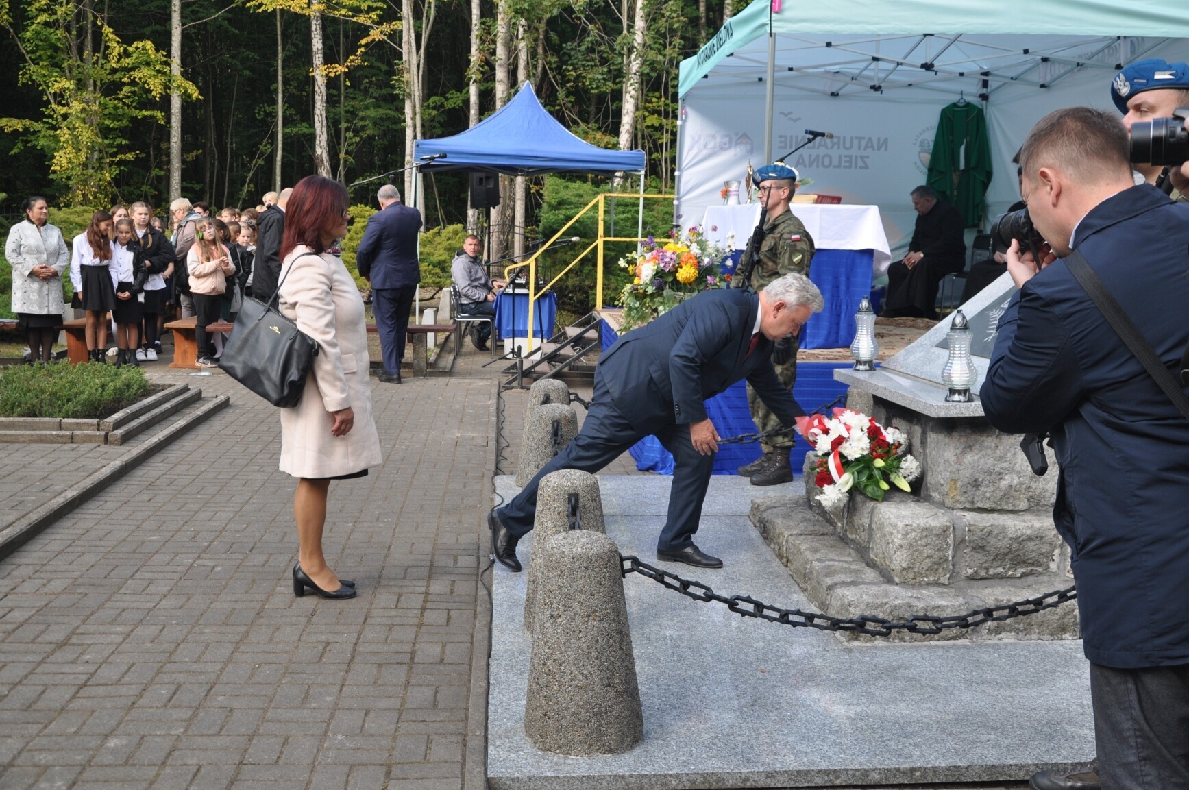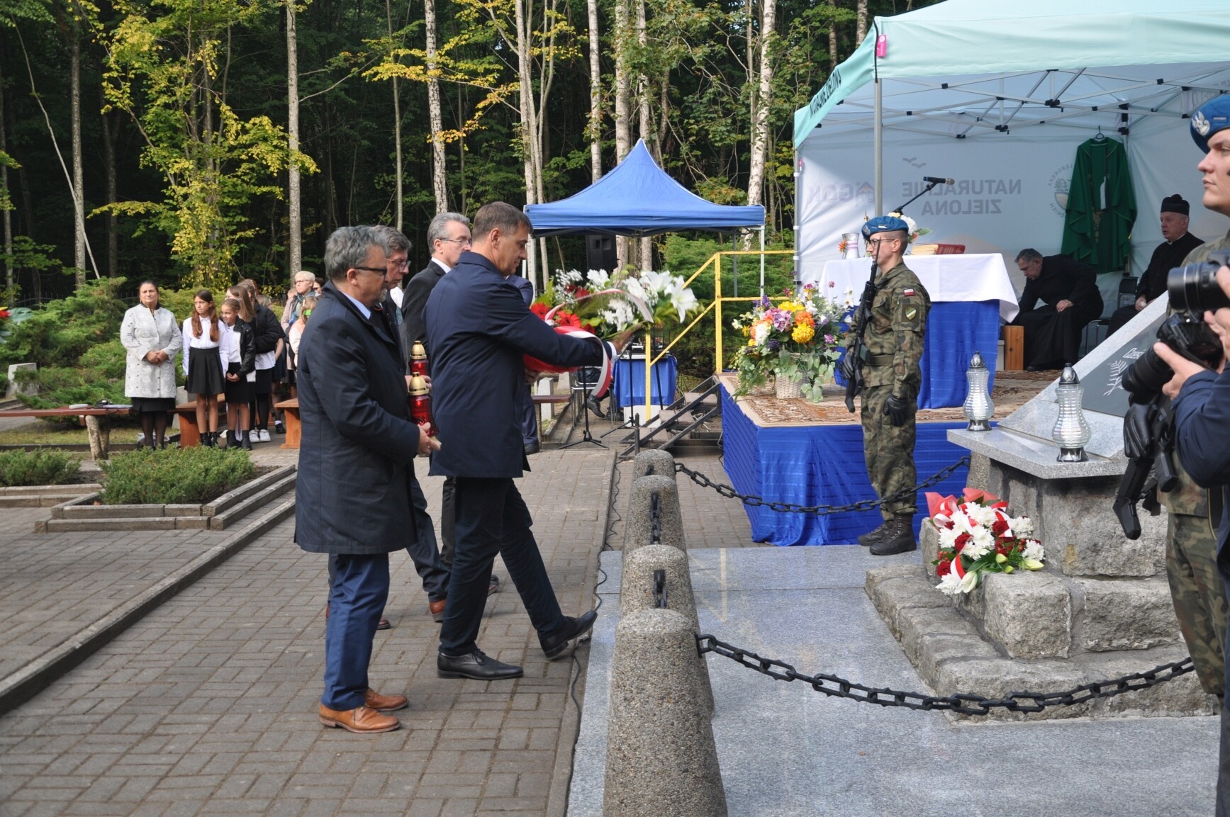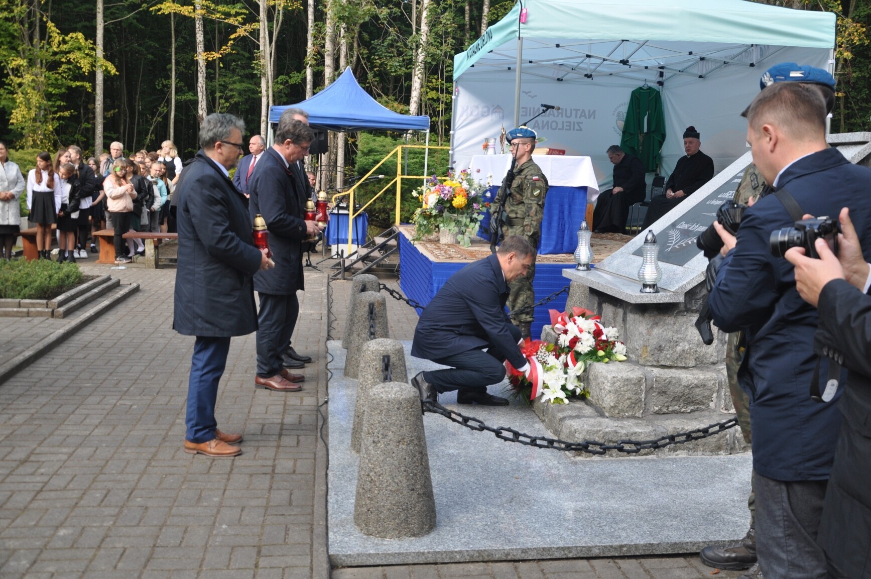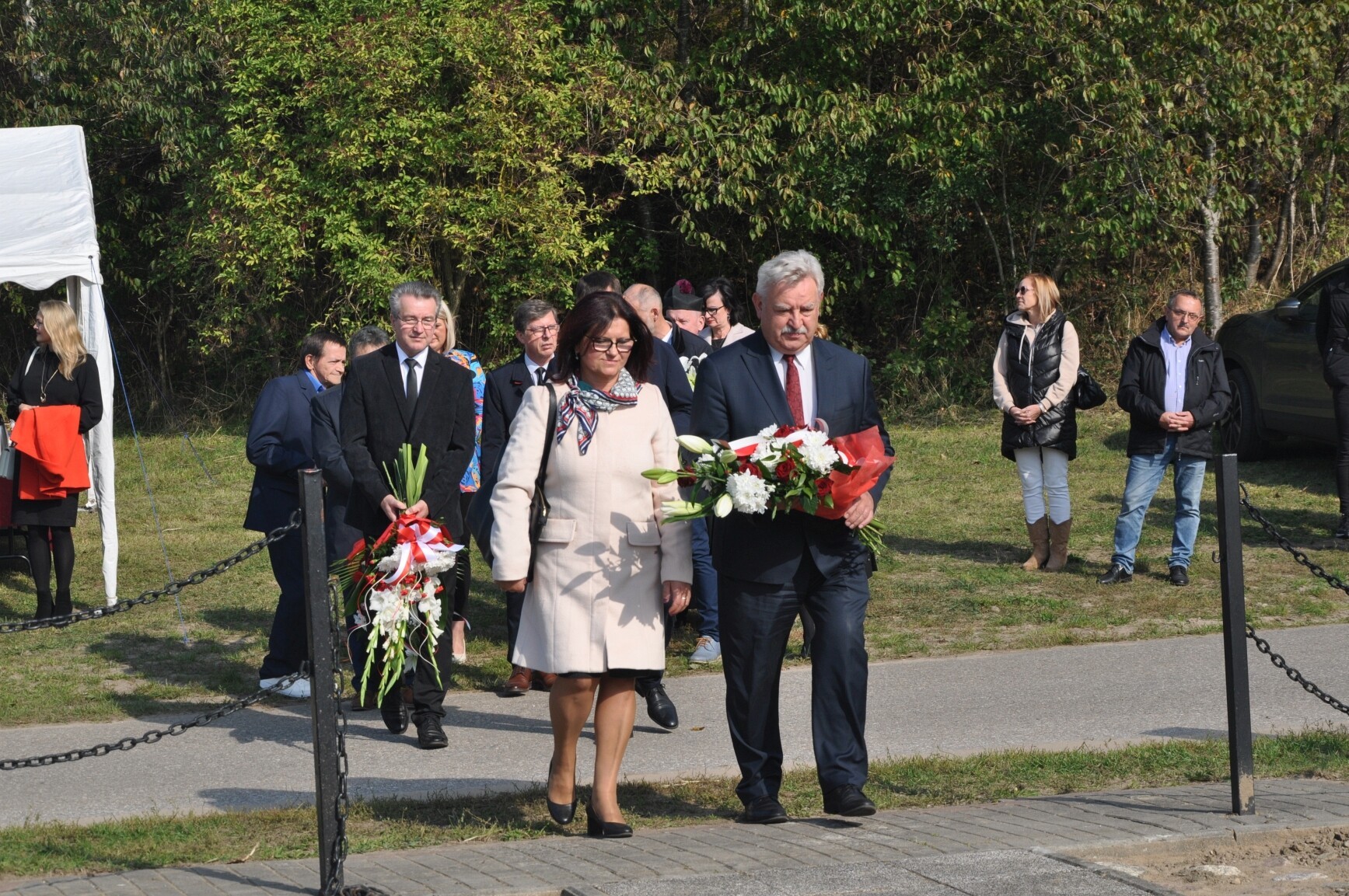 W tegorocznych uroczystościach rocznicowych uczestniczyli m.in.: senator RP Kazimierz Kleina, radne pomorskiego Sejmiku Wojewódzkiego Mirosława Kaczyńska i Iwona Mielewczyk, Wicestarosta Lęborski Edmund Głombiewski, burmistrz Lęborka Witold Namyślak, zastępca burmistrza Łeby Krzysztof Król, wójt gminy Nowa Wieś Lęborska Zdzisław Chojnacki i jego zastępca Monika Włusek, wójt gminy Cewice Jerzy Bańka, wójt gminy Wicko Dariusz Waleśkiewicz, przewodniczący Rady Powiatu Lęborskiego Mirosław Tandek, wiceprzewodniczący Rady Powiatu Witold Krużycki, członek Zarządu Powiatu Ryszard Wenta, przewodniczący Rady Gminy Cewice Wiesław Keller i wiceprzewodnicząca Rady Gminy Cewice Marzena Reclaf, przedstawiciele służb mundurowych, dyrektorzy szkół podstawowych z Garczegorza, Nowej Wsi Lęborskiej, Redkowic, Leśnic, Łebienia oraz SP5 Lębork. Posła na Sejm RP Piotra Müllera reprezentowała Mirosława Kaczyńska.
