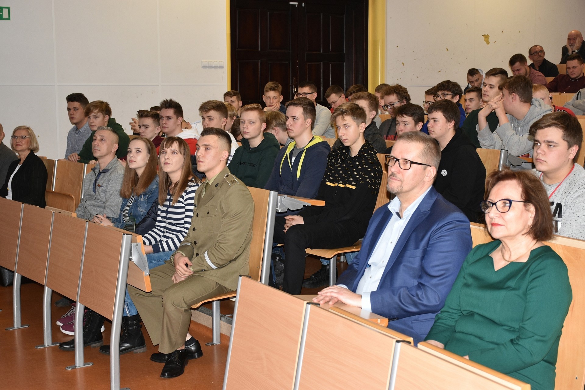 - Dziękuję za przygotowanie tego wszystkiego dla mnie. To były cztery lata ciężkiej pracy, sumienność, zaangażowanie. Dziękuję, że to wszystko zostało docenione. To wszystko zostało ukształtowane przez sport streetworkout. Zajmuje się tym od 2,5 roku. Teraz studiuję na Wojskowej Akademii Technicznej. Ciężka droga na początku, zwłaszcza „unitarka” - 6 tygodni morderczej walki. Teraz czas sesji. Póki co mam wszystko zaliczone, czekam na wyniki czterech ostatnich egzaminów. Jeśli będą zaliczone, to będzie pierwszy awans na starszego szeregowego. Po 5 latach jest awans na podporucznika, czyli I stopień oficerski. Chciałbym powiedzieć wszystkim uczniom, żeby postawili sobie cel, a potem z zaangażowaniem i ciężką pracą dążyli do niego. Wtedy coś osiągną – powiedział Tomasz Helt na zakończenie uroczystości. Podczas wręczenia nagród i tytułów laureatowi towarzyszyli rodzice i siostra.