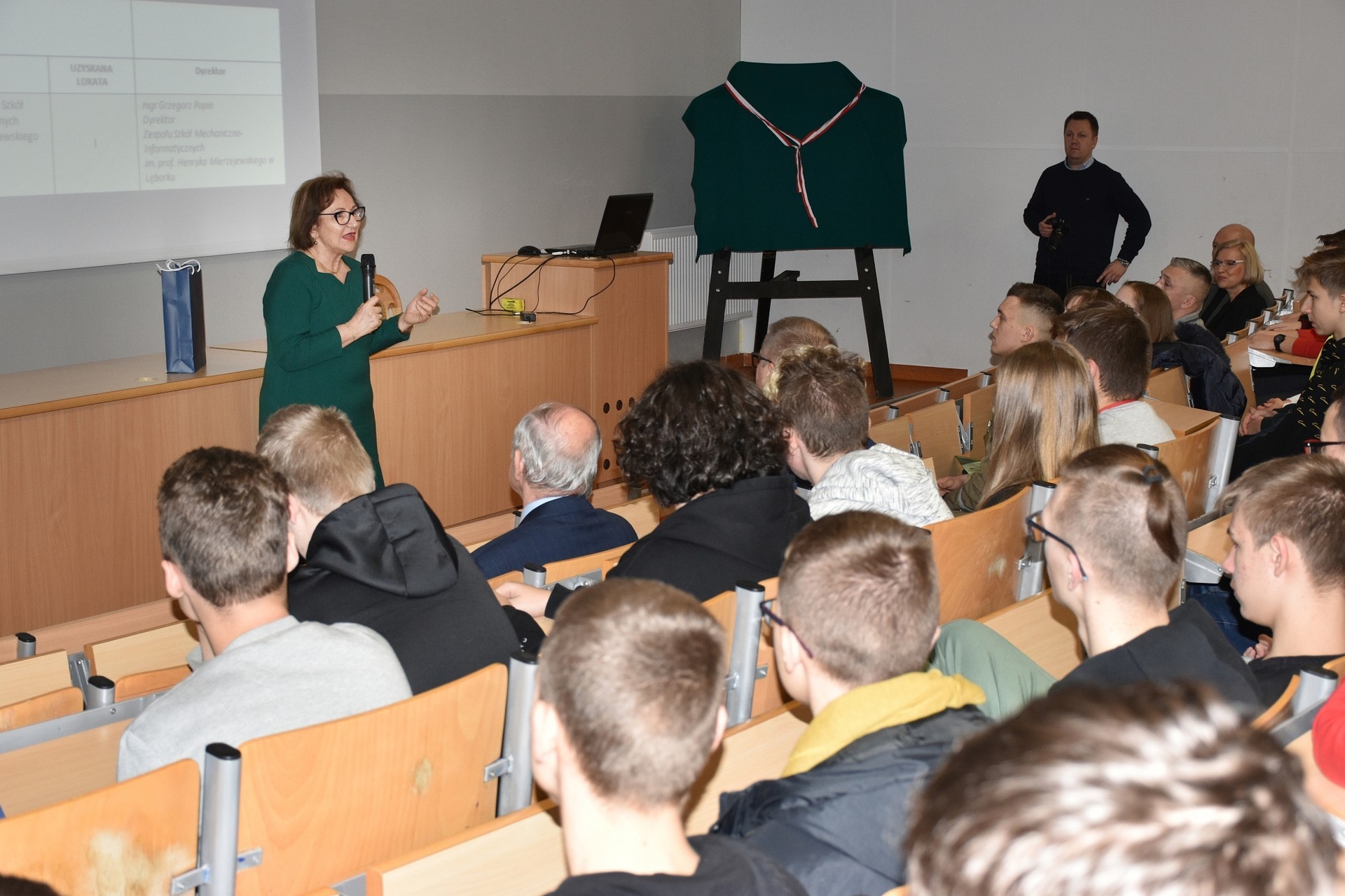 Listy gratulacyjne otrzymali również dyr. Grzegorz Popin i Maria Kurowska, nauczycielka zawodowych przedmiotów mechanicznych, jako współautorka sukcesów bohatera uroczystości.