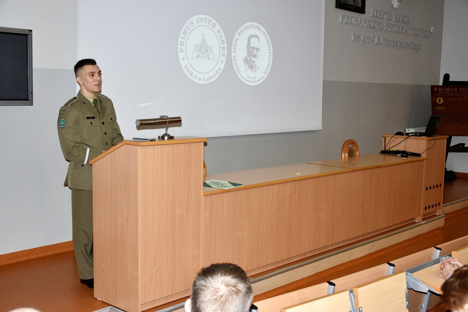 Zebranych w sali audiowizualnej gości przywitał dyrektor ZSM-I, Grzegorz Popin, rozpoczynając uroczystość. Następnie przedstawiona została prezentacja osiągnięć laureata. Średnia ocen z 4 lat nauki 5,38 (w IV kl. – 5,50), wzorowe zachowanie i 100% frekwencja w całym 4-letnim cyklu nauczania – to osiągnięcia stawiające Tomasza Helta za wzór dla kolejnych roczników uczniów tej szkoły. Ponadto dwukrotnie otrzymał stypendium Prezesa Rady Ministrów, Nagrodę Starosty Lęborskiego i Burmistrza Miasta Lęborka. Zdobywał wyróżnienia i nagrody w licznych konkursach, m.in. w organizowanym przez Powiatowy Urząd Pracy konkursie „Biznesplan absolwenta”, wojewódzkim etapie konkursu – Turnieju Wiedzy Technicznej – „Rysunek Techniczny”, licznych konkursach zawodowych, w końcu 8.12.2019 r. otrzymał tytuł „Technik Mechanik – Absolwent 2019”, zajmując pierwsze miejsce w Polsce w konkursie Zarządu Głównego Stowarzyszenia Inżynierów i Techników Mechaników Polskich. Puchar i dyplom wręczył laureatowi Lech Wojtecki, prezes słupskiego Oddziału Stowarzyszenia Inżynierów i Techników Mechaników Polskich. - Jestem zaszokowany tymi osiągnięciami. To jest ponad normalność, bo przez tyle lat, jak obserwuje młodzież w szkołach, to nikt nie osiągnął jeszcze takich wyników. Wyniki zostały docenione także przez Zarząd Główny i przez Główną Komisję Konkursową – mówił Lech Wojtecki, wręczając puchar – Pragnę pogratulować szkole, gronu pedagogicznemu i panu dyrektorowi wspaniałych osiągnięć w edukacji, bo sukces zależy od nauczycieli i uczniów, ale trzeba umieć sprzedać wiedzę. Jeśli się umie, to takie są efekty.