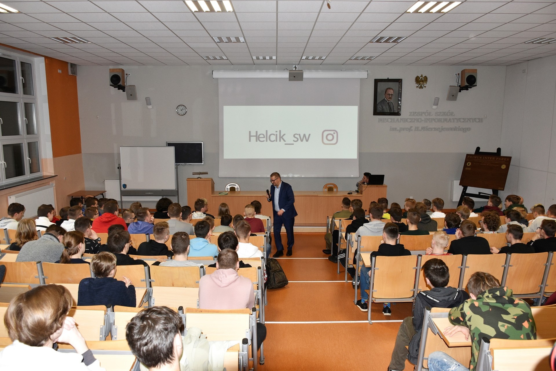 Wyróżnienia dla Tomasza Helta stały się okazją do odsłonięcia tablicy „Primus Inter Pares”. Jak powiedział dyr. Grzegorz Popin, co roku na tej tablicy będą się pojawiały nazwiska wybitnych absolwentów ZSM-I. Tytuł "Primus Inter Pares" („Pierwszy wśród równych sobie”) jest najwyższym wyróżnieniem dla absolwenta Technikum oraz Branżowej Szkoły I stopnia ZSM-I. Tytuł przyznaje Rada Pedagogiczna. Promuje on wybitne osiągnięcia w konkursach przedmiotowych, artystycznych i sportowych, naukę, pracę w samorządzie uczniowskim, wolontariat, działalność charytatywną oraz postawę etyczno-moralną. - Myślę, że rozpoczęcie tej nowej tradycji w naszej szkole będzie okazją do prezentowania naszej społeczności uczniowskiej przykładów godnych naśladowania – dodał dyr. G. Popin, odsłaniając tablicę wspólnie z Tomaszem Heltem.
