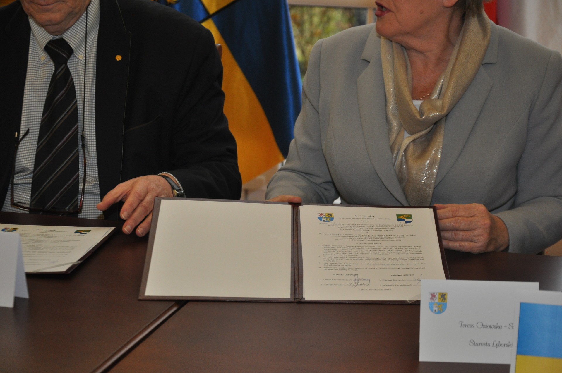 W dniu 16 listopada 2016 r. przedstawiciele władz Powiatu Lęborskiego w osobach: Teresa Ossowska - Szara Starosta Lęborski i Elżbieta Godderis Wicestarosta Lęborski wraz z przedstawicielami Powiatu Giżyckiego tj. Wacławem Strażewiczem Starostą Giżyckim i Mirosławem Drzażdżewskim Wicestarostą Giżyckim, podpisali list intencyjny w sprawie podjęcia współpracy partnerskiej, której głównym celem jest nawiązanie partnerskich stosunków, poprzez dążenie do określenia i osiągnięcia wspólnych celów na płaszczyźnie turystycznej, gospodarczej, oświatowej i kulturalnej, ochrony zdrowia, ochrony środowiska, kultury fizycznej i sportu, opierając się na wymianie doświadczeń i informacji pomiędzy samorządami obu powiatów.