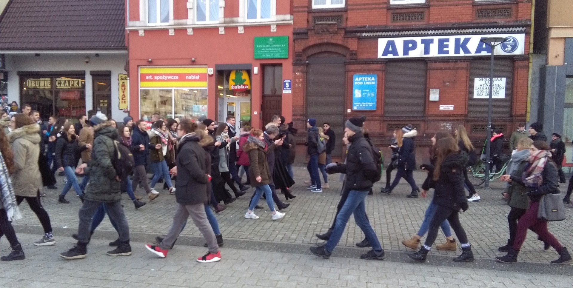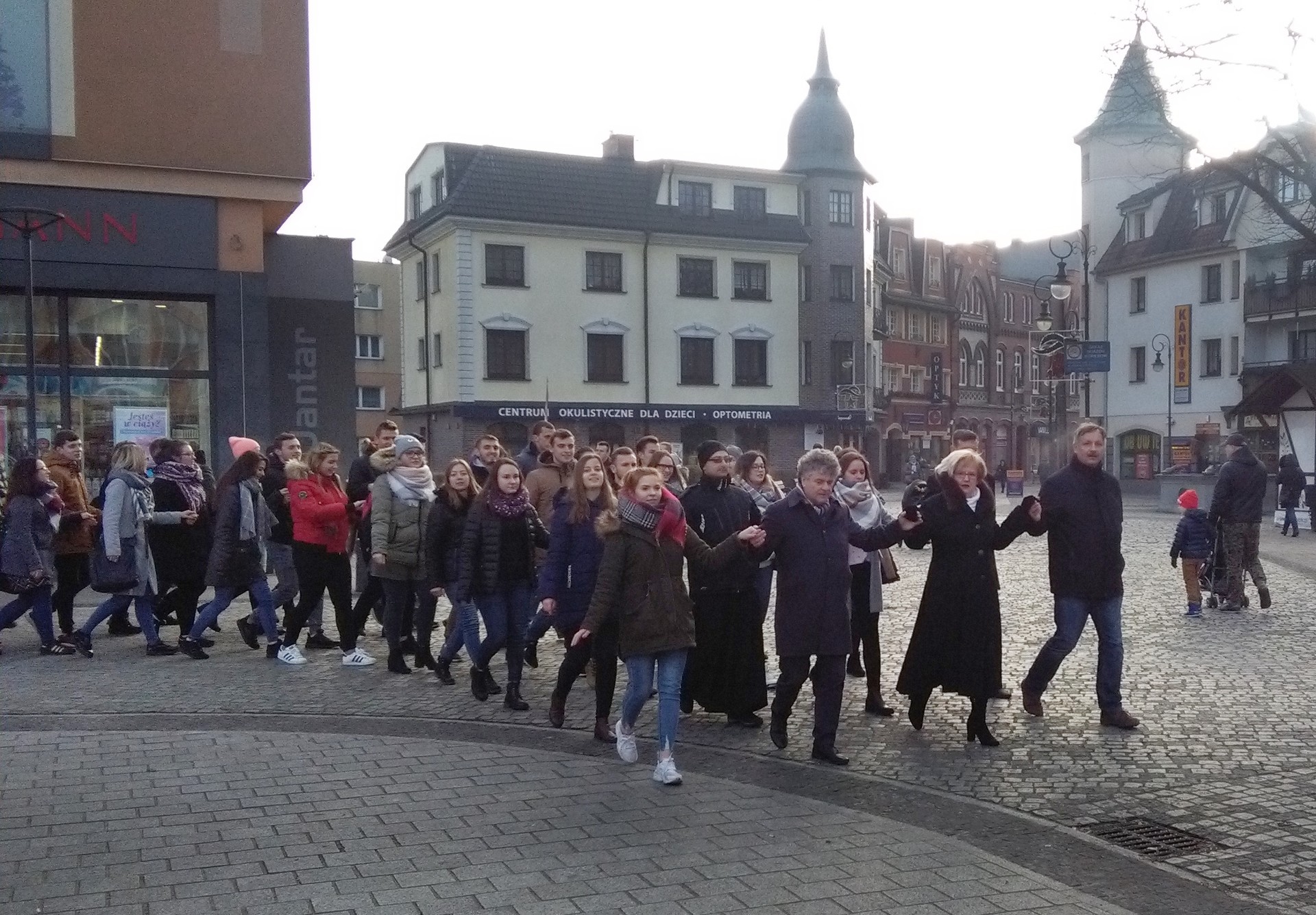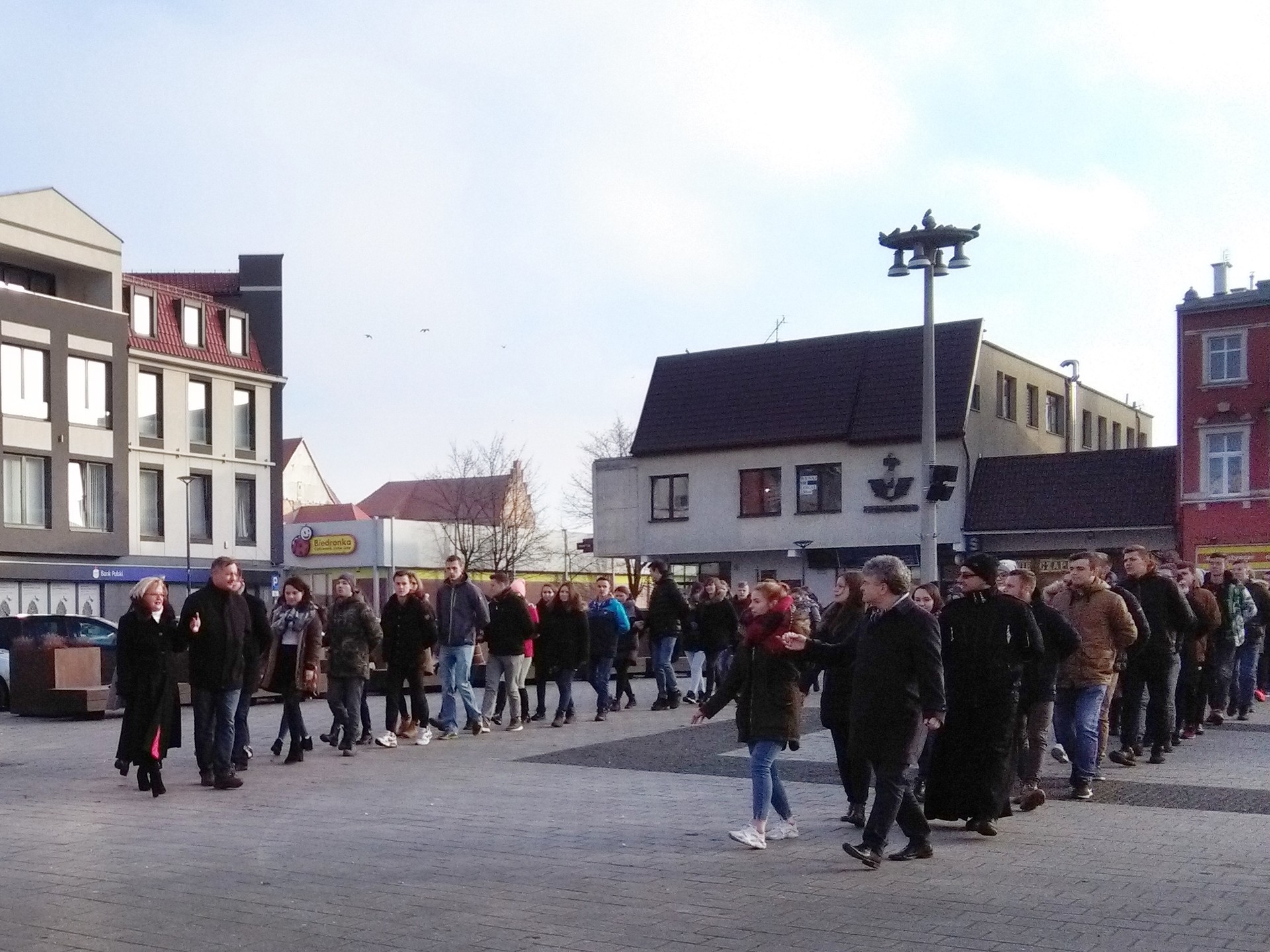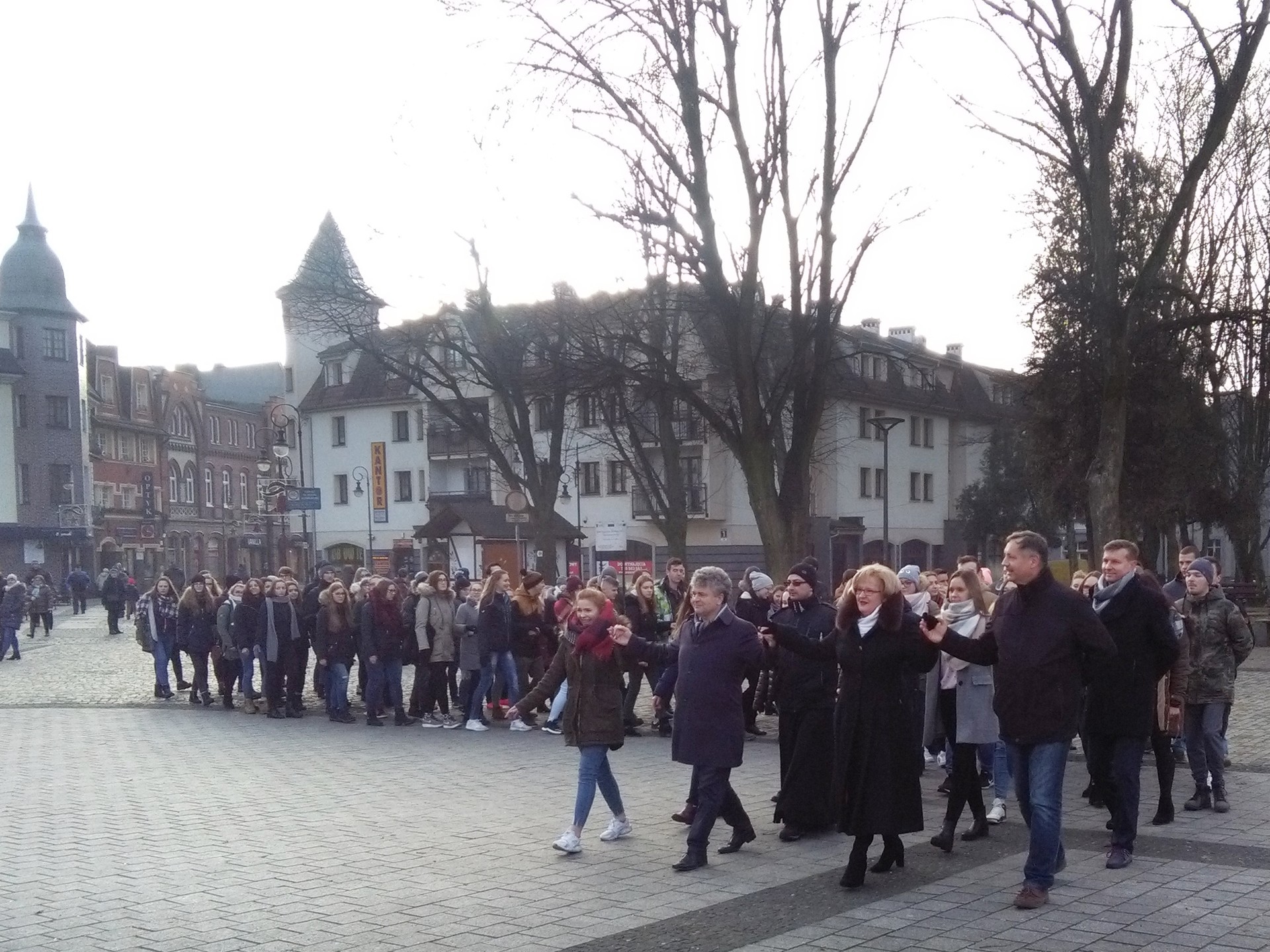 Blisko 100-osobowa grupa młodzieży majestatycznym krokiem poloneza przepłynęła przez Plac Pokoju w Lęborku. Na czele grupy pojawili się powiatowi i miejscy włodarze: Teresa Ossowska – Szara, starosta lęborski, burmistrz Witold Namyślak i wiceburmistrz Marian Kurzydło.