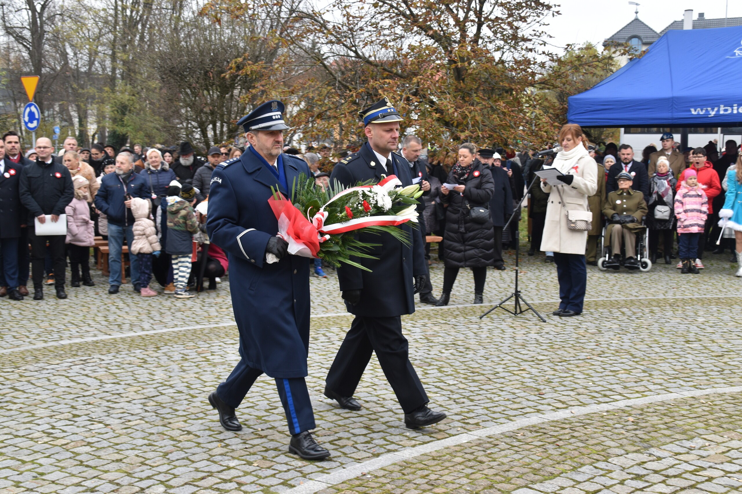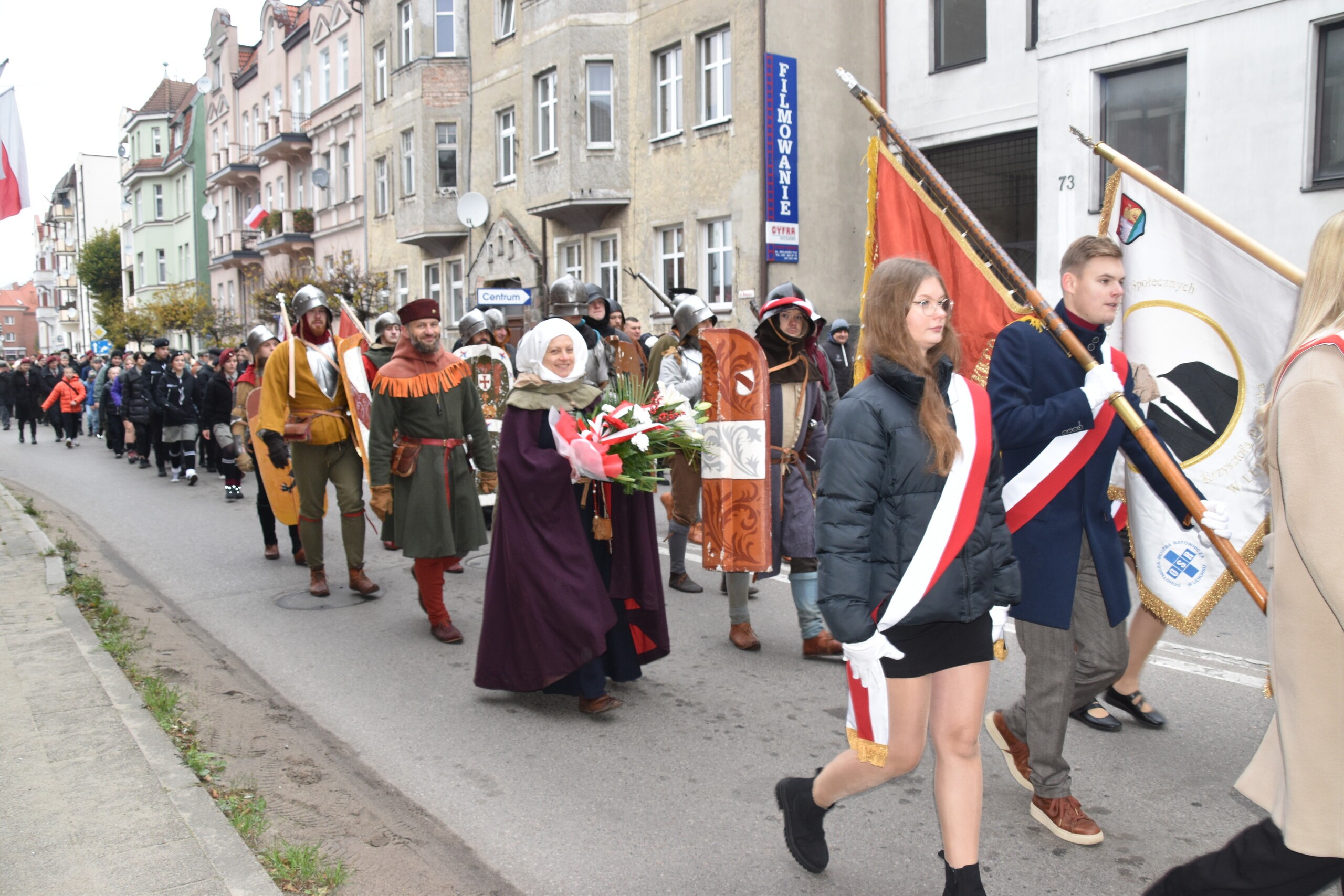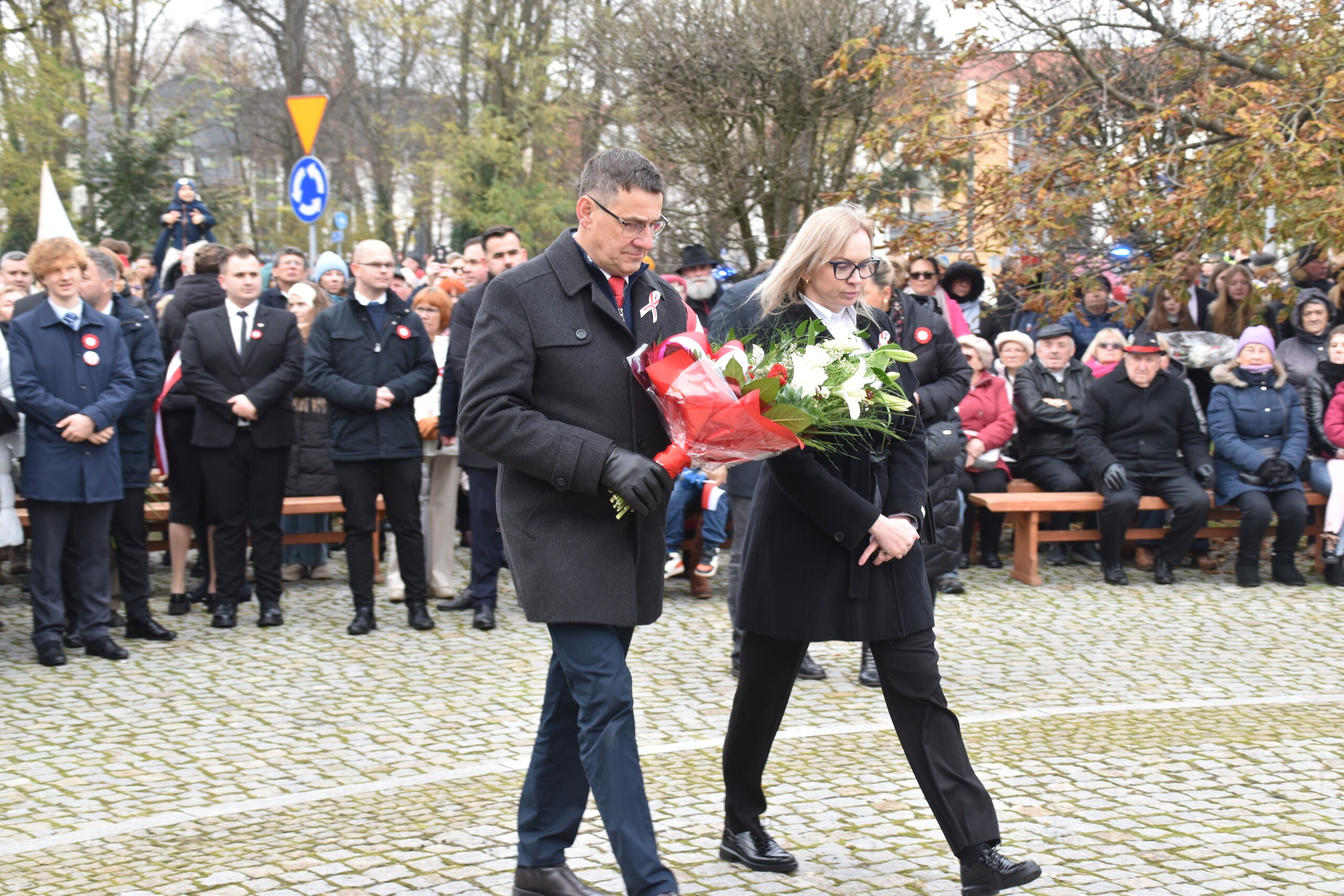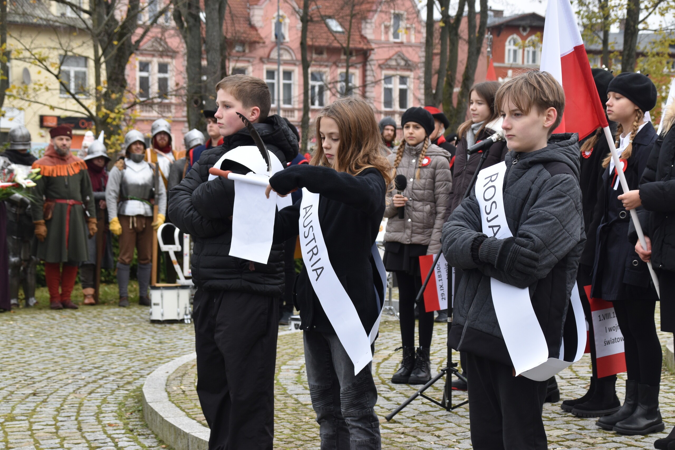 Po mszy niepodległościowej w Sanktuarium św. Jakuba Ap. uczestnicy w pochodzie przeszli pod Obelisk Niepodległości, gdzie obyły się główne miejskie uroczystości. W wystąpieniu burmistrza Jarosława Litwina, oprócz wątków dotyczących historii Polski znalazło się przesłanie, które powinno towarzyszyć w budowaniu przyszłości naszego kraju: - Musimy budować siłę naszego państwa, tak jak chcieli tego ojcowie naszej niepodległości. Możemy spierać się, dyskutować, ale niech w tym wszystkim Polska niepodległa i suwerenna zawsze będzie najważniejsza. To kwestia naszej zbiorowej odpowiedzialności.