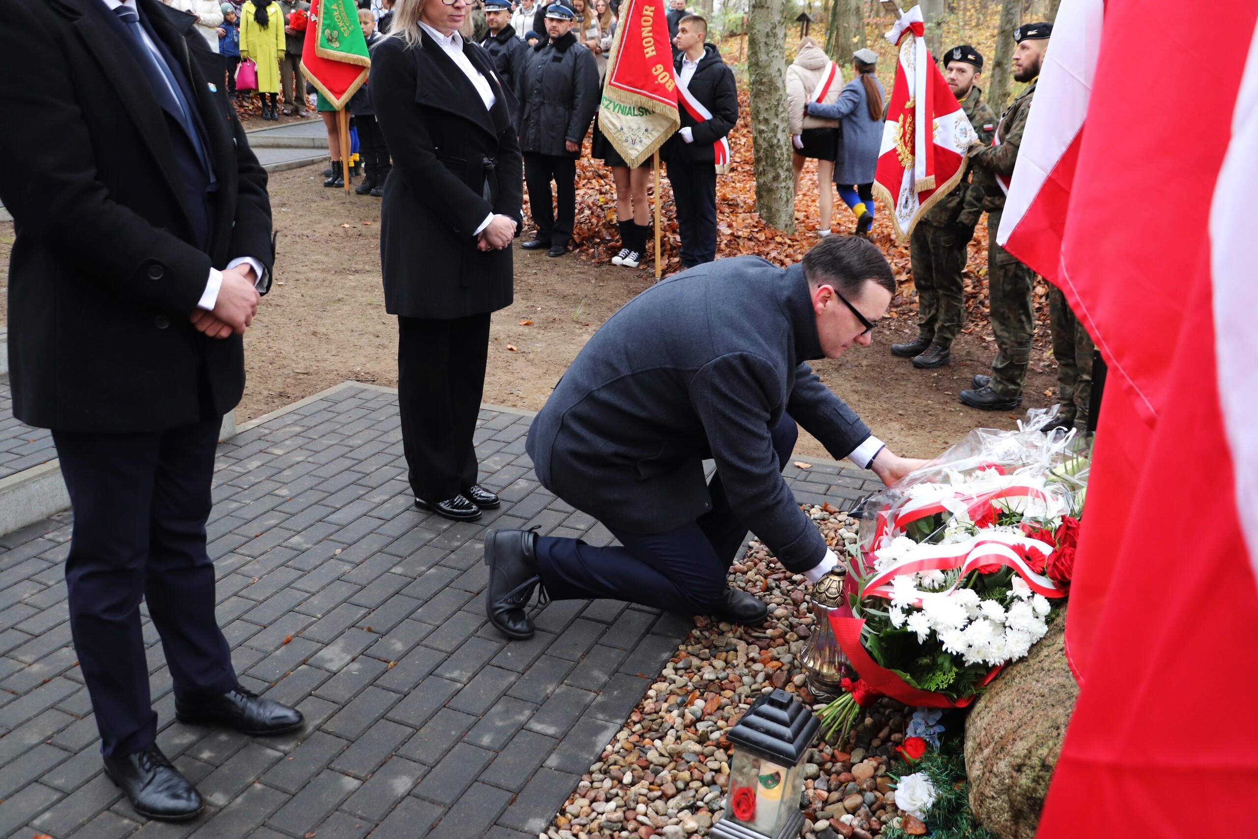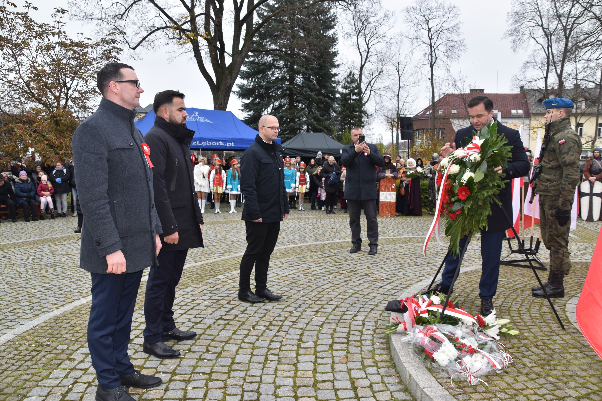 Wiązanki kwiatów złożyli przedstawiciele samorządów wszystkich szczebli, reprezentant Ministry Edukacji, przedstawiciele służb mundurowych, harcerzy, oświaty, organizacji społecznych i politycznych oraz mieszkańcy Lęborka.