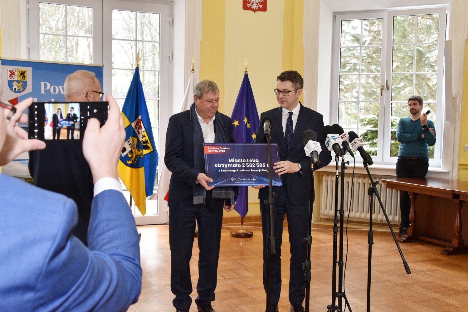 Zadowolenia z funduszy, które zasilą możliwości inwestycyjne na terenie powiatu nie krył wicestarosta Edmund Głombiewski: - Aż 10 zaplanowanych inwestycji zyskało rządowe wsparcie – mówił wicestarosta E. Głombiewski – 7 mln 659 tys. 719 zł to pokaźny zastrzyk środków, dzięki którym będzie można zaspokoić potrzeby lokalnych społeczności tak w samym powiecie, jak i w gminach. Zyska nie tylko Łeba, Lębork, Wicko czy Cewice, które dzisiaj odebrały promesy wsparcia, ale ogół mieszkańców powiatu i pokaźna liczba gości, którzy odwiedzają nasze tereny zarówno w sezonie letnim, jak i poza nim. Uporządkowana, dobrej jakości infrastruktura drogowa to realny wzrost potencjału powiatu, który dzięki dobrym połączeniom drogowym staje się bardziej atrakcyjny dla potencjalnych inwestorów. Tak więc jest to zwiększenie szansy na rozwój gospodarczy, ale także to, co zawsze leży nam na sercu – wymierny wzrost bezpieczeństwa wszystkich użytkowników dróg. Cieszę się, że nasze lokalne potrzeby zyskały przychylność premiera i rządu, co jest w dużej mierze pokłosiem bardzo dobrej współpracy z posłem Piotrem Müllerem, któremu wielokrotnie towarzyszyłem podczas spotkań z mieszkańcami w terenie. To również potwierdzenie, że poprzez wspólną identyfikację problemów i potrzeb można zdziałać wiele, co potwierdzają także zakończone już na terenie naszego powiatu inwestycje, które wcześniej zyskały dofinansowania tak w ramach RFRD, jak i z Rządowego Funduszu „Polski Ład” – Programu Inwestycji Strategicznych.