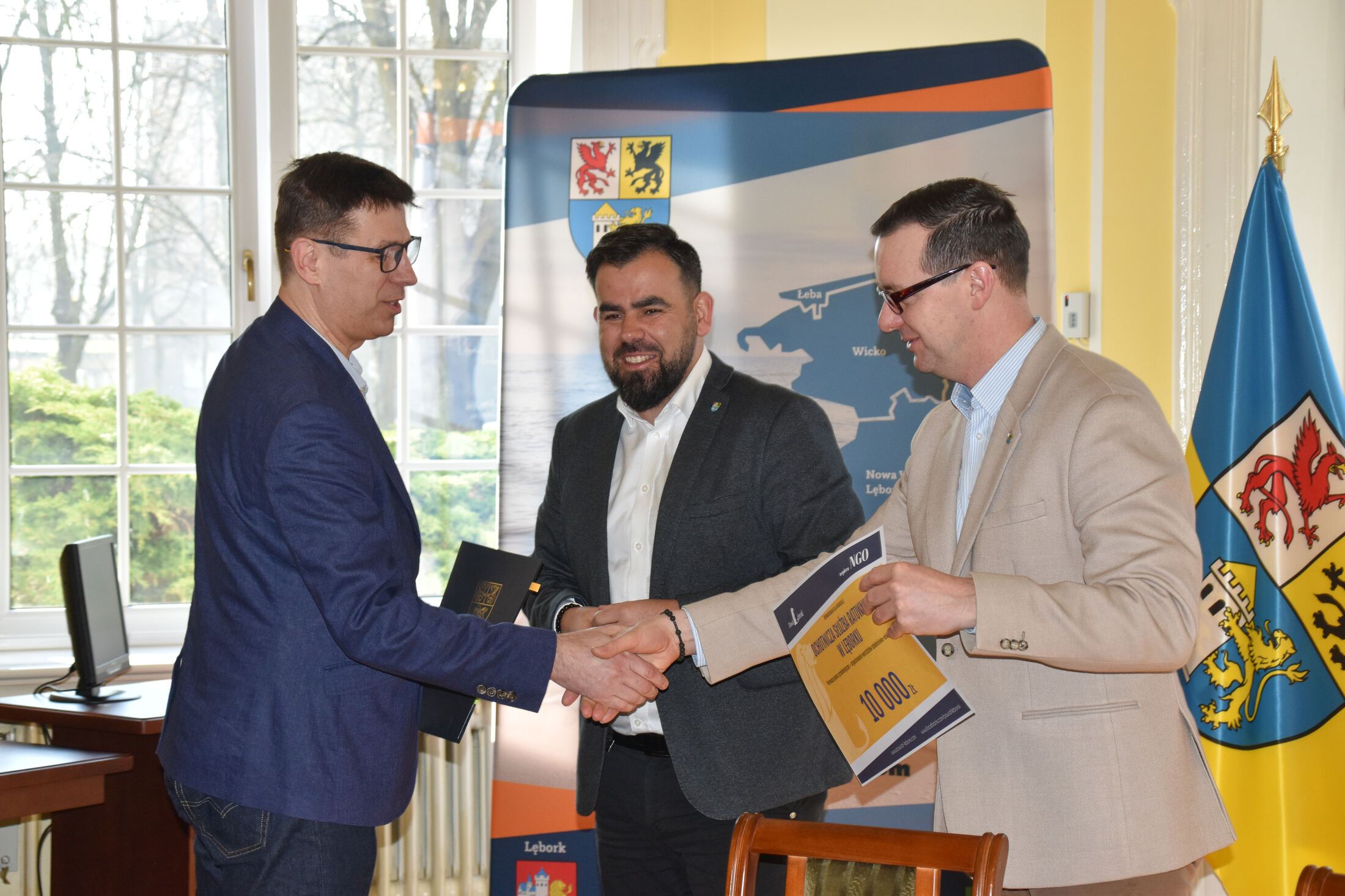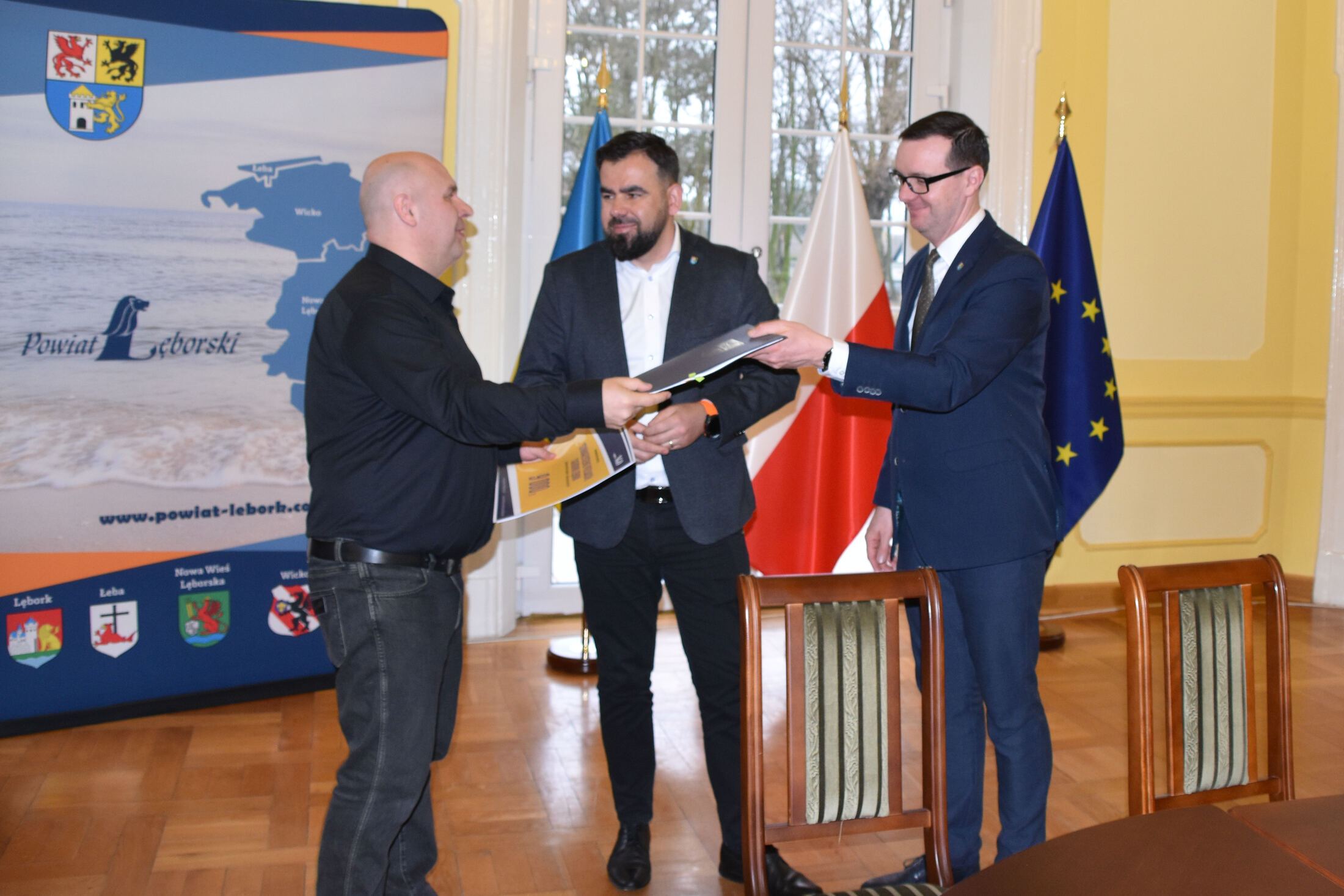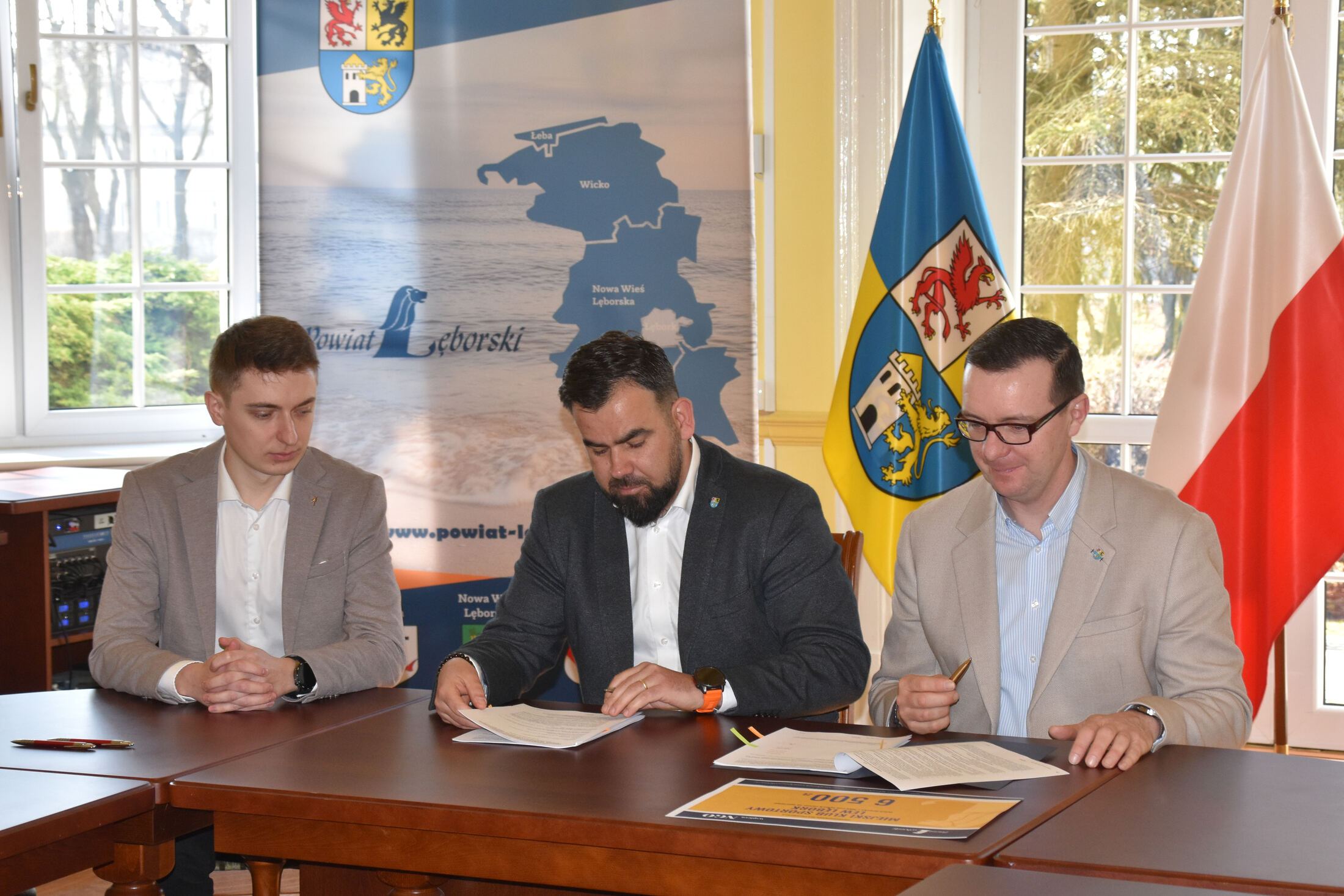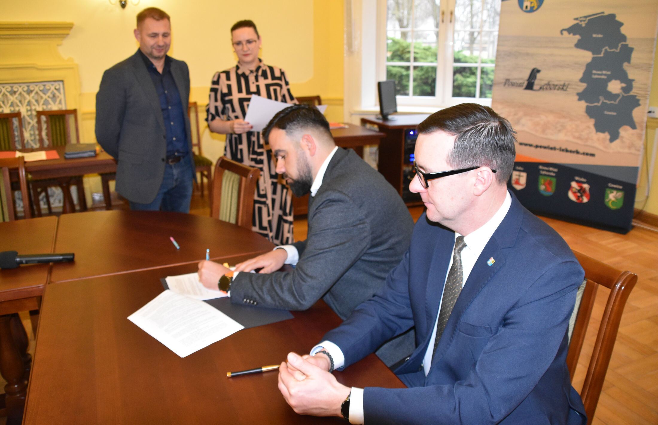 W uroczystościach podpisania umów z przedstawicielami NGO uczestniczyli Starosta Lęborski Tomasz Litwin i Wicestarosta Lęborski Adrian Wenta.