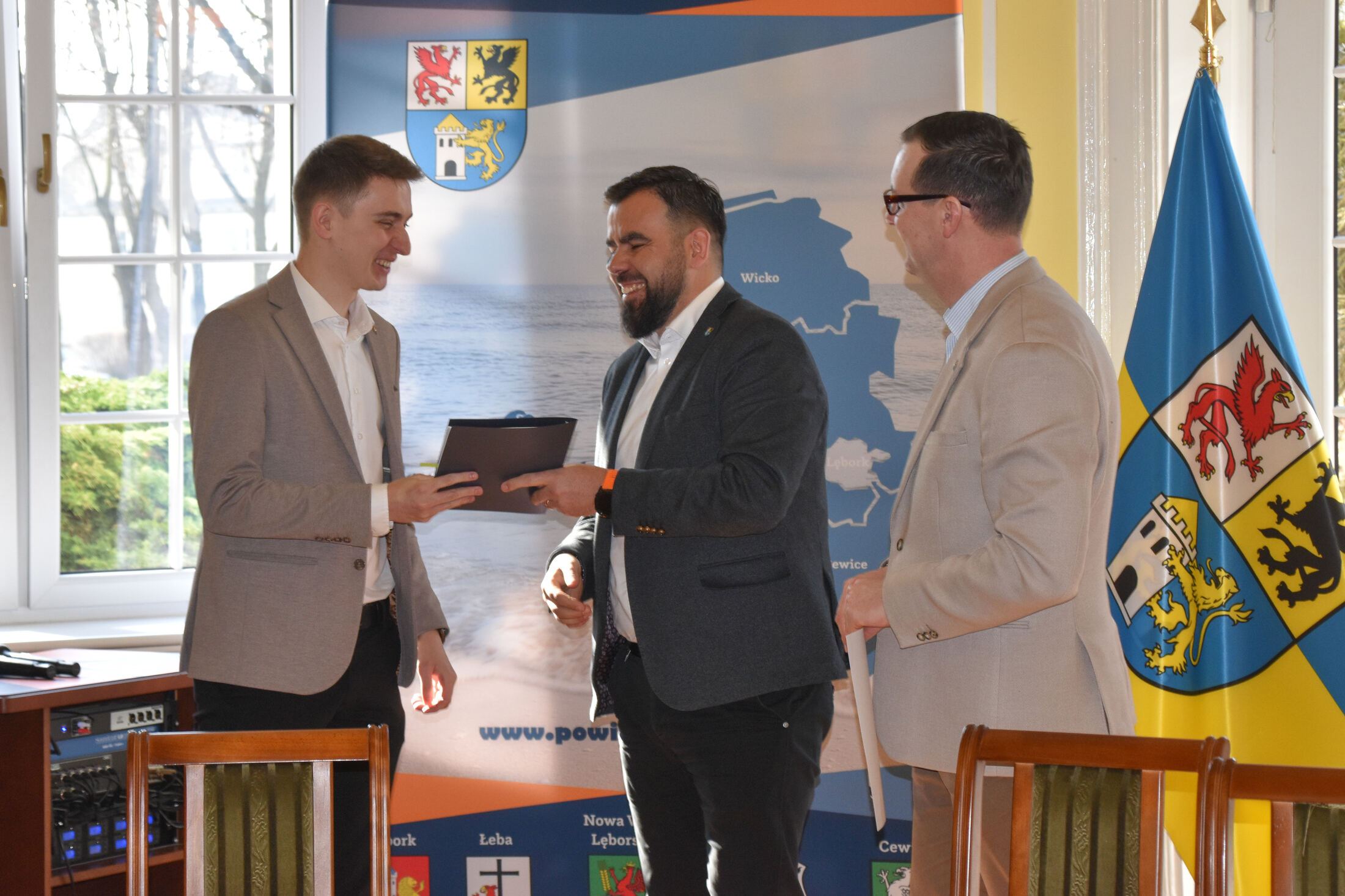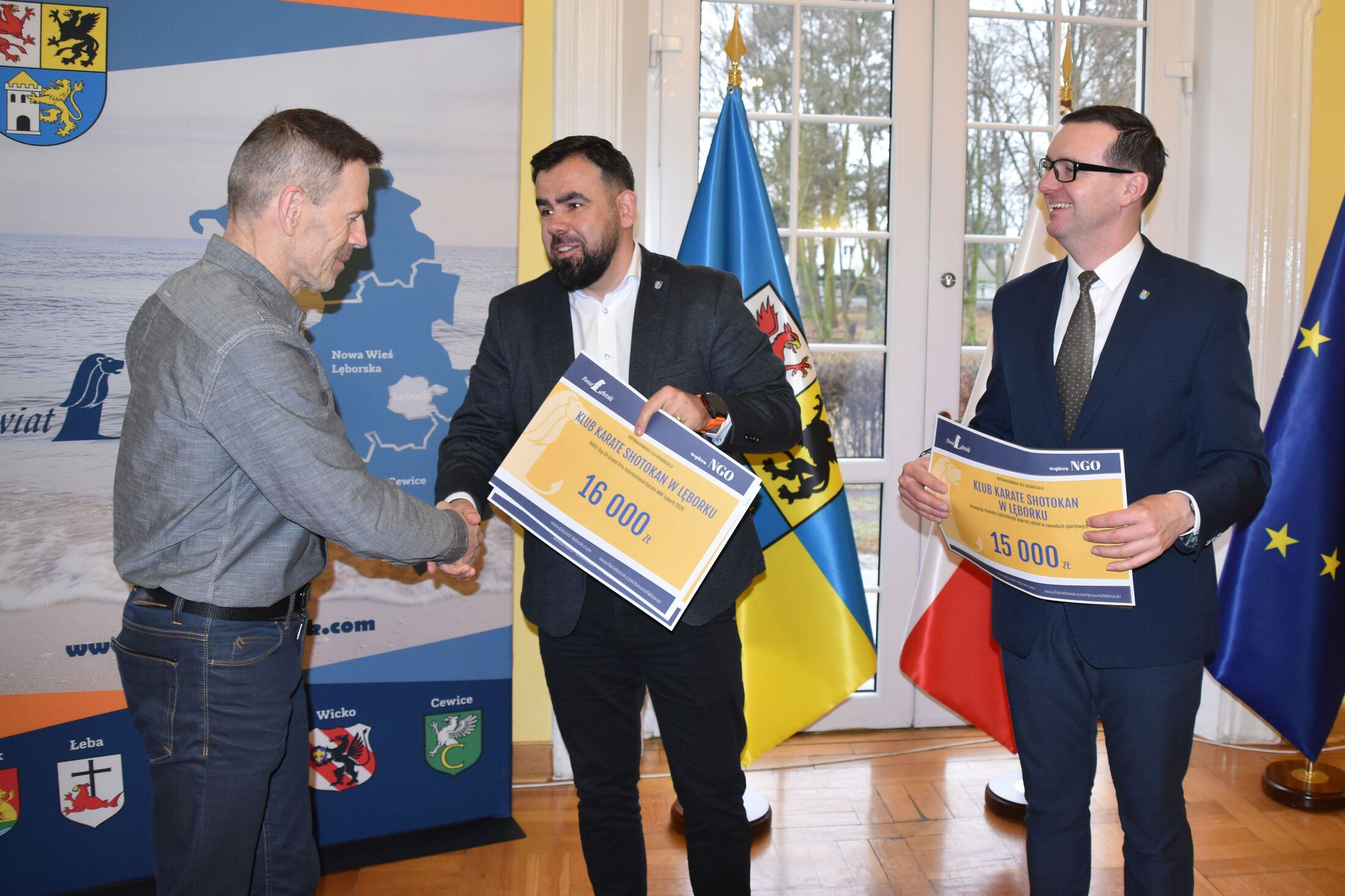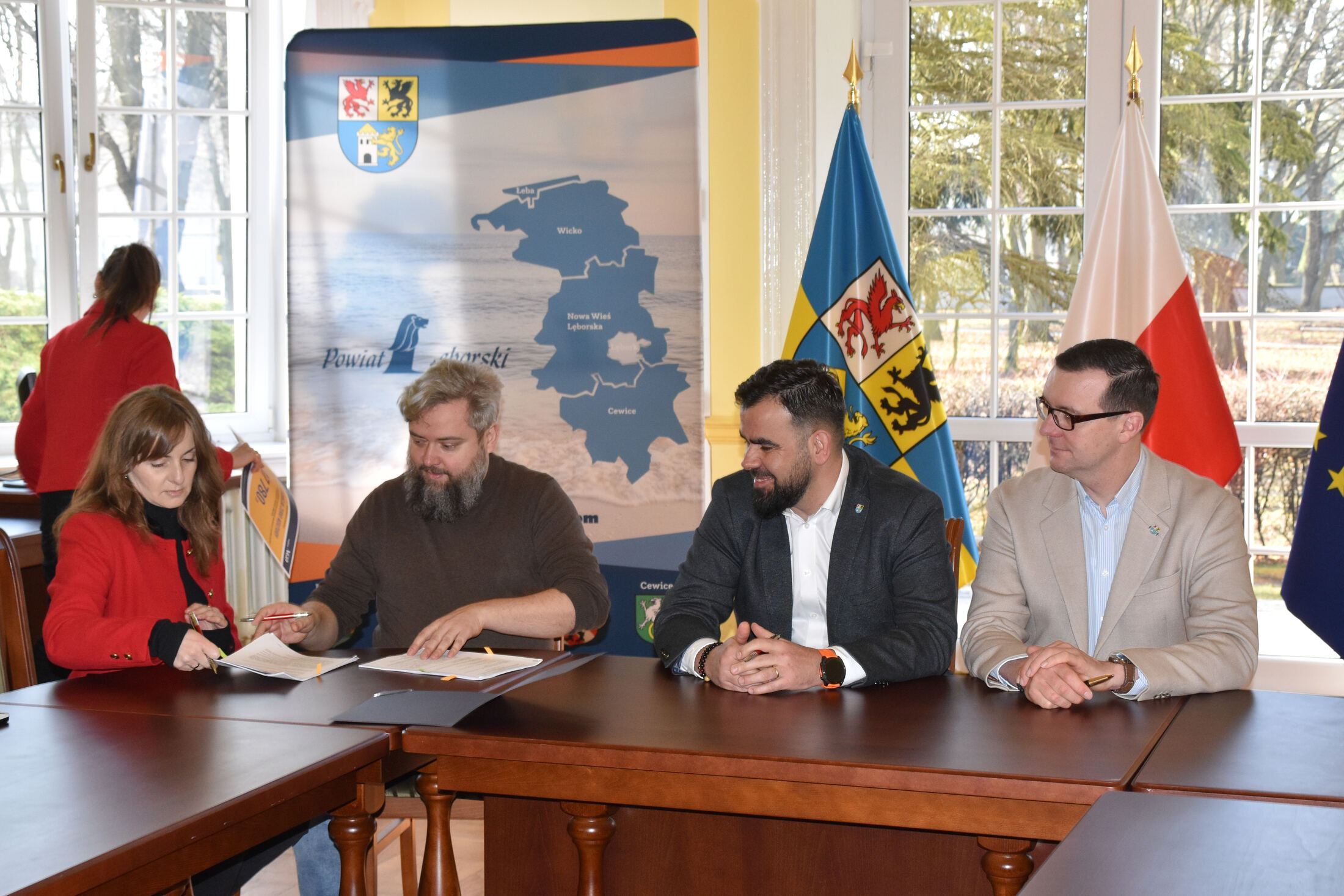 W uroczystościach podpisania umów z przedstawicielami NGO uczestniczyli Starosta Lęborski Tomasz Litwin i Wicestarosta Lęborski Adrian Wenta.