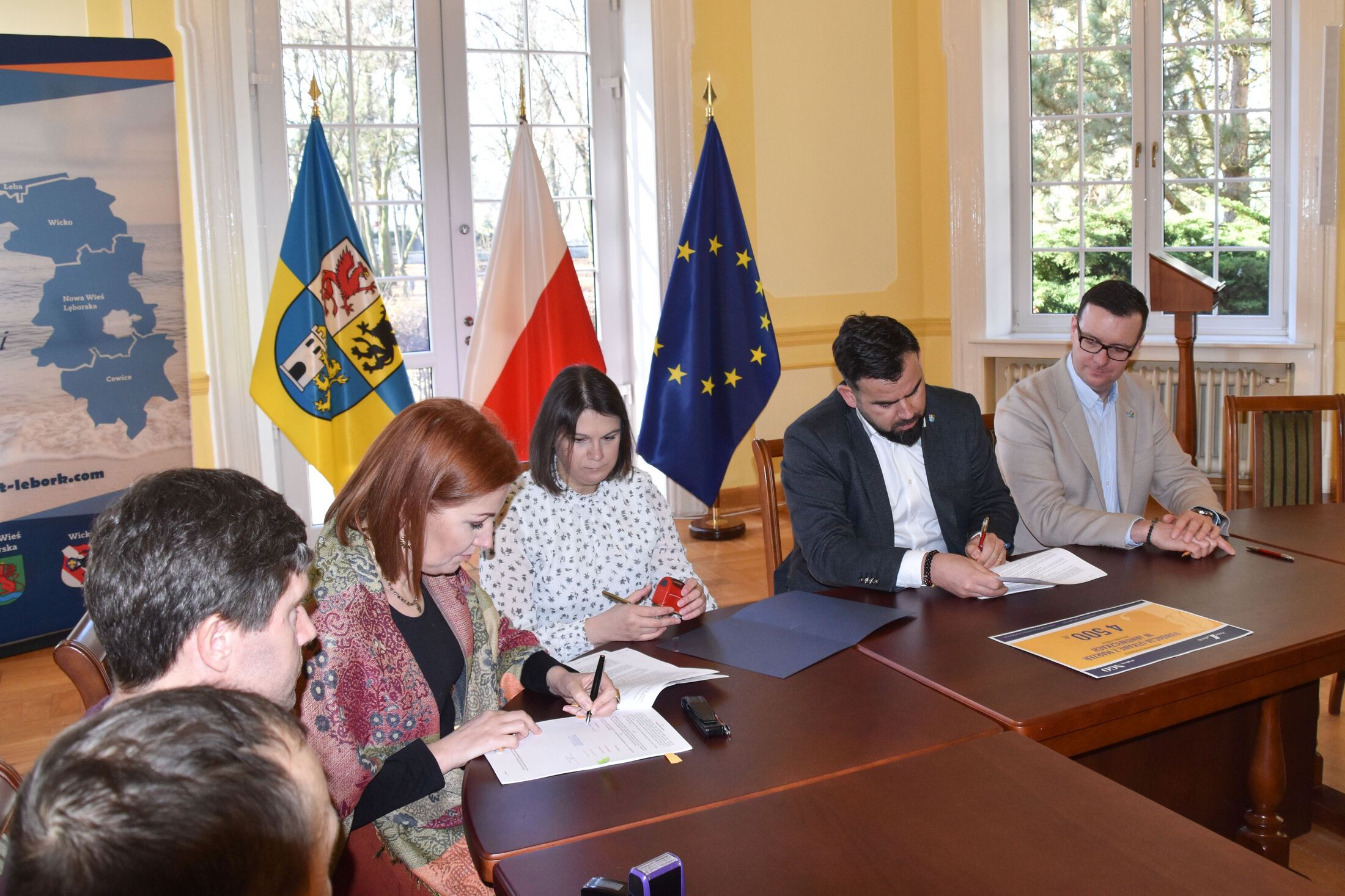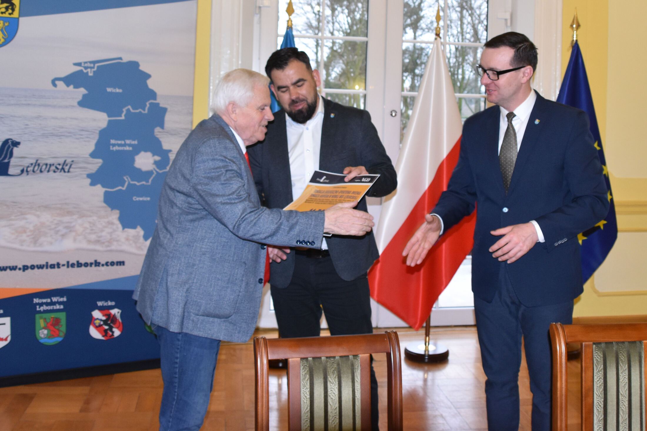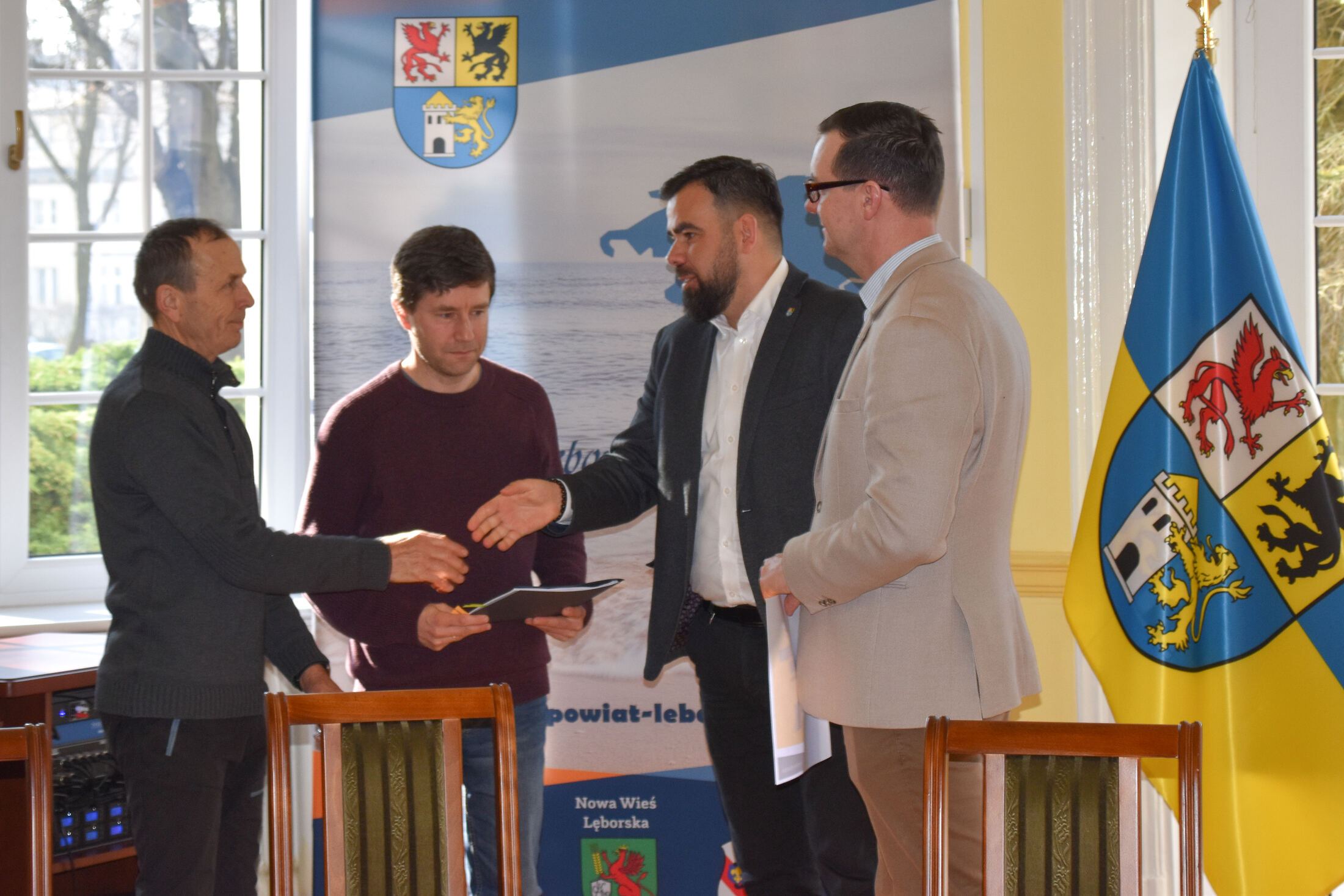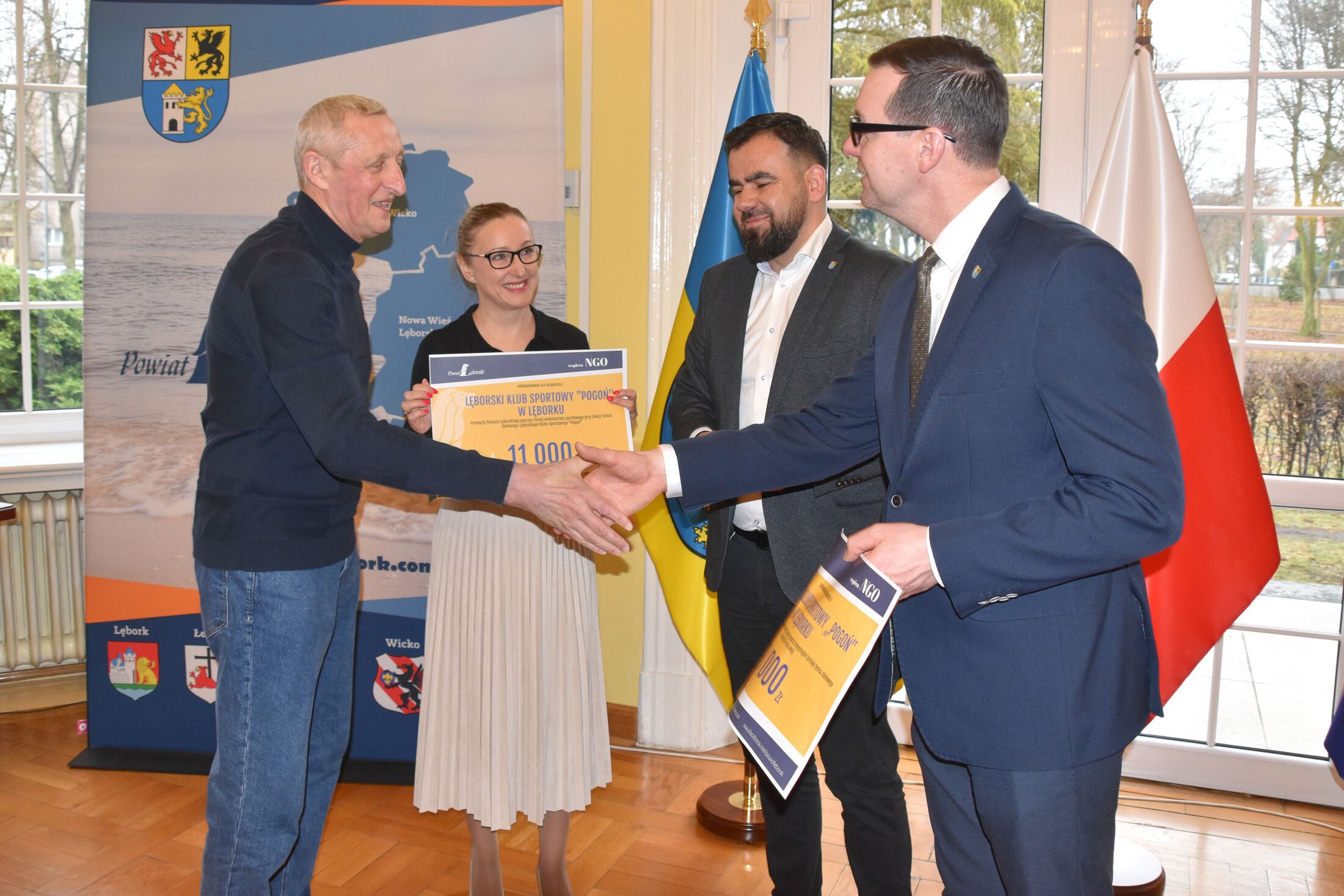 W uroczystościach podpisania umów z przedstawicielami NGO uczestniczyli Starosta Lęborski Tomasz Litwin i Wicestarosta Lęborski Adrian Wenta.