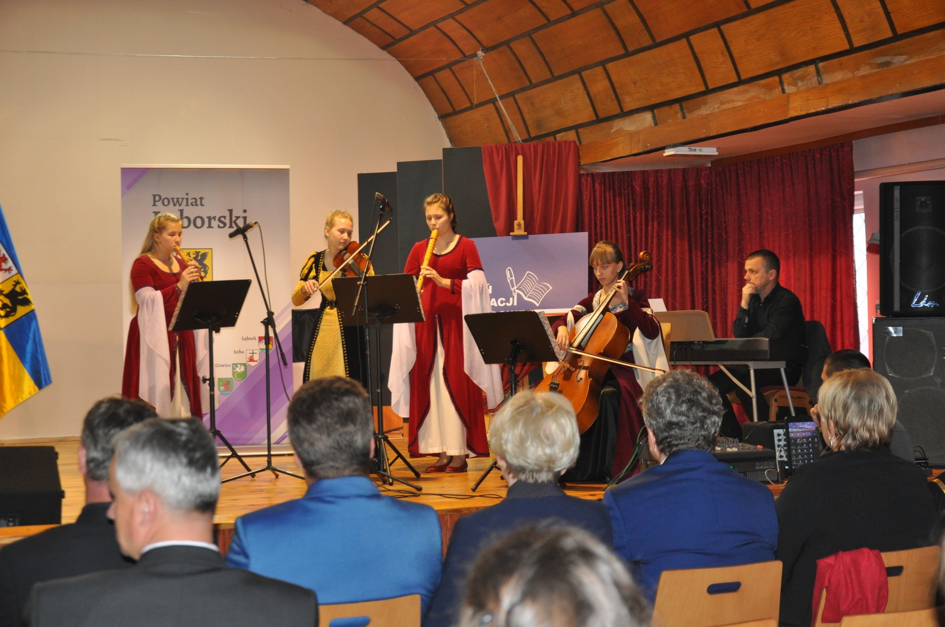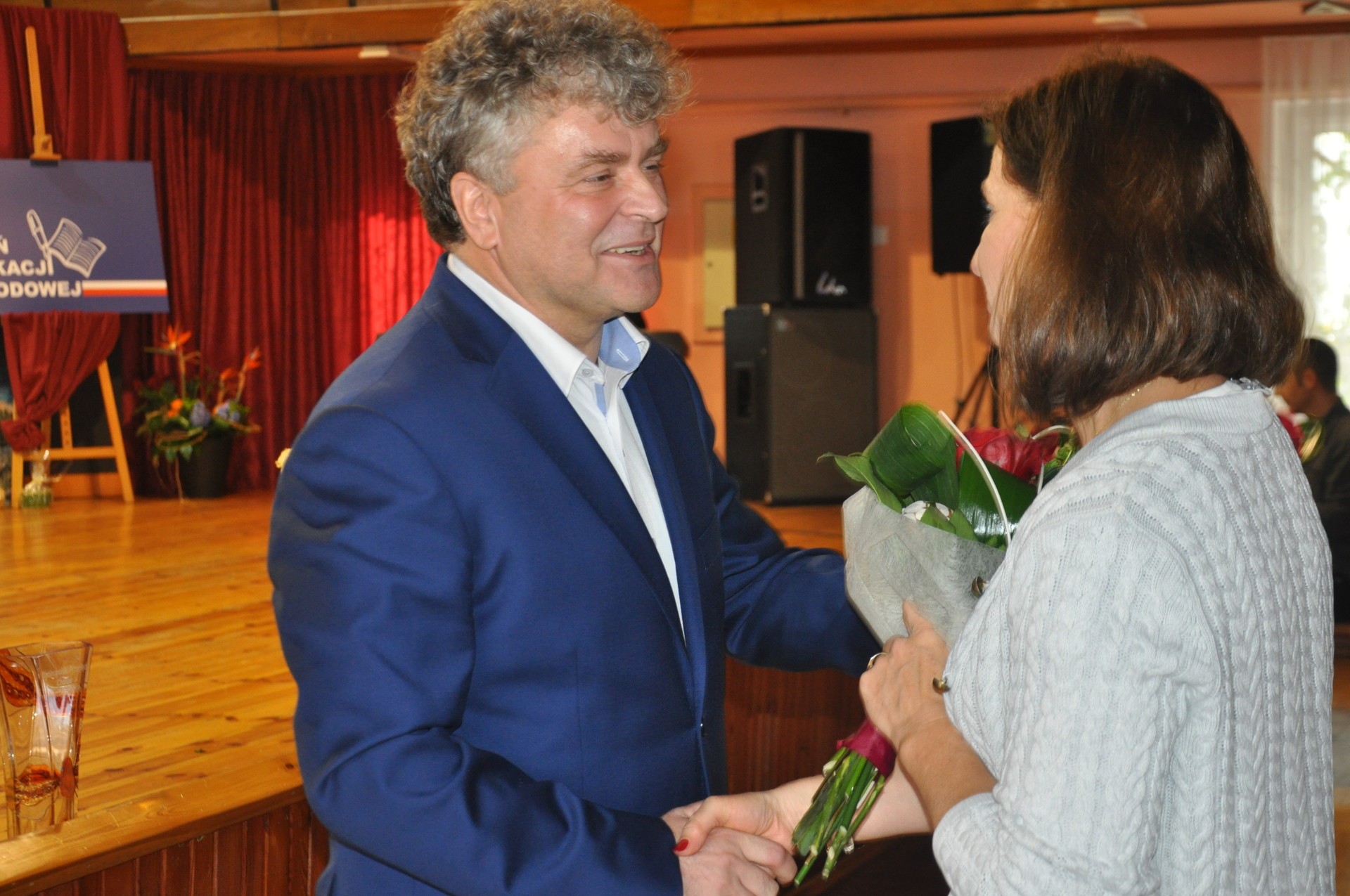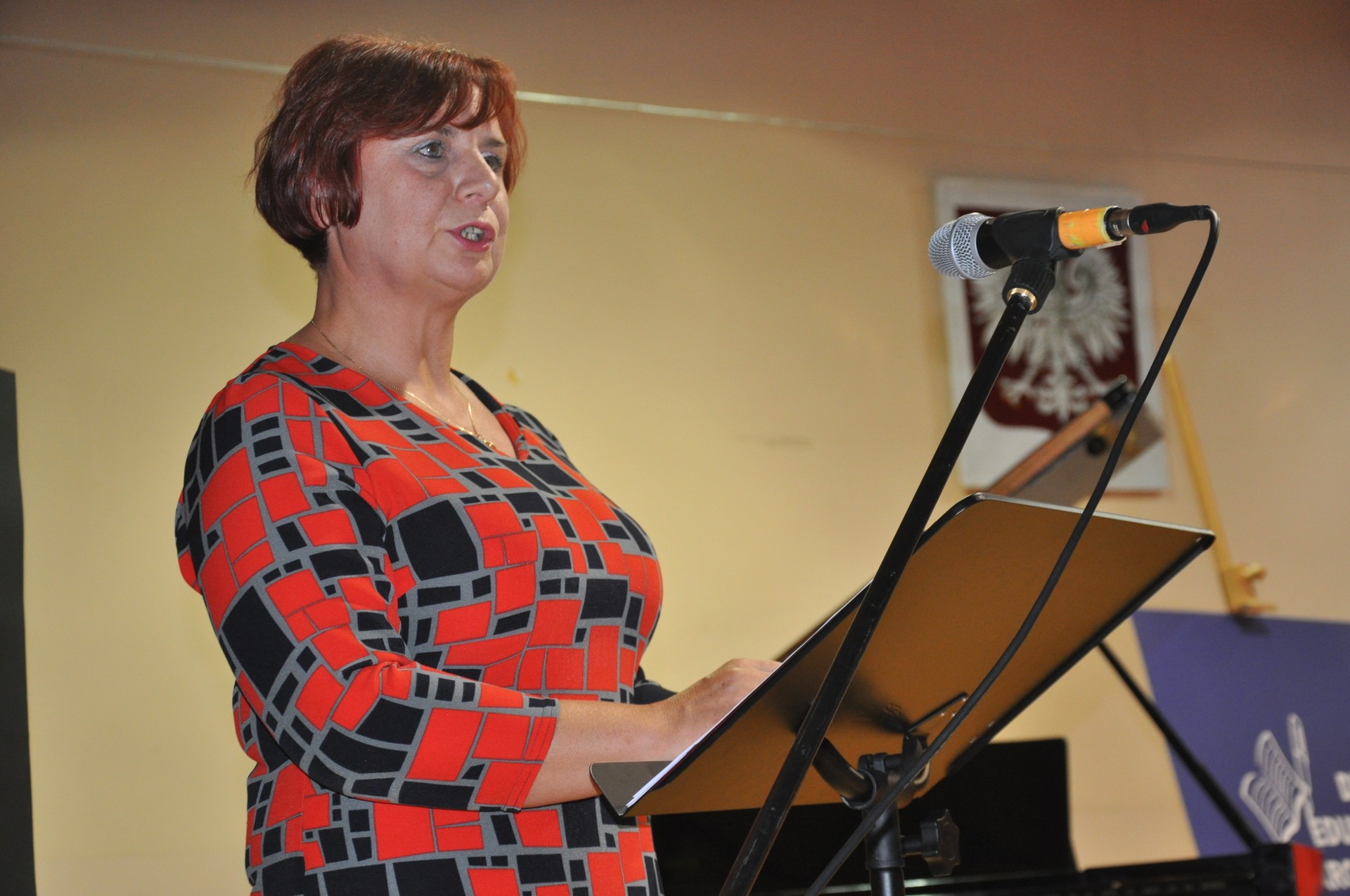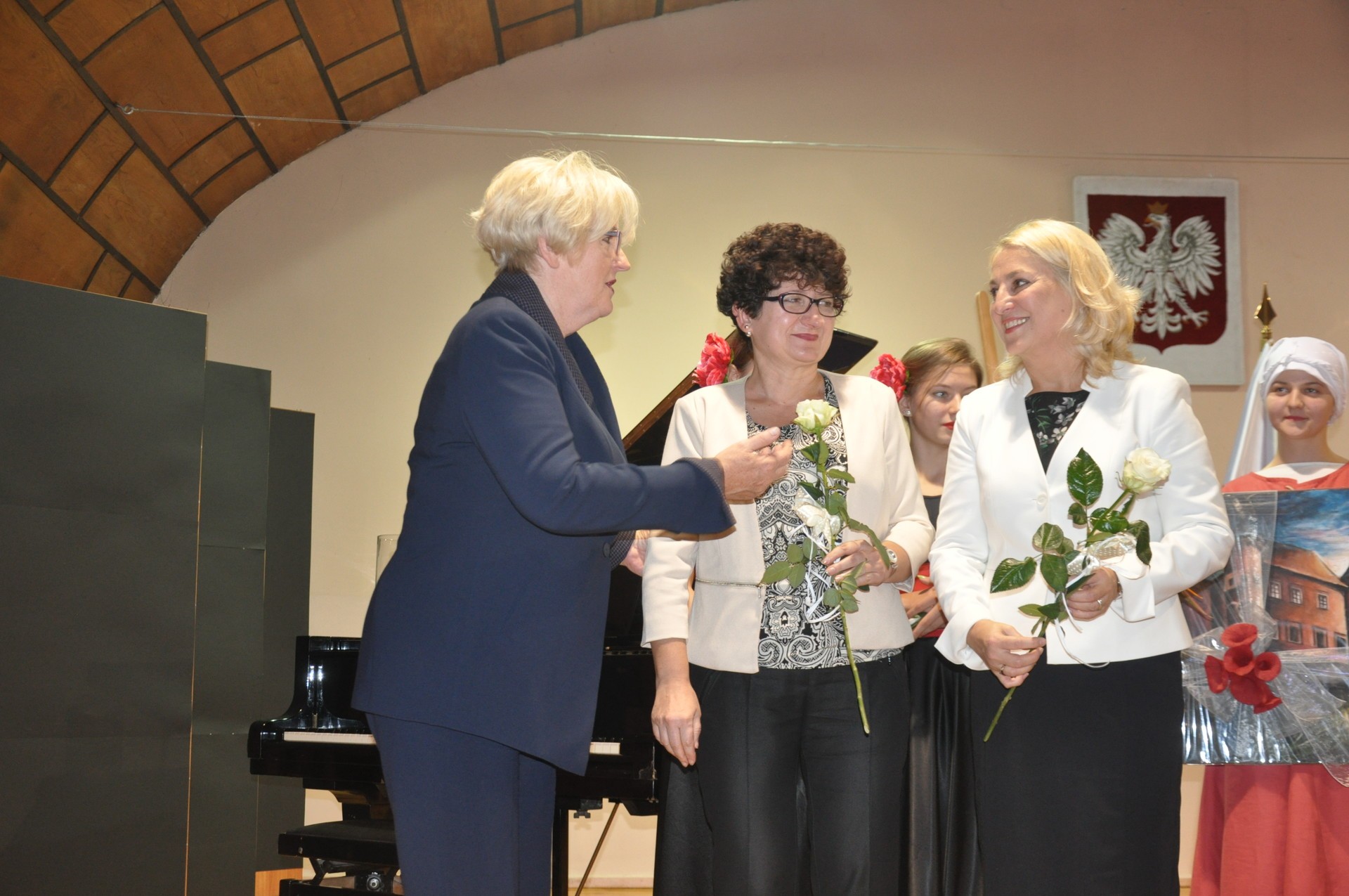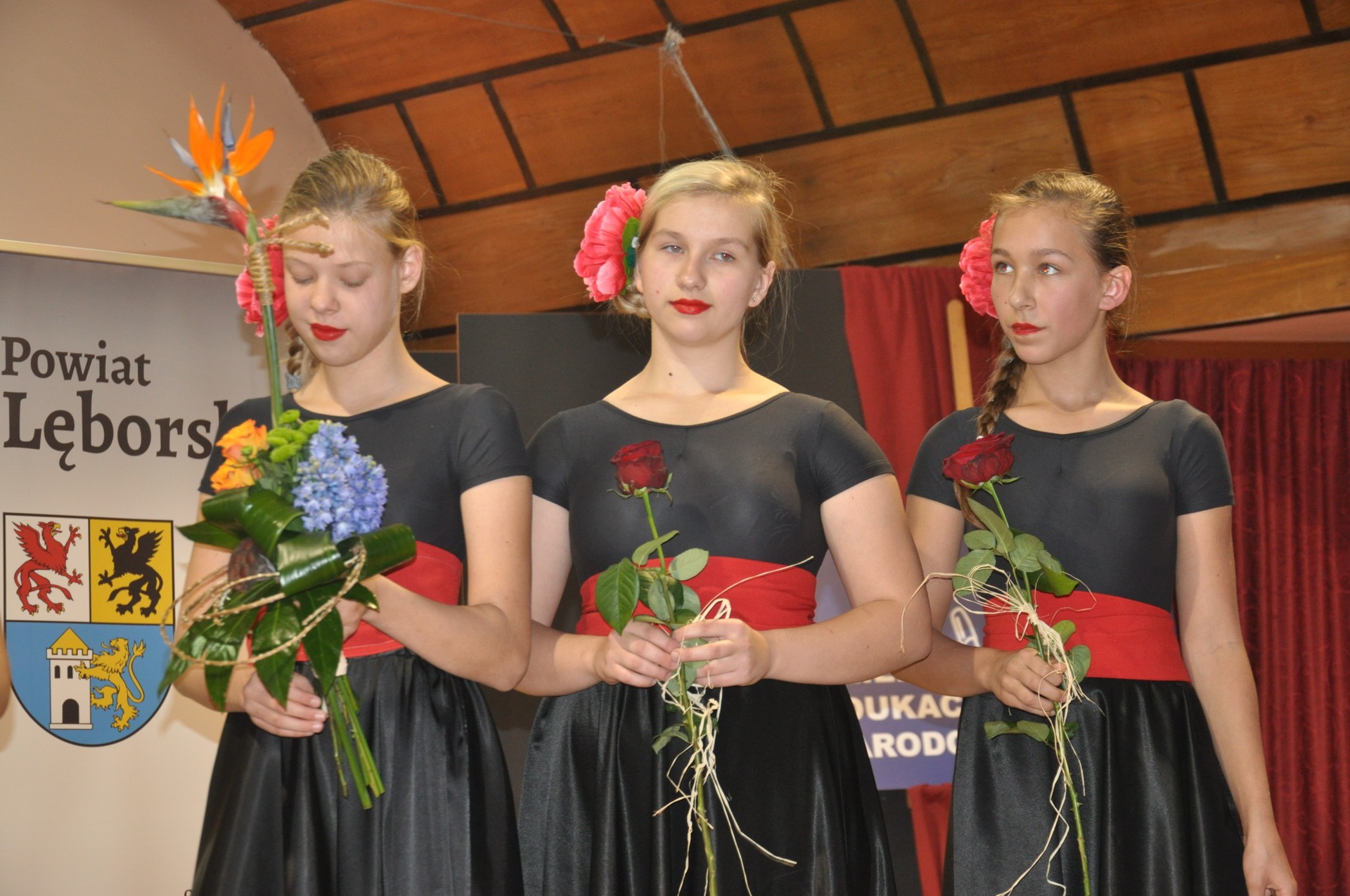 Na ręce Pani Teresy Szczepańskiej – Dyrektora Młodzieżowego Domu Kultury, Starosta Lęborski złożyła podziękowania opiekunom: Pani Mirosławie Grynkiewicz, Panu Tadeuszowi Formeli i Sylwestrowi Kustusz za przygotowanie młodzieży do części artystycznej uroczystości z okazji Dnia Edukacji Narodowej.