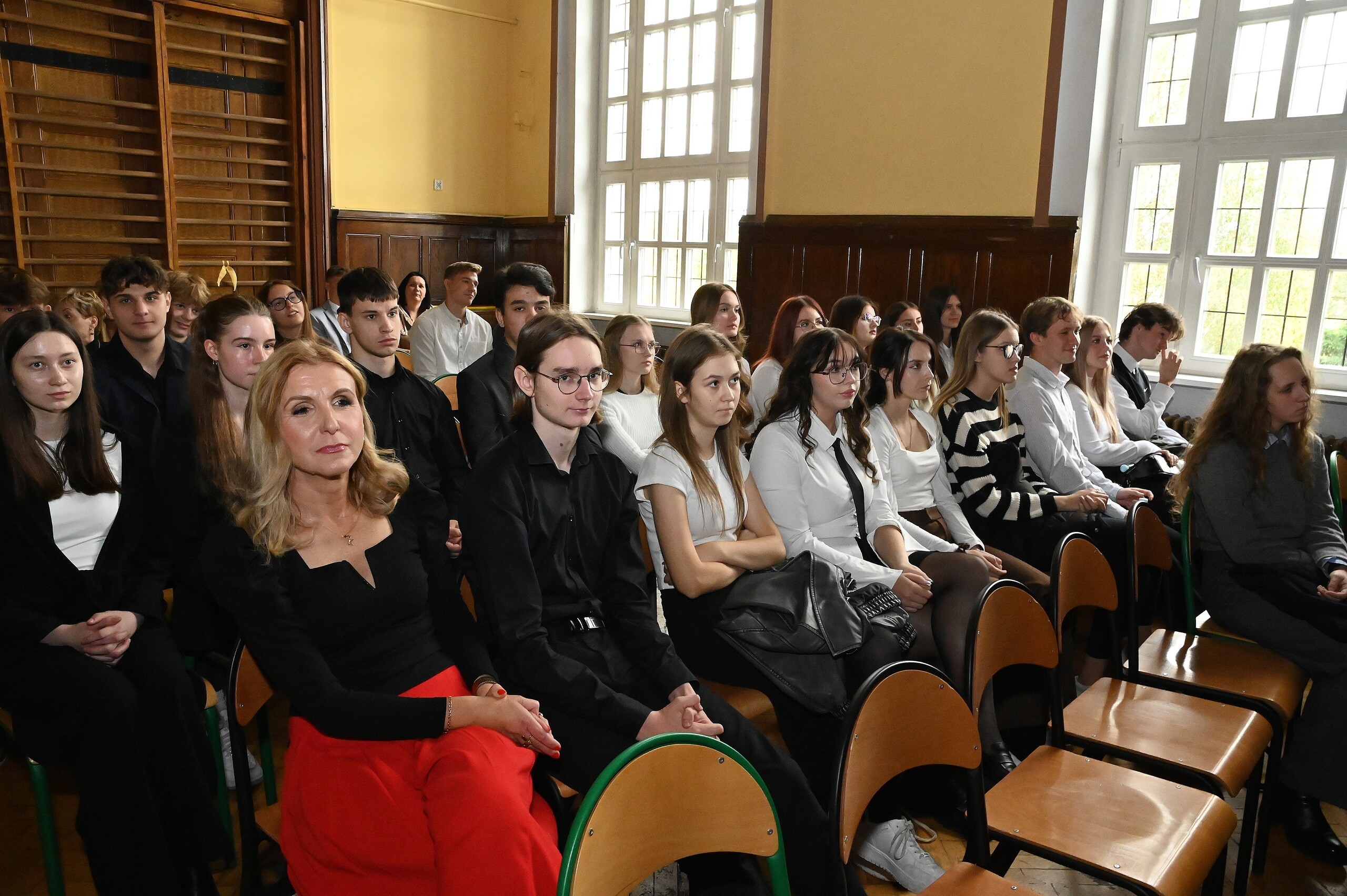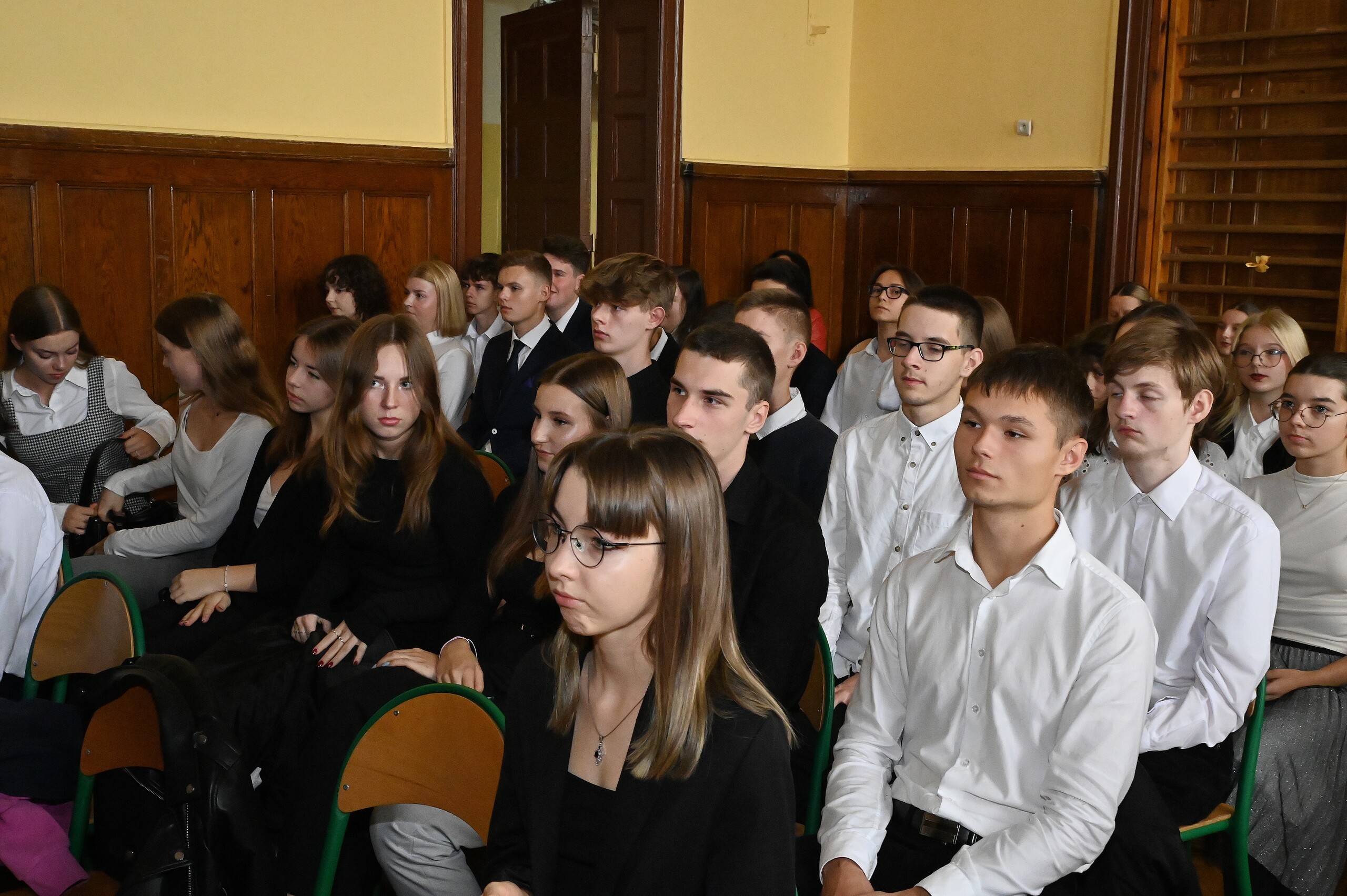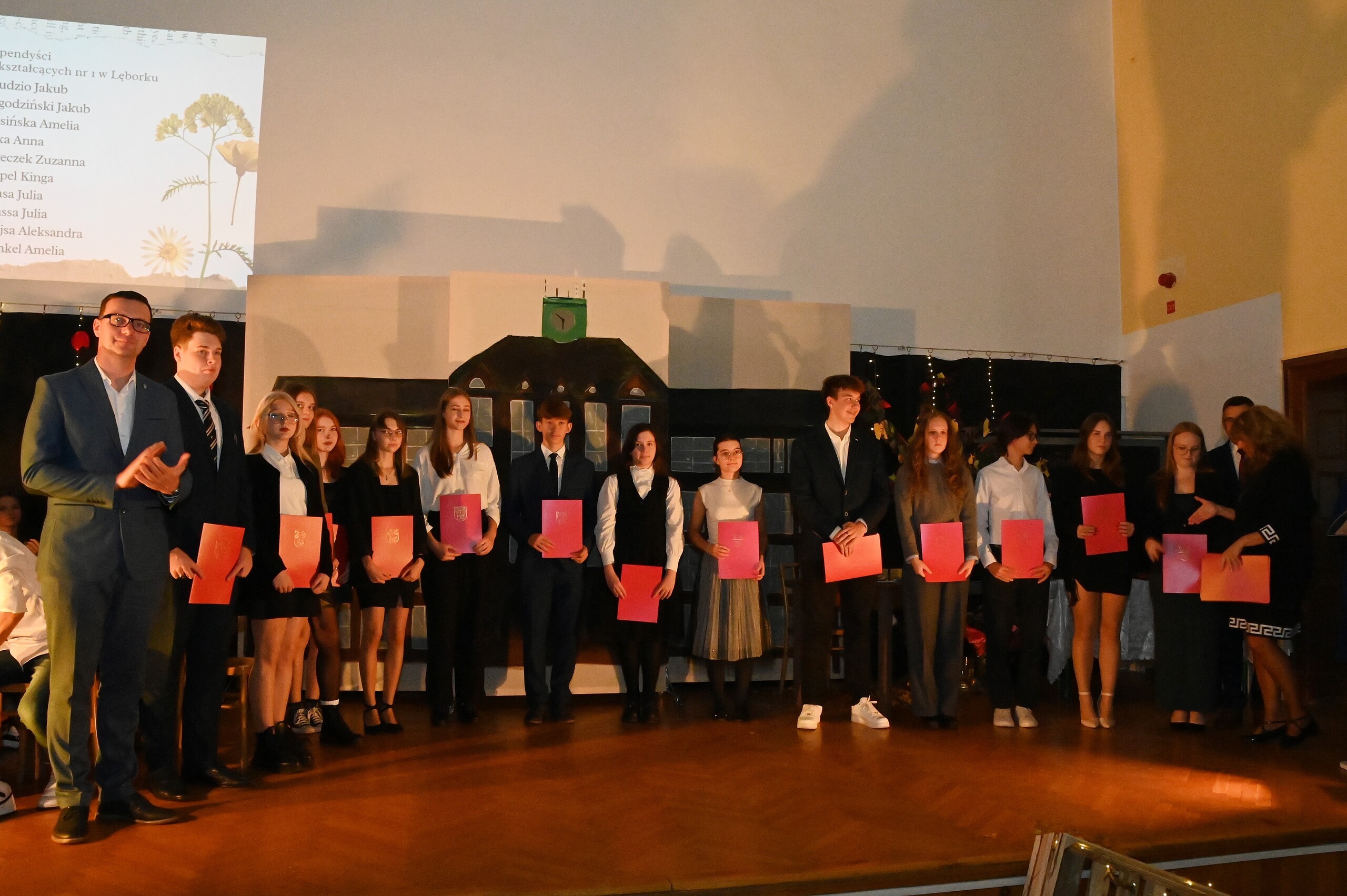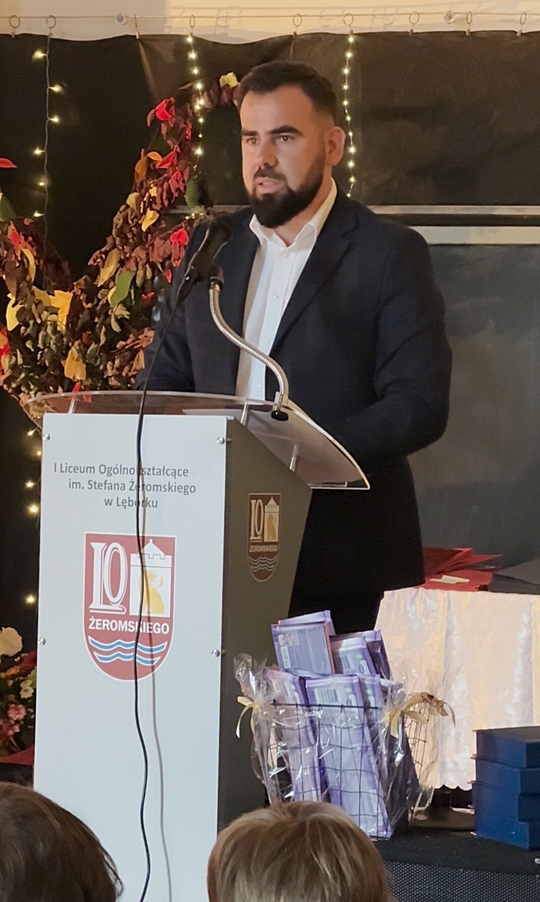W auli I LO zebrała się najzdolniejsza młodzież szkół ponadpodstawowych powiatu lęborskiego i doświadczeni pedagodzy z wieloletnim zawodowym doświadczeniem i wybitnymi osiągnięciami. Osiągnięć nagrodzonym nauczycielom i uczniom gratulował Starosta Lęborski Tomasz Litwin. - To dowód na to, że wasze poświęcenie i zaangażowanie nie pozostają niezauważone. Nagrody te są wyrazem naszej wdzięczności i szacunku za ciężką pracę – mówił starosta - Gratuluję również uczniom. Wasze osiągnięcia są dowodem na to, że praca i wysiłek przynoszą wspaniałe rezultaty. Życzę wam dalszych sukcesów na drodze edukacyjnej i życiowej. Niech dzisiejsze wyróżnienia będą motywacją do dalszej pracy.