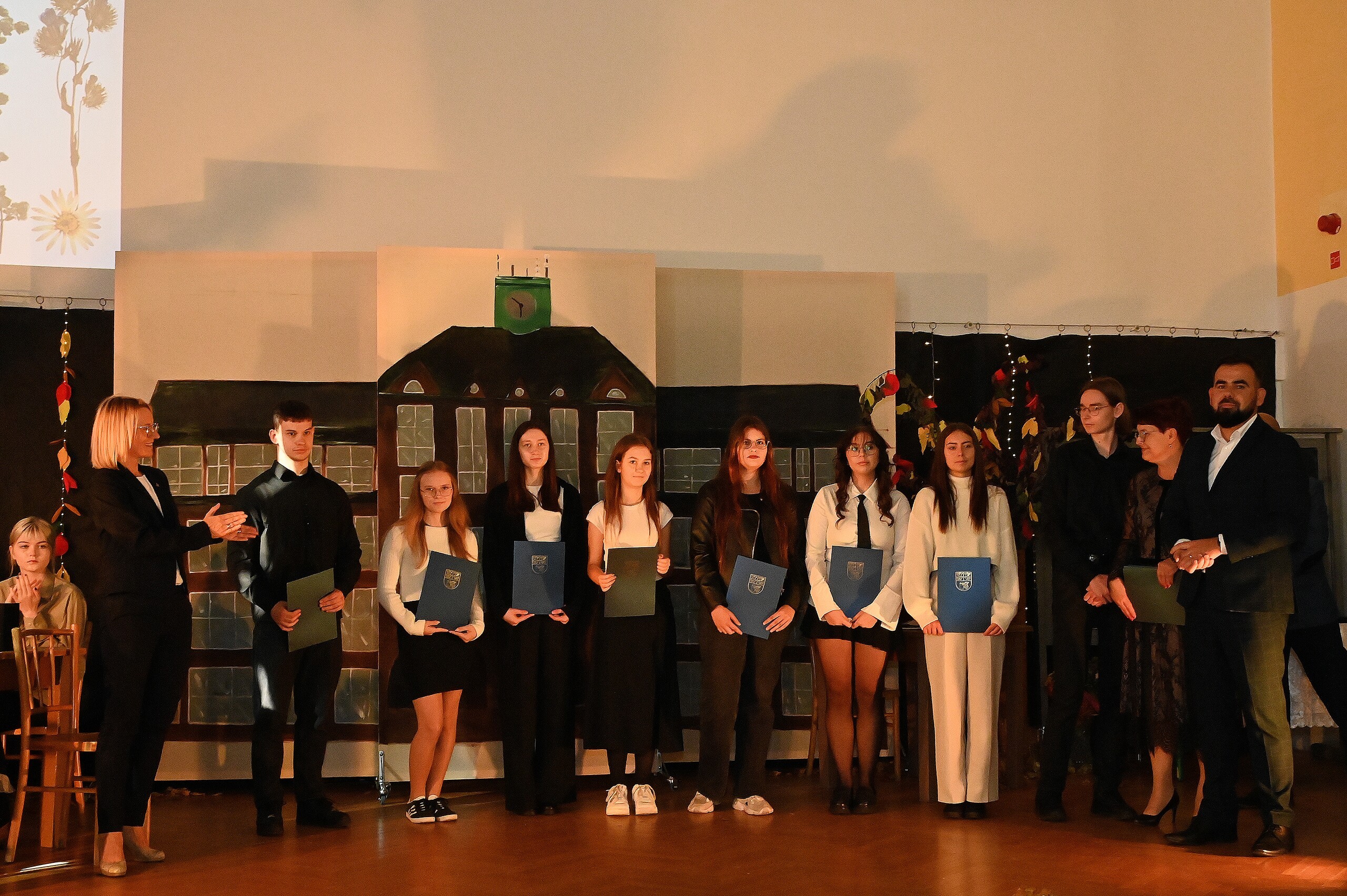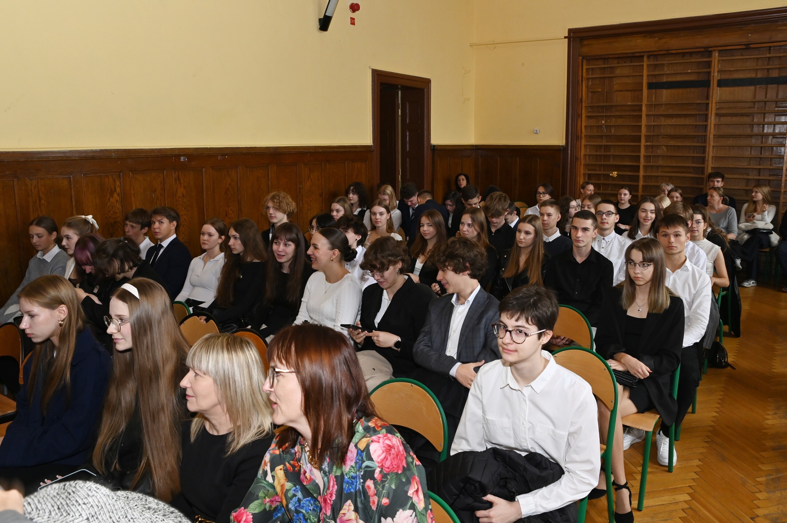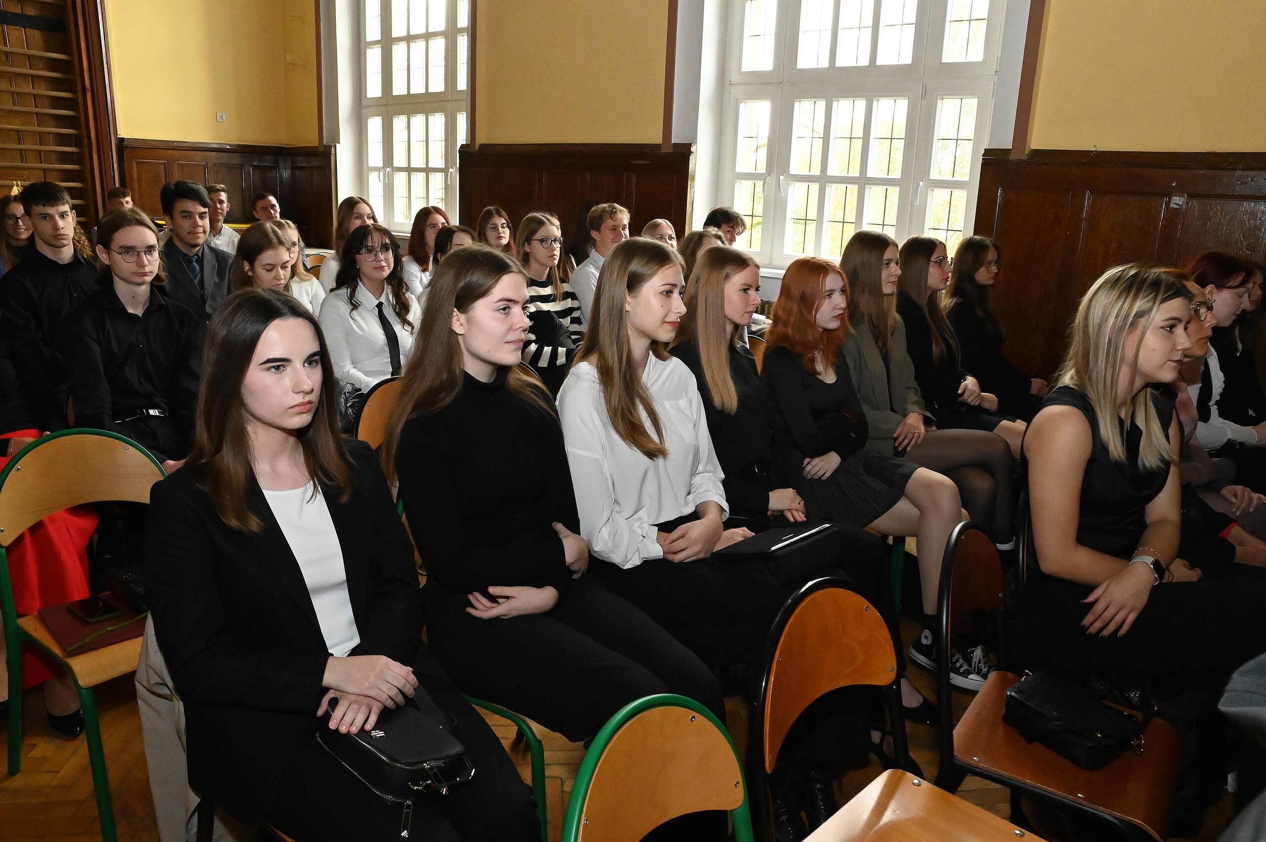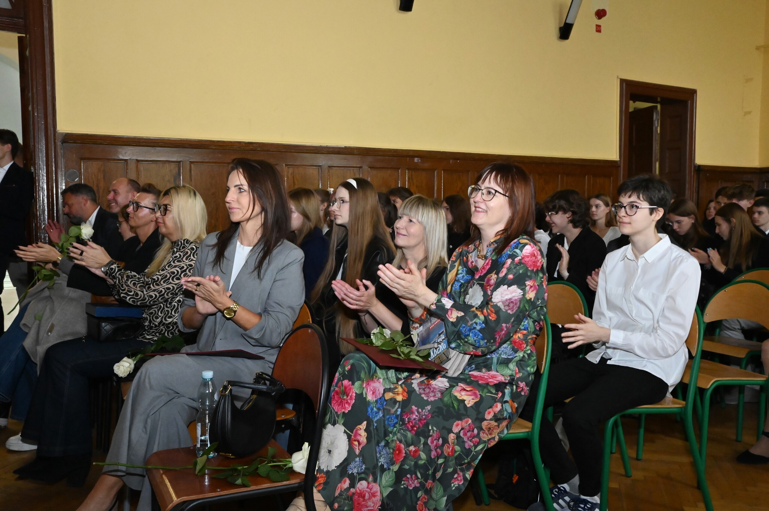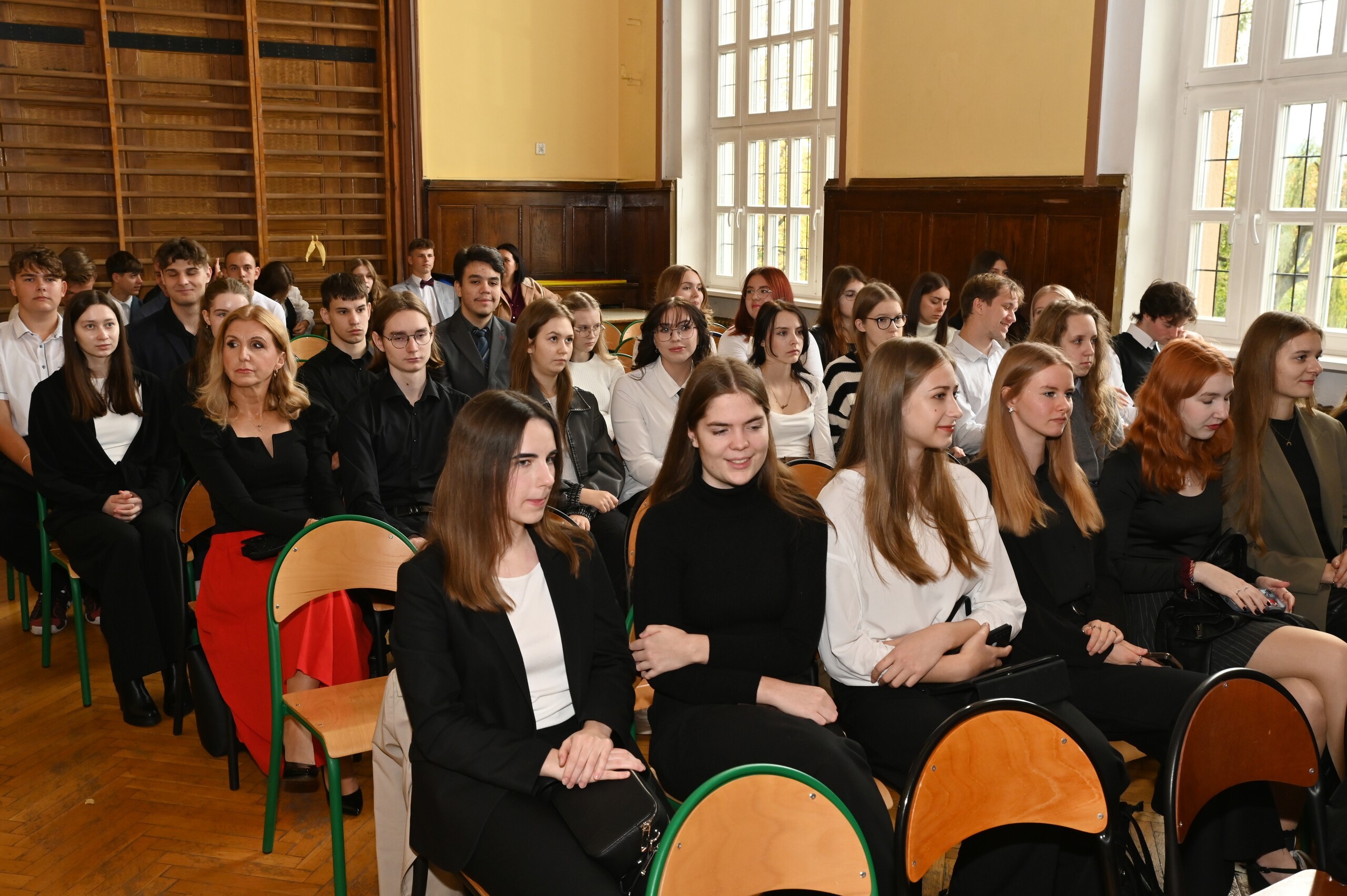 W auli I LO zebrała się najzdolniejsza młodzież szkół ponadpodstawowych powiatu lęborskiego i doświadczeni pedagodzy z wieloletnim zawodowym doświadczeniem i wybitnymi osiągnięciami. Osiągnięć nagrodzonym nauczycielom i uczniom gratulował Starosta Lęborski Tomasz Litwin. - To dowód na to, że wasze poświęcenie i zaangażowanie nie pozostają niezauważone. Nagrody te są wyrazem naszej wdzięczności i szacunku za ciężką pracę – mówił starosta - Gratuluję również uczniom. Wasze osiągnięcia są dowodem na to, że praca i wysiłek przynoszą wspaniałe rezultaty. Życzę wam dalszych sukcesów na drodze edukacyjnej i życiowej. Niech dzisiejsze wyróżnienia będą motywacją do dalszej pracy.