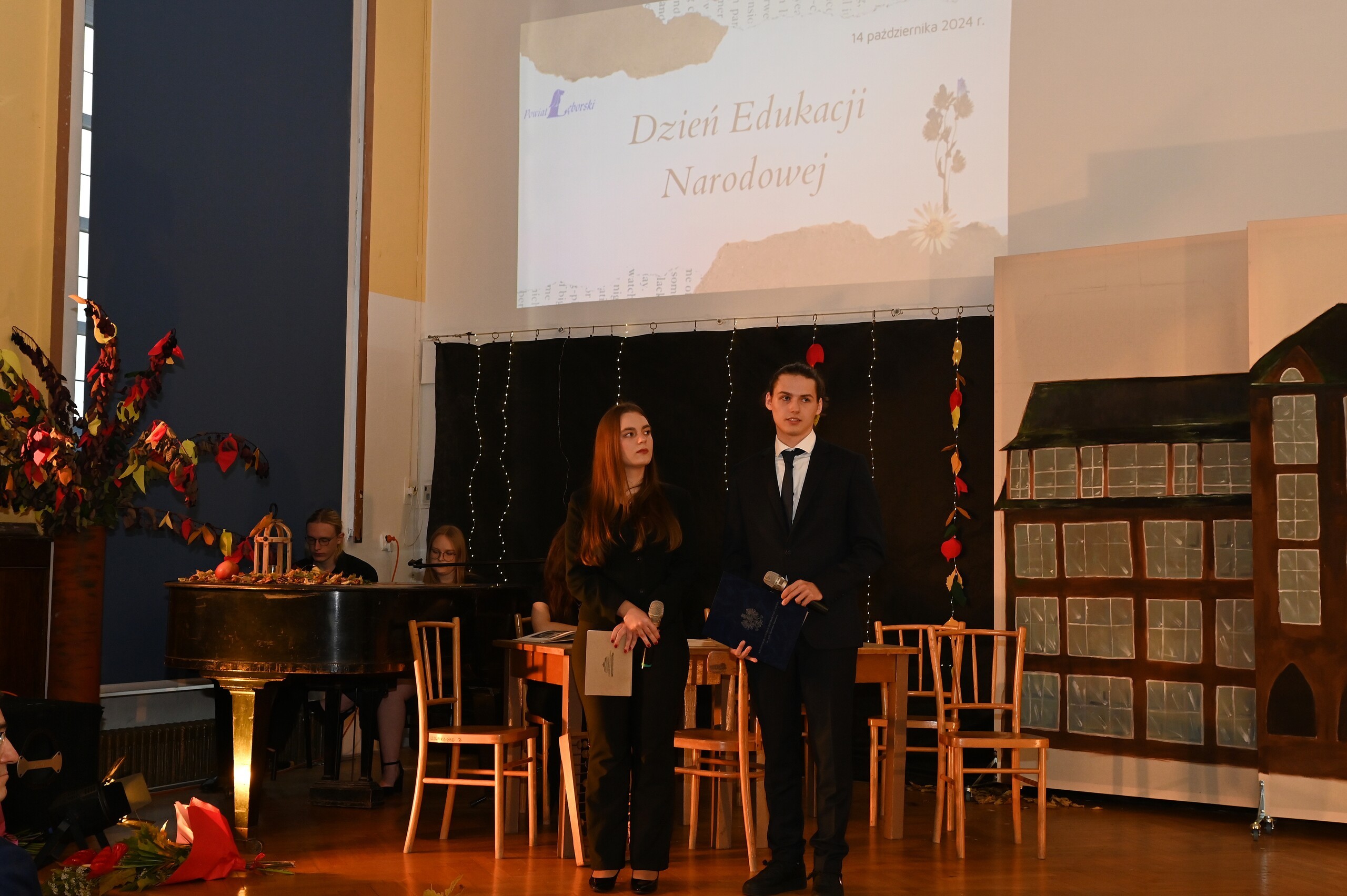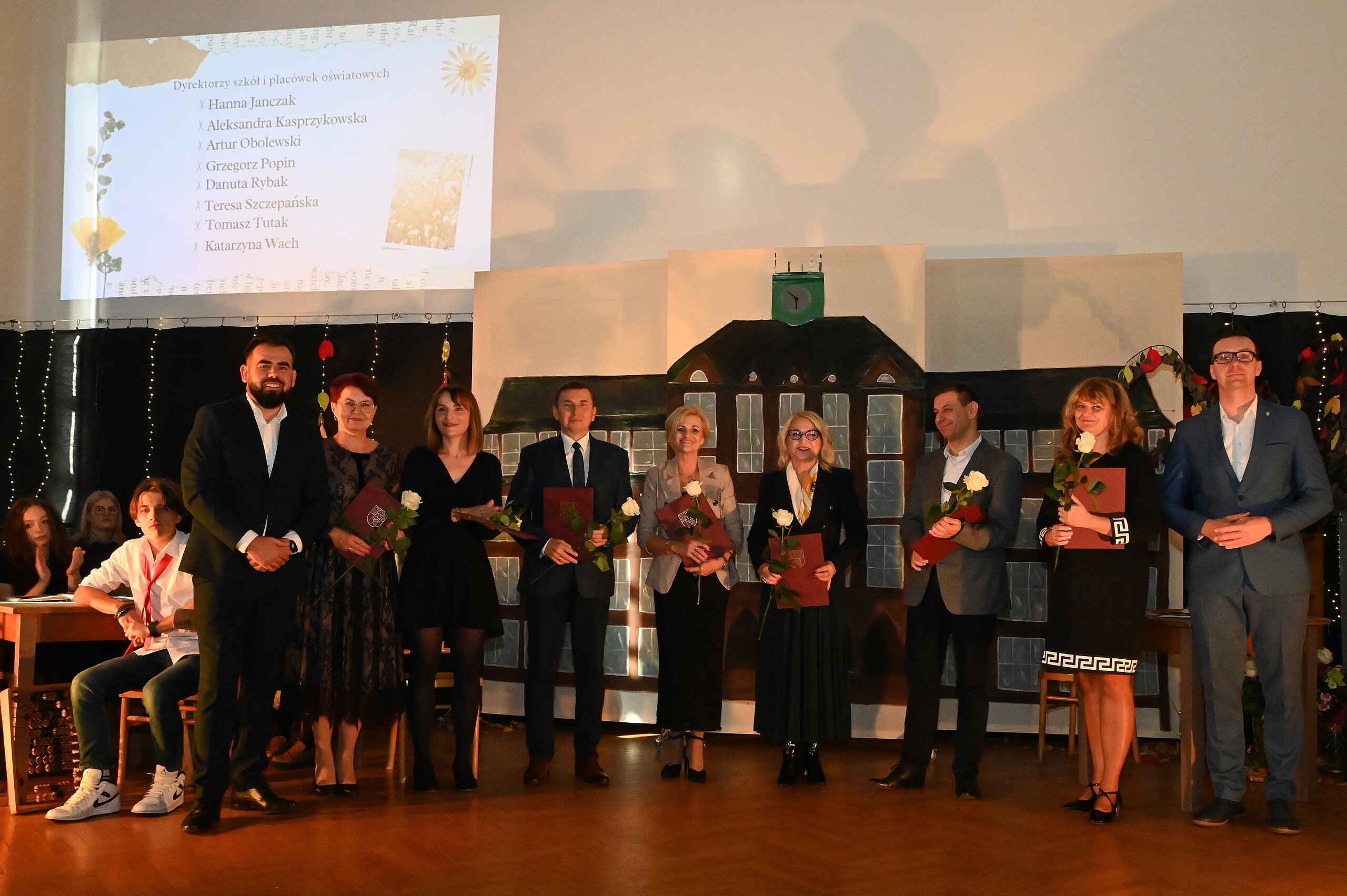 Uroczystość Dnia Edukacji Narodowej poprowadzili uczniowie I LO, których w przygotowaniu uroczystości wsparły polonistki: Katarzyna Harackiewicz i Katarzyna Banach. Wspólnie ze starostą, nagrody wręczali członkowie Zarządu Powiatu, przewodniczący Rady Powiatu Lęborskiego wraz z obecnymi na uroczystości radnymi oraz Burmistrz Lęborka Jarosław Litwin, który nieco wcześniej gościł przedstawicieli Powiatu Lęborskiego na miejskich uroczystościach Dnia Edukacji Narodowej.