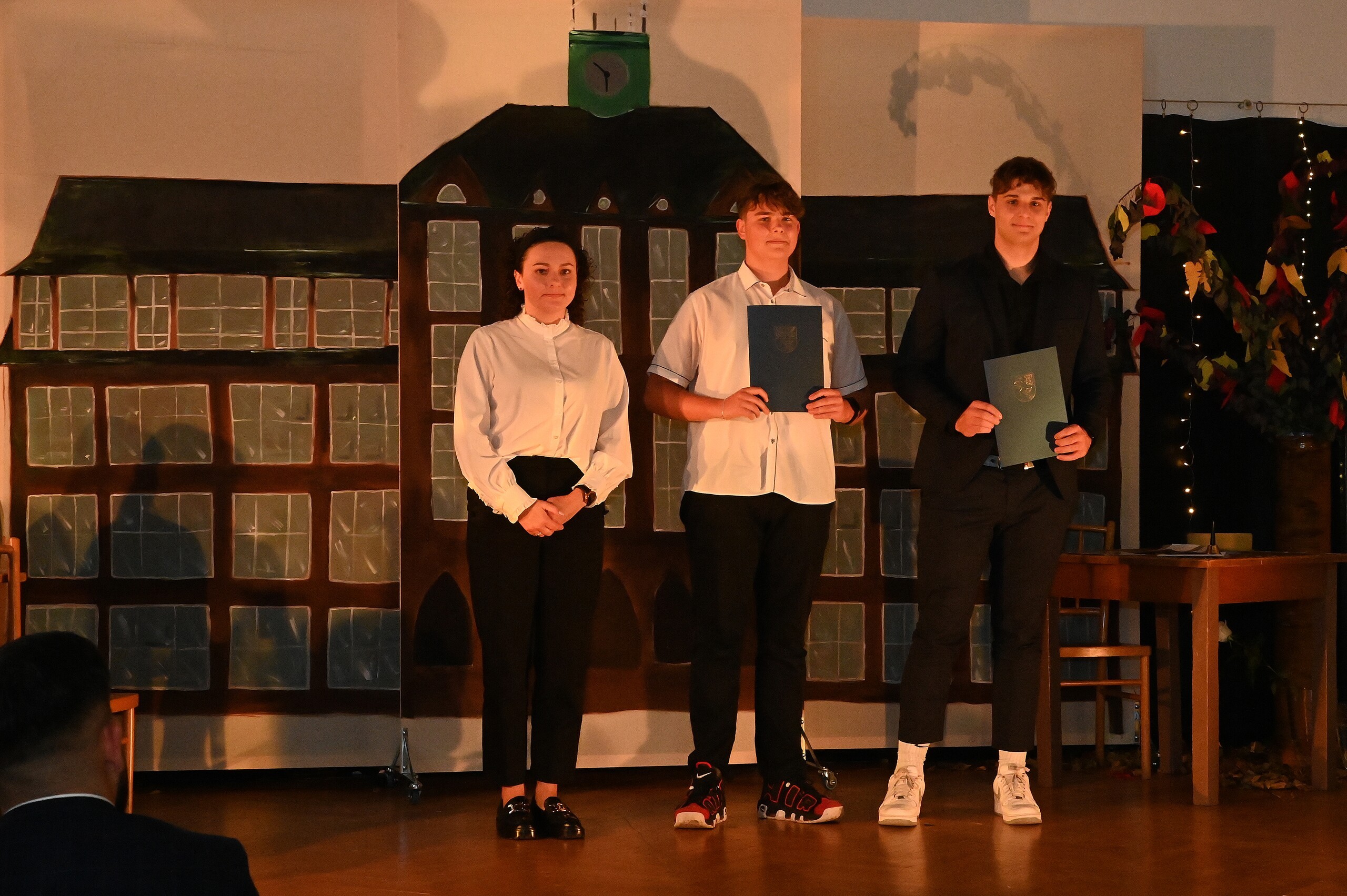 W gronie nagrodzonych znalazło się 8 nauczycieli, 8 dyrektorów i 4 przedstawicieli Cechu Rzemiosła i Przedsiębiorczości w Lęborku uczestniczących w procesie edukacyjnym i realizacji praktyk zawodowych. Stypendia Starosty otrzymało 68 uczniów z I Liceum Ogólnokształcącego w Lęborku. 37 osób zostało wyróżnionych stypendiami w Zespole Szkół Gospodarki Żywnościowej i Agrobiznesu w Lęborku. Stypendia otrzymało również 20 uczniów ze Społecznego Liceum Ogólnokształcącego w Lęborku. 14 stypendiów trafiło do Liceum Ogólnokształcącego nr 2 w Lęborku, 7 do Powiatowego Centrum Edukacyjnego i 4 do Zespołu Szkół Mechaniczno-Informatycznych. Najwyższą średnią ocen – 6,0 uzyskała Dominika Naczk z I LO. (Pełną listę nagrodzonych i stypendystów publikujemy w załączniku).