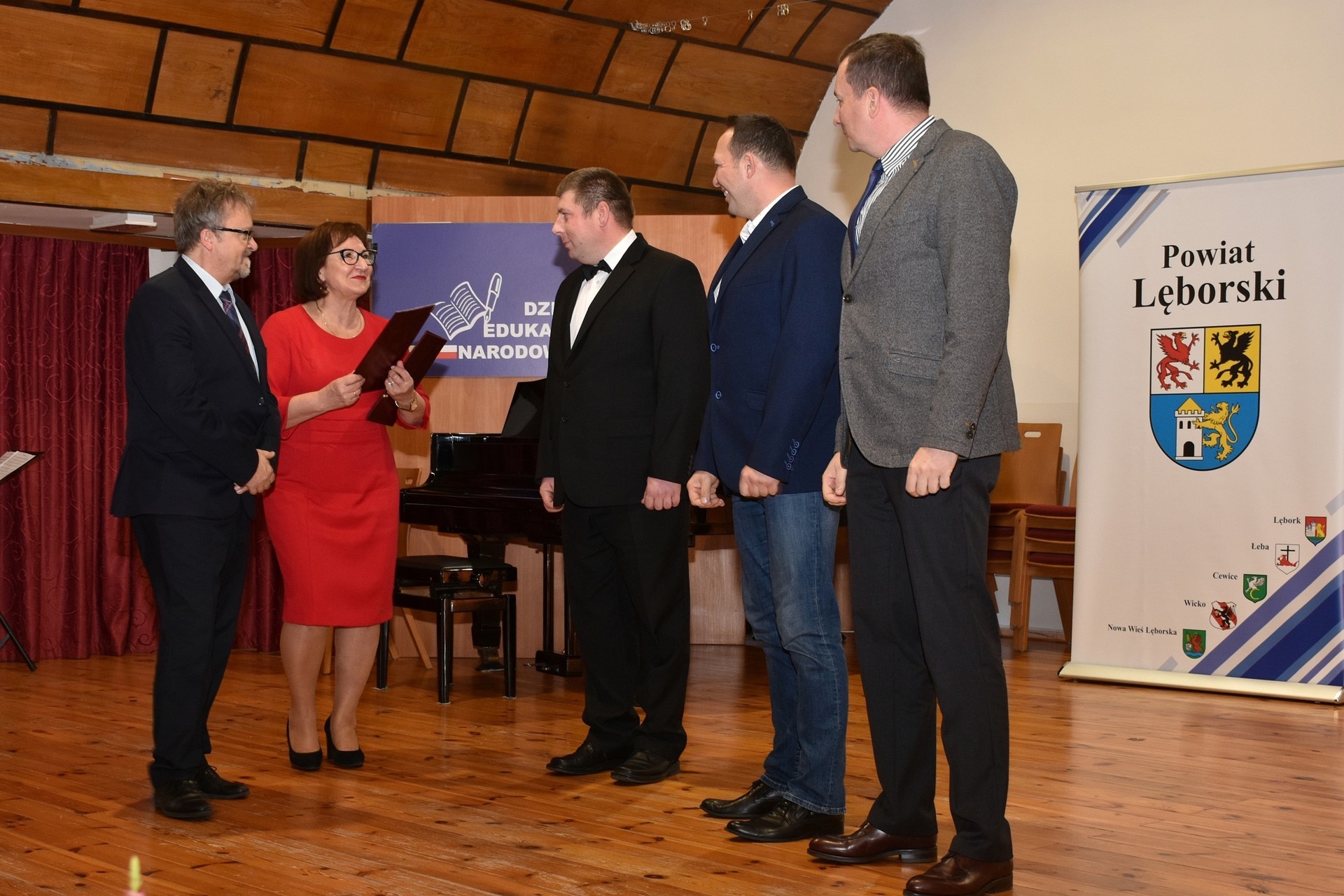 Dzień Edukacji narodowej to święto upamiętniające powstanie Komisji Edukacji Narodowej, utworzonej z inicjatywy króla Stanisława Augusta Poniatowskiego i zatwierdzonej przez Sejm 14.10.1773 r. Dzień Nauczyciela to okazja do wyróżnienia najlepszych w pracy dydaktyczno-wychowawczej nauczycieli. Złotym Krzyżem Zasługi wyróżniona została Danuta Milewska – Biały, nauczyciel Powiatowego Centrum Edukacyjnego. Izabela Bugała, Iwona Sałata i Aneta Lewnau ze Specjalnego Ośrodka Szkolno-Wychowawczego otrzymały medale Komisji Edukacji Narodowej. Teresa Szczepańska, dyrektor Młodzieżowego Domu Kultury uhonorowana została Nagrodą Ministra Edukacji Narodowej. Nagrody Pomorskiego Kuratora Oświaty otrzymali: Małgorzata Bresler, wieloletni dyrektor Zespołu Szkół Gospodarki Żywnościowej i Agrobiznesu, Leszek Leciejewski, nauczyciel Specjalnego Ośrodka Szkolno-Wychowawczego w Lęborku i Alina Walkusz, wicedyrektor Młodzieżowego Domu Kultury. Starosta Lęborski również przyznała nagrody siedmiu dyrektorom i trzem nauczycielom placówek oświatowych, dla których Powiat Lęborski jest organem prowadzącym. Wyróżnienia otrzymali też przedstawiciele Powiatowego Cechu Rzemiosła i Przedsiębiorczości, wyróżniający się nauczyciele zawodu, właściciele firm rzemieślniczych, w których uczniowie nabywają zawodowego doświadczenia. Życzenia pracownikom oświaty złożyli: Pomorski Kurator Oświaty, Wizytator Słupskiej Delegatury Kuratorium Oświaty w Gdańsku, Beata Sobańska-Zając oraz lokalni liderzy nauczycielskich związków zawodowych: Halina Ługowska-Siłka ze Związku Nauczycielstwa Polskiego i Aleksandra Werra z nauczycielskiej „Solidarności”. Powiatowe obchody Dnia Edukacji Narodowej stały się także okazją do wręczenia stypendiów najlepszym uczniom i absolwentom. W sumie stypendia otrzymało 151 osób. Doceniono w ten sposób najwyższe wyniki w nauczaniu oraz osiągnięcia w olimpiadach i konkursach przedmiotowych.