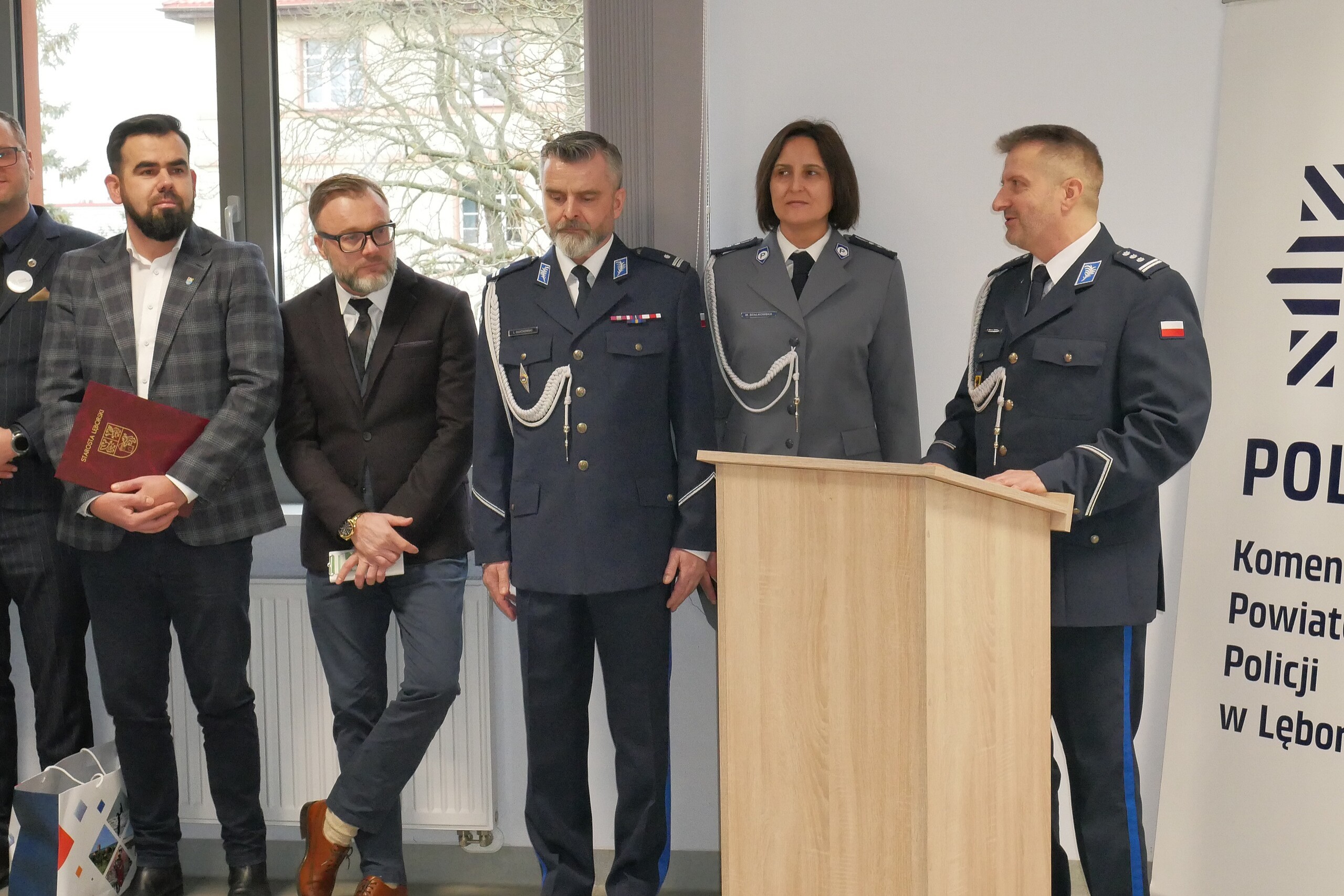 - W imieniu własnym, mieszkańców powiatu, w imieniu Zarządu Powiatu dziękują za pańską służbę na stanowisku komendanta, ale również za długoletnią karierę w szeregach policji, co wymagało niemałych poświęceń, by skutecznie realizować zamierzenia służące poprawie bezpieczeństwa wszystkich mieszkańców powiatu – mówił podczas uroczystości Starosta Lęborski Tomasz Litwin – Życzę panu, by odnalazł pan czas na realizację swoich wszystkich tych planów i zamierzeń, które zapewne trwały w zawieszeniu w związku z pełnioną służbą.