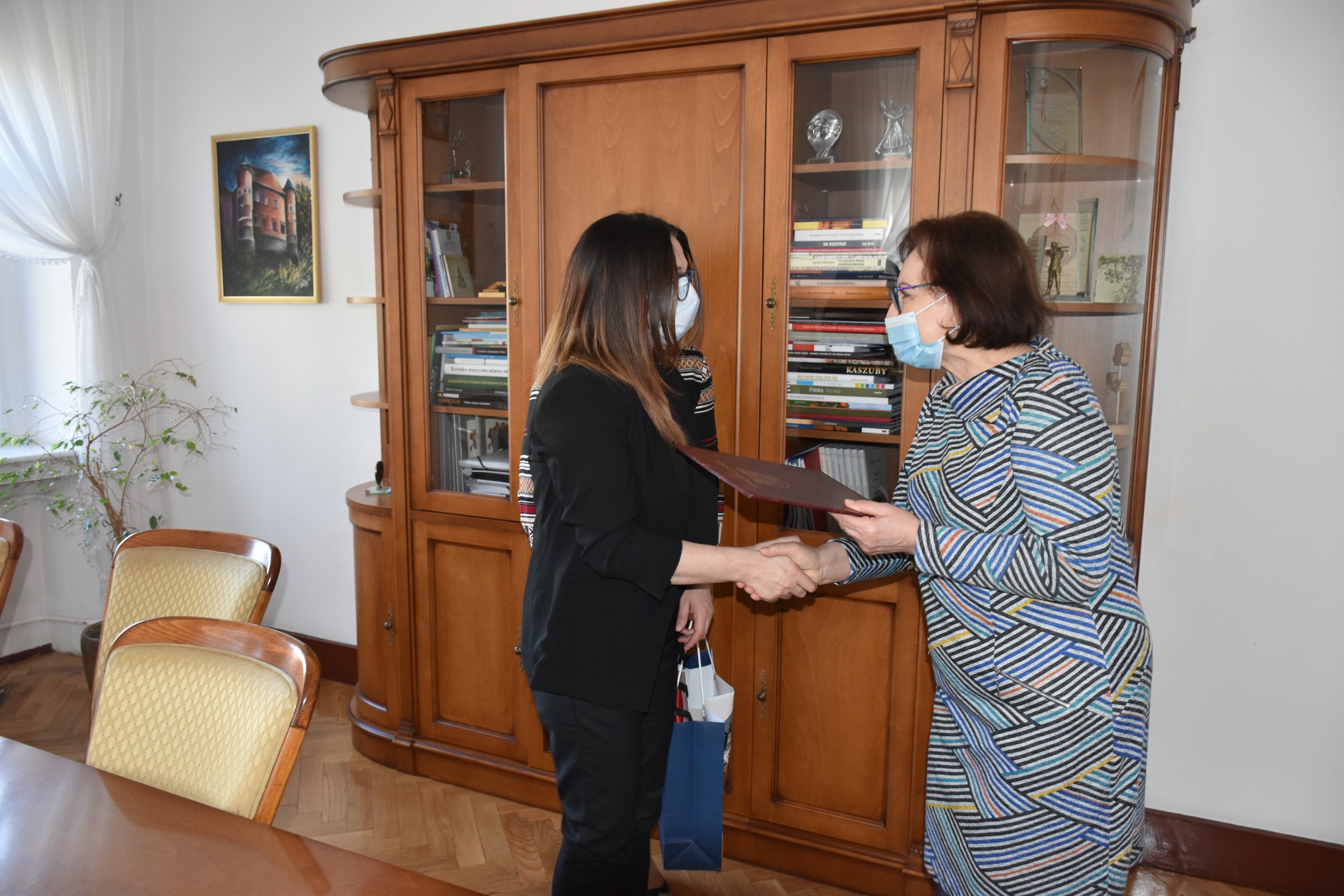 Starosta Lęborski Alicja Zajączkowska uhonorowała członków komisji konkursowych, uczestniczących w opiniowaniu ofert składanych w ramach Otwartych Konkursów Ofert na 2021 rok.