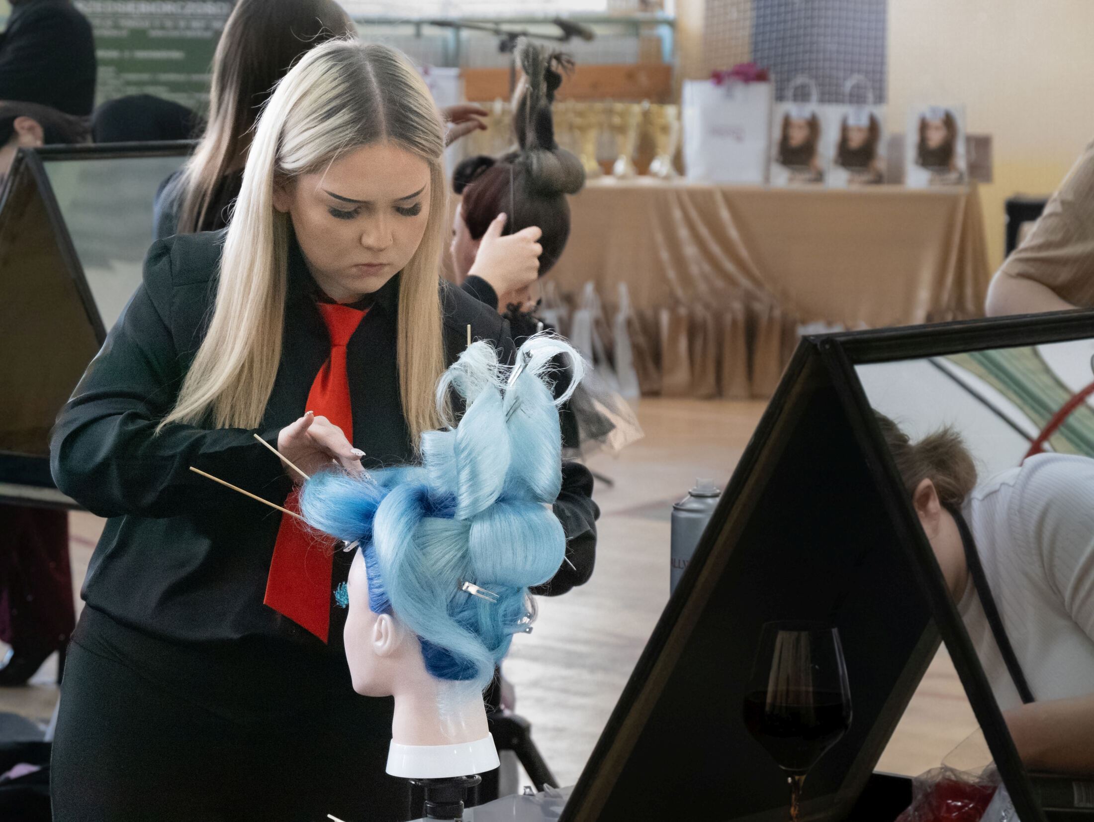 - Dzisiaj odbyły się trzy konkurencje: strzyżenie i modelowanie fryzury męskiej klasycznej, następnie fale i na zakończenie fryzura wieczorowa – mówi Jarosława Możdżan-Górecka – przewodnicząca branży fryzjerskiej i jurorka Komisji Ocen – Cieszy to, że z roku na rok widać progres umiejętności wśród uczniów, co najlepiej dostrzec można na podstawie wykonywanych fryzur wieczorowych. To tutaj uczniowie mogą popisać się pomysłowością i oryginalnością.