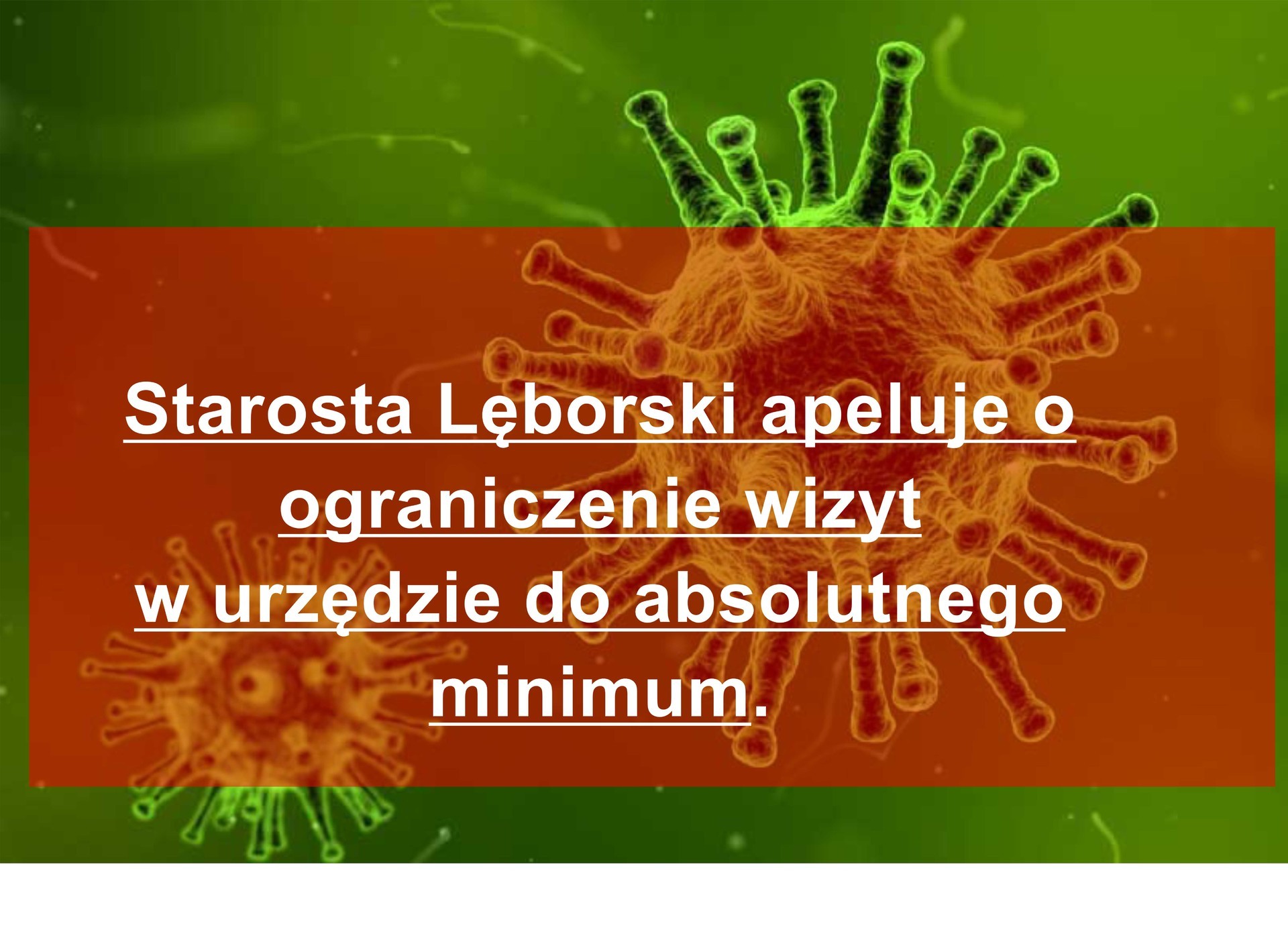 W związku z realizacją profilaktyki konronawirusa SARS-CoV-2, Starosta Lęborski apeluje o ograniczenie wizyt w urzędzie do absolutnego minimum. Wiele spraw załatwić można elektronicznie. Poniżej zamieszczamy ogłoszenie w całości.