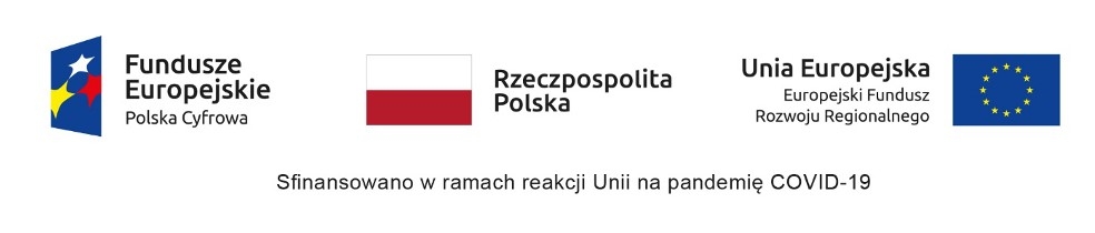 Współfinansowany ze środków Europejskiego Funduszu Rozwoju Regionalnego realizowany w ramach Programu Operacyjnego Polska Cyfrowa na lata 2014-202, Oś Priorytetowa V Rozwój cyfrowy JST oraz wzmocnienie cyfrowej odporności na zagrożenia REACT-EU, działania 5.1 Rozwój cyfrowy JST oraz wzmocnienie cyfrowej odporności na zagrożenia.