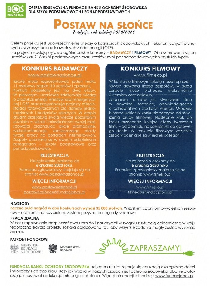 - Projekt Fundacji Banku Ochrony Środowiska "Postaw na słońce"