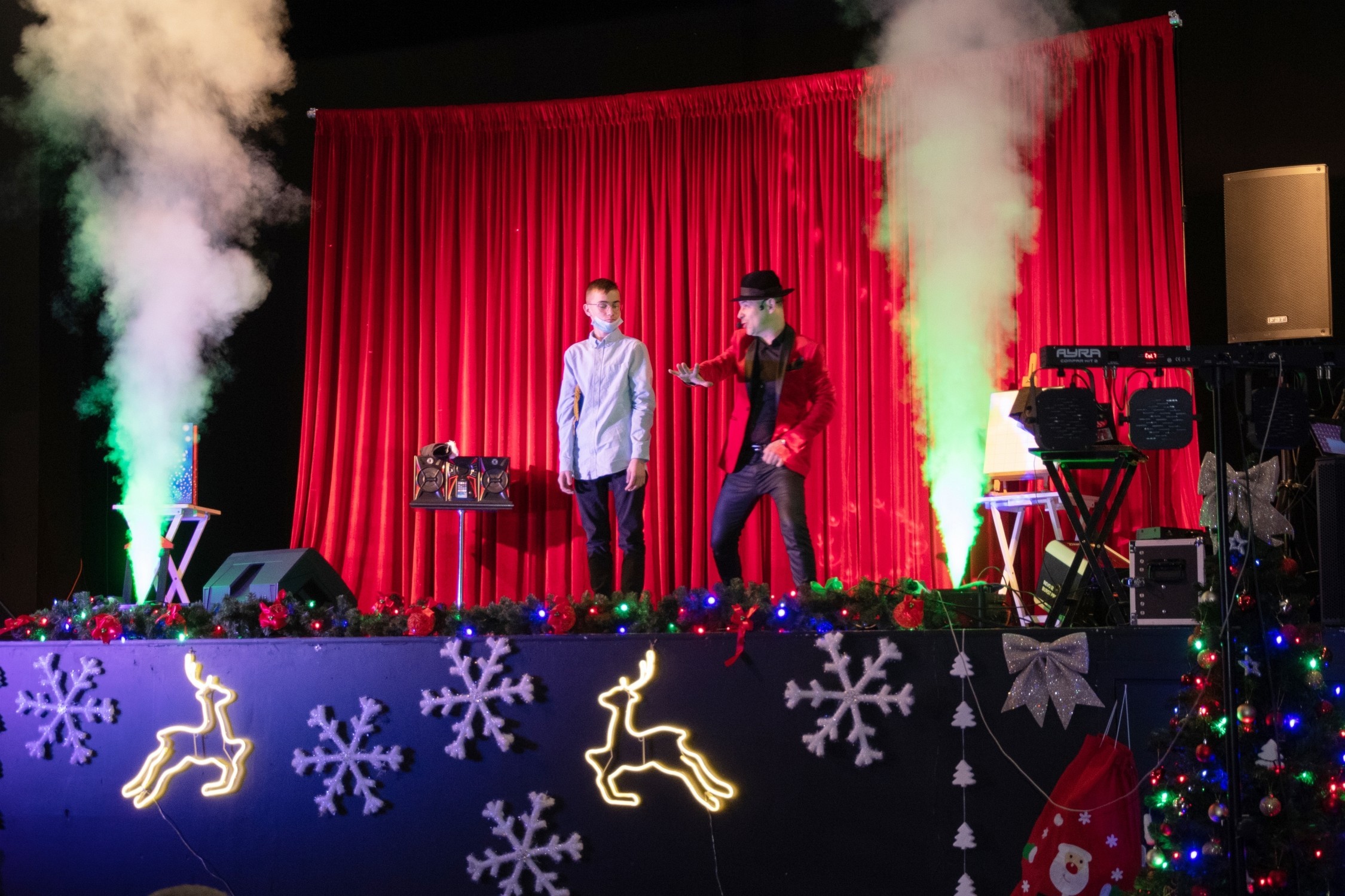 Mikołajkowe spotkanie integracyjne zostało zorganizowane w ramach projektu „Centrum Usług Społecznych w Powiecie Lęborskim”. W zabawowy nastrój wprowadziły uczestników piosenki świąteczne w wykonaniu Iwony Witke. Chwilę później, po rozdaniu konkursowych nagród laureatom, sceną zawładnął magika - Arkadiusza „Amon” Wiatrowski. Żadnego dziecka nie ominął Mikołaj. Każde z nich wyszło ze spotkania z paczką słodkości.