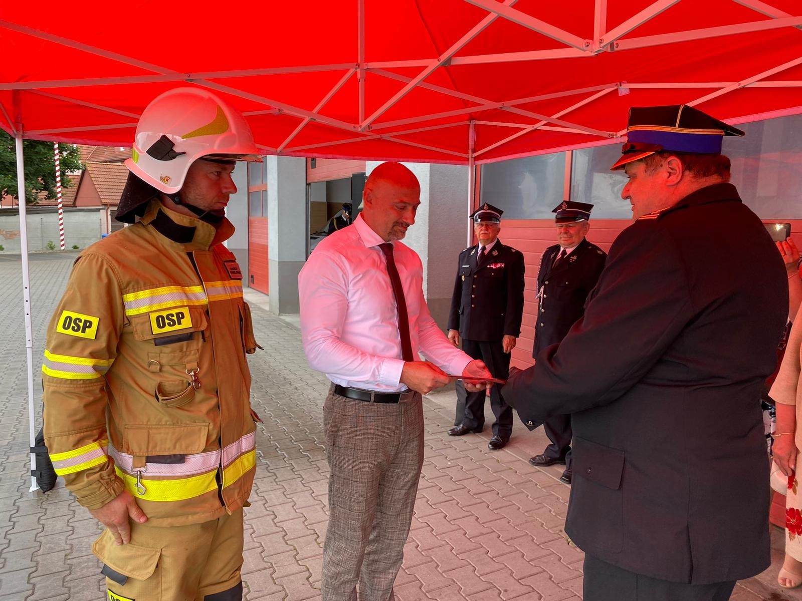 Przekazanie samochodu kwatermistrzowskiego oraz aktu włączenia jednostki OSP do Krajowego Systemu Ratowniczo- Gaśniczego