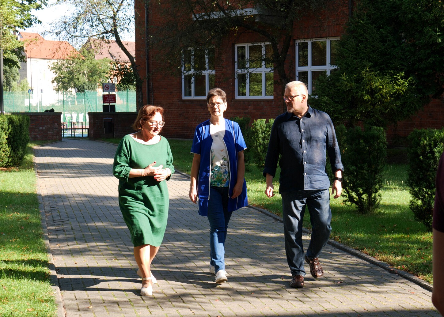 Wizyta starosty w Zespole Szkół Mechaniczno-Informatycznych stała się również okazją do zapoznania się z innymi potrzebami inwestycyjnymi tej placówki. W towarzystwie Grzegorza Popina, dyrektora ZSMI i Adana Etmańskiego – Kierownika Referatu Realizacji Inwestycji lęborskiego starostwa, starosta zapoznała się ze stanem pomieszczeń małej sali gimnastycznej i sąsiadującego z nią zaplecza: szatniami, sanitariatami i ciągami komunikacyjnymi. Jak zapewniła, w miarę posiadanych możliwości finansowych, Powiat podejmie działania w celu dostosowania tych obiektów do współczesnych standardów. Przypomnijmy, że w listopadzie 2021 r. zrealizowany został gruntowny remont większej z dwóch należących do szkoły sal gimnastycznych. Gruntowna modernizacja obiektu kosztowała wówczas blisko 355 tys. zł. Kolejne 151 tys. zł. przeznaczono na realizację izolacji fundamentów budynku, w którym znajdują się oba obiekty sportowe. Objęła ona prace ziemne, osuszanie, odgrzybianie oraz docieplenie i wykonanie powłoki izolacyjnej, co było warunkiem koniecznym, by efekt prowadzonej modernizacji wewnątrz budynku był trwały. – Staramy się uważnie wsłuchiwać w potrzeby naszych placówek oświatowych i sukcesywnie, w miarę posiadanych środków je realizować – podsumowuje starosta Alicja Zajączkowska – Inwestycje służące poprawie warunków kształcenia młodzieży traktujemy w gronie Zarządu Powiatu bardzo poważnie i dlatego udało się zrealizować bardzo wiele. To nie tylko działania polegające na remoncie sal, pokryć dachowych, modernizacji instalacji i węzłów ciepłowniczych, a więc ogólnie warunków nauki i pracy przy jednoczesnej racjonalizacji kosztów mediów (głównie prądu i ciepła), ale też pozyskiwanie środków zewnętrznych w formie konkursów grantowych, projektów i udziału w programach umożliwiających modernizację wyposażenia i technicznych środków kształcenia. Wspieramy również szkoły we współpracy z instytucjami zewnętrznymi, co przekłada się skuteczną kontynuację już istniejących i otwieranie nowych kierunków kształcenia.