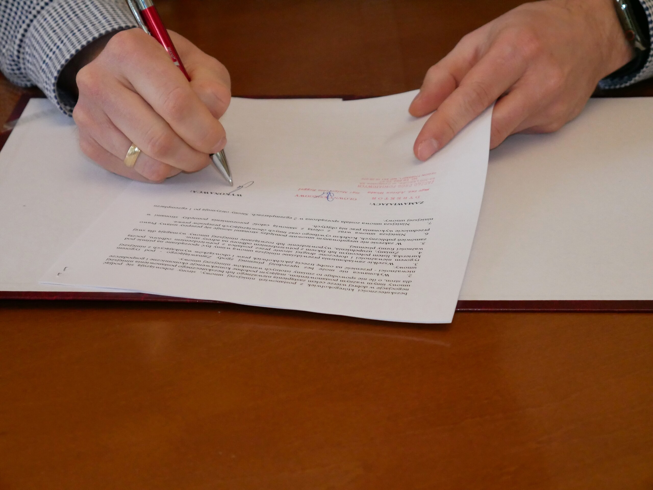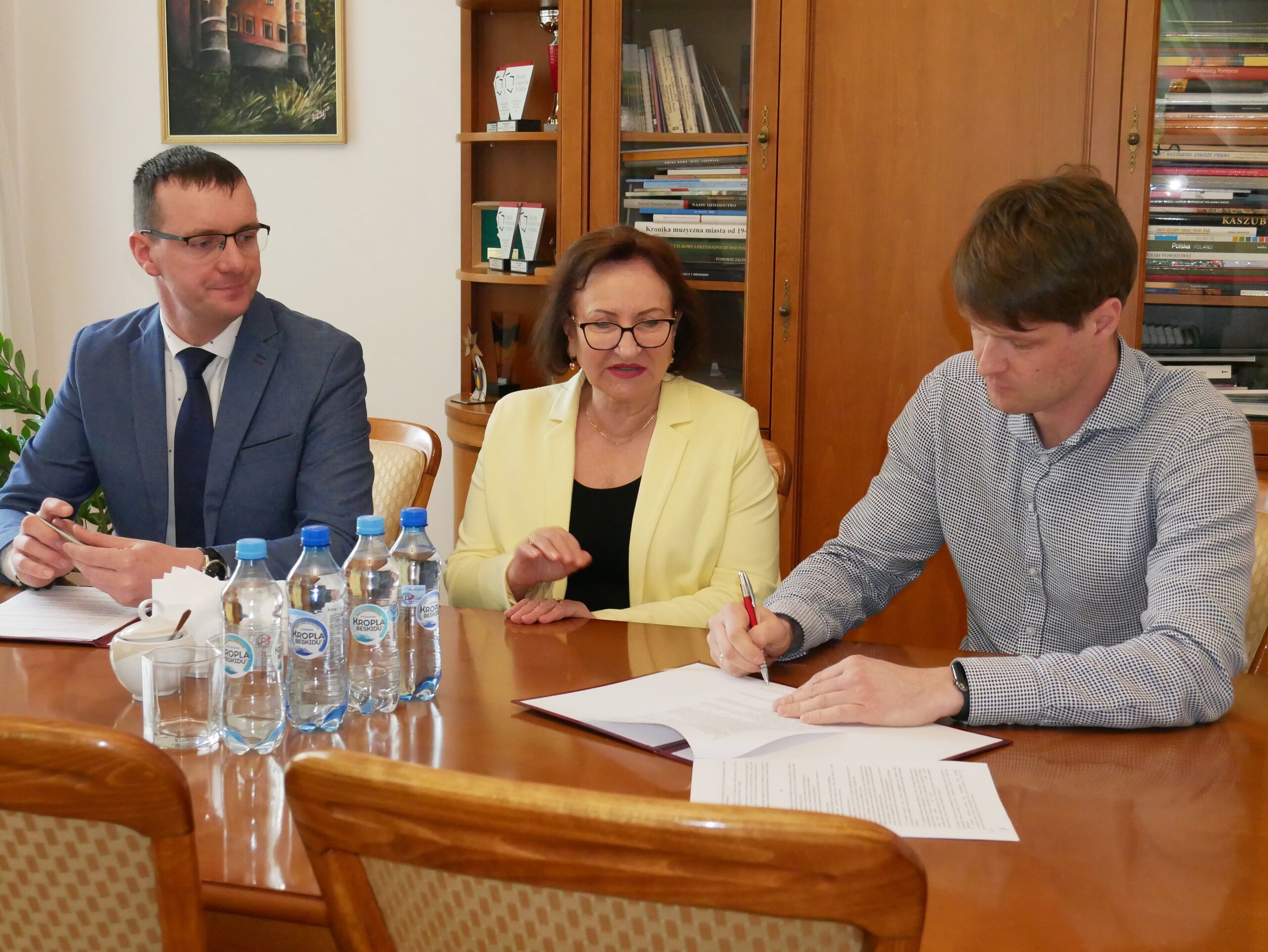 Umowę na realizację dokumentacji projektowej opisanego przedsięwzięcia podpisali w obecności starosty Alicji Zajączkowskiej: Adrian Wenta – dyrektor Zarządu Dróg Powiatowych w Lęborku i przedstawiciel wykonawcy dokumentacji – firmy JM Nadzory, Projektowanie S.C. Jacek i Michał Marciniak z Chojnic. Koszt wykonania dokumentacji to 242 tys. zł i zostanie po wykonaniu zadania opłacony w całości z budżetu Starostwa Powiatowego w Lęborku.